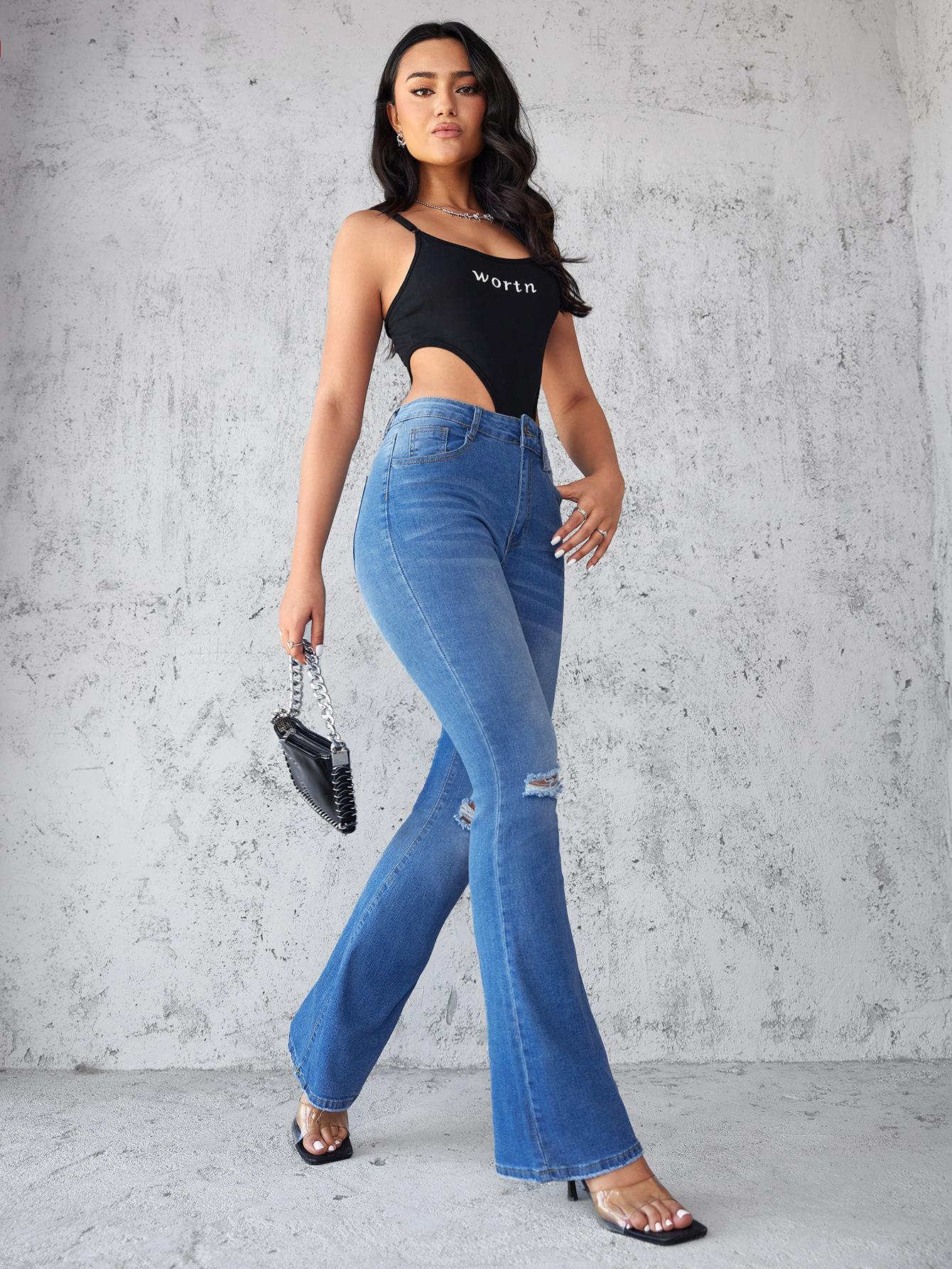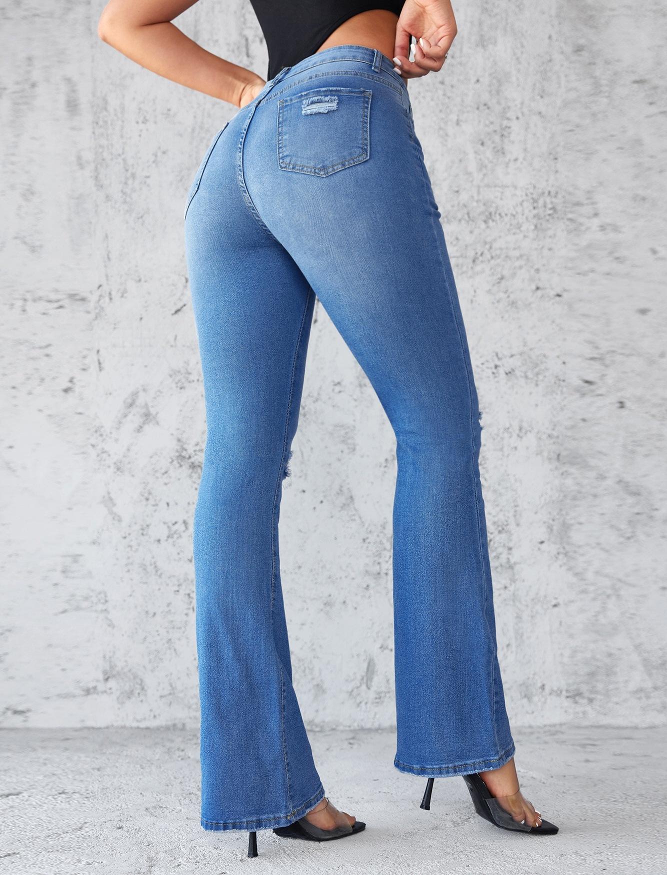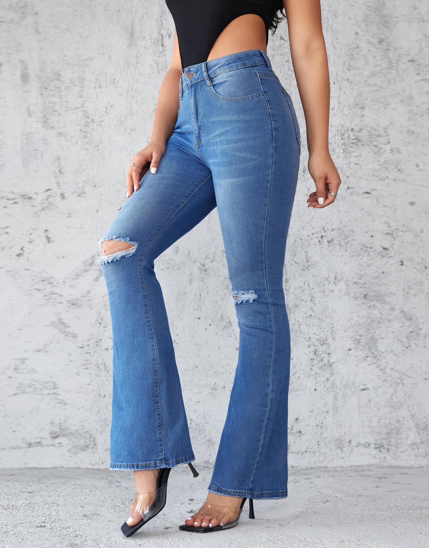Pantalones vaqueros ajustados, adelgazantes, de cintura alta y elásticos, para mujer, Amazon Micro-La, rotos, transfronterizos europeos y americanos, 2025, disponibles.