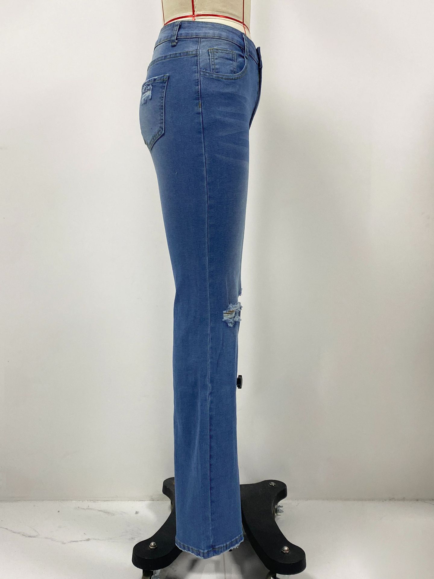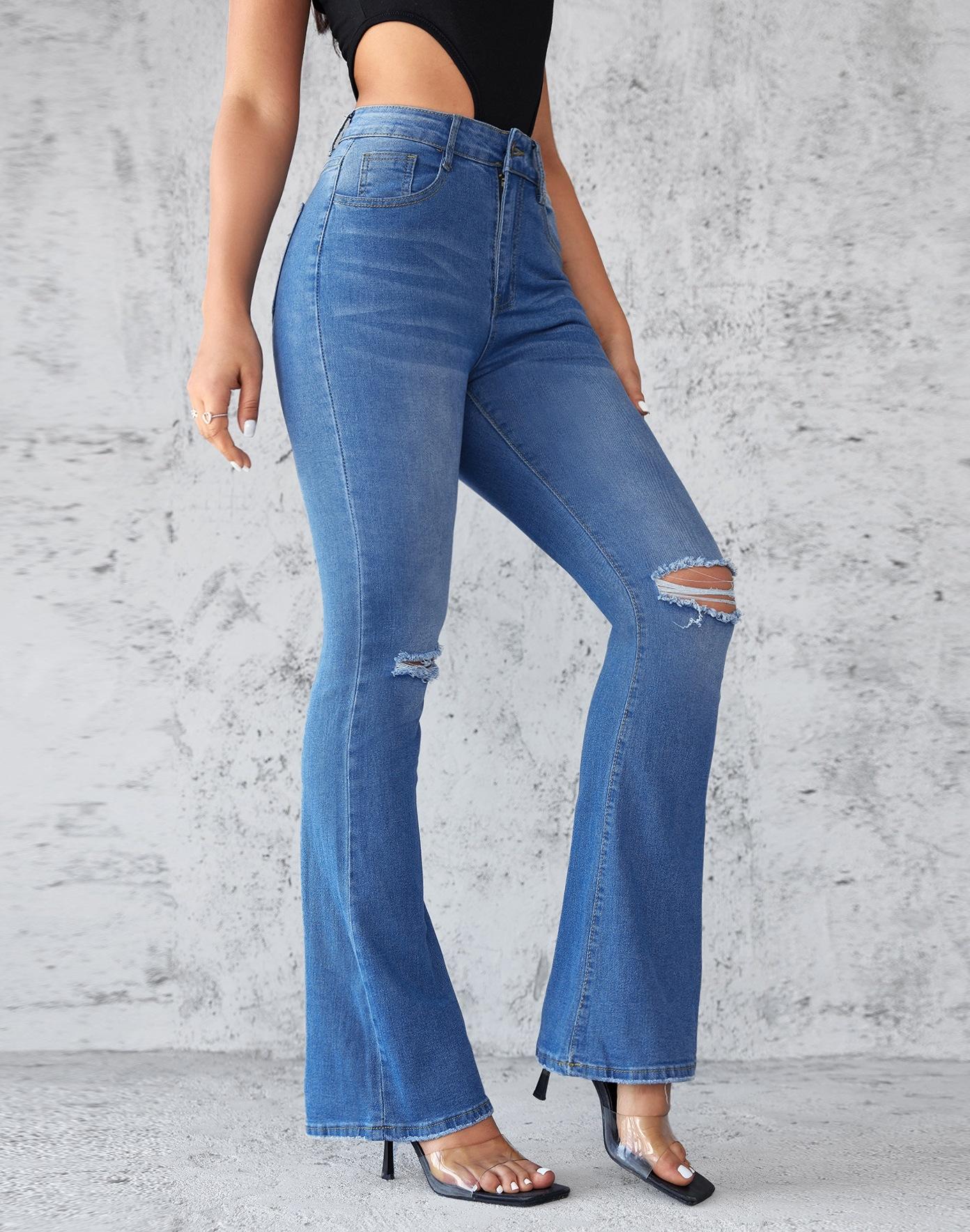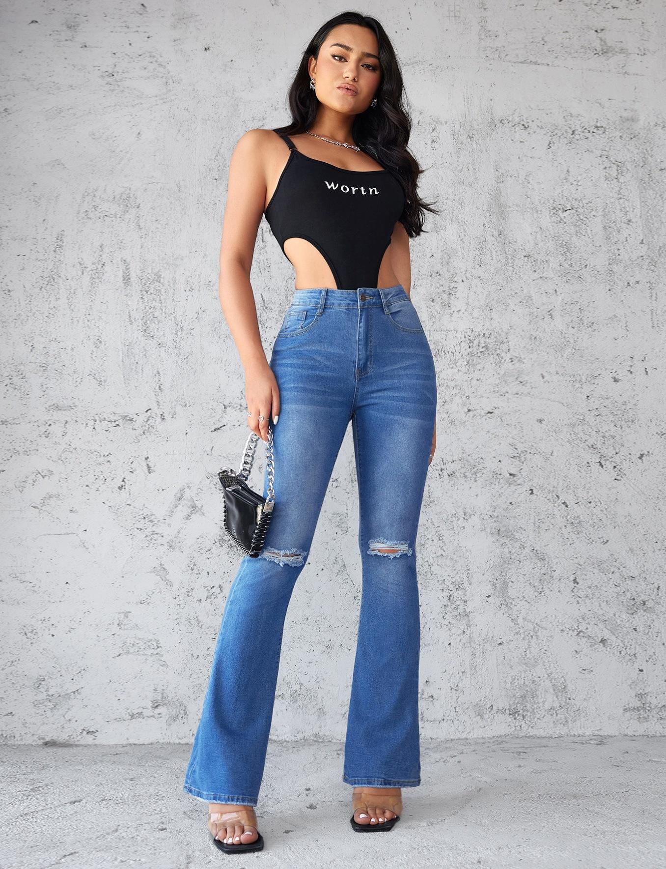 Pantalones vaqueros ajustados, adelgazantes, de cintura alta y elásticos, para mujer, Amazon Micro-La, rotos, transfronterizos europeos y americanos, 2025, disponibles.