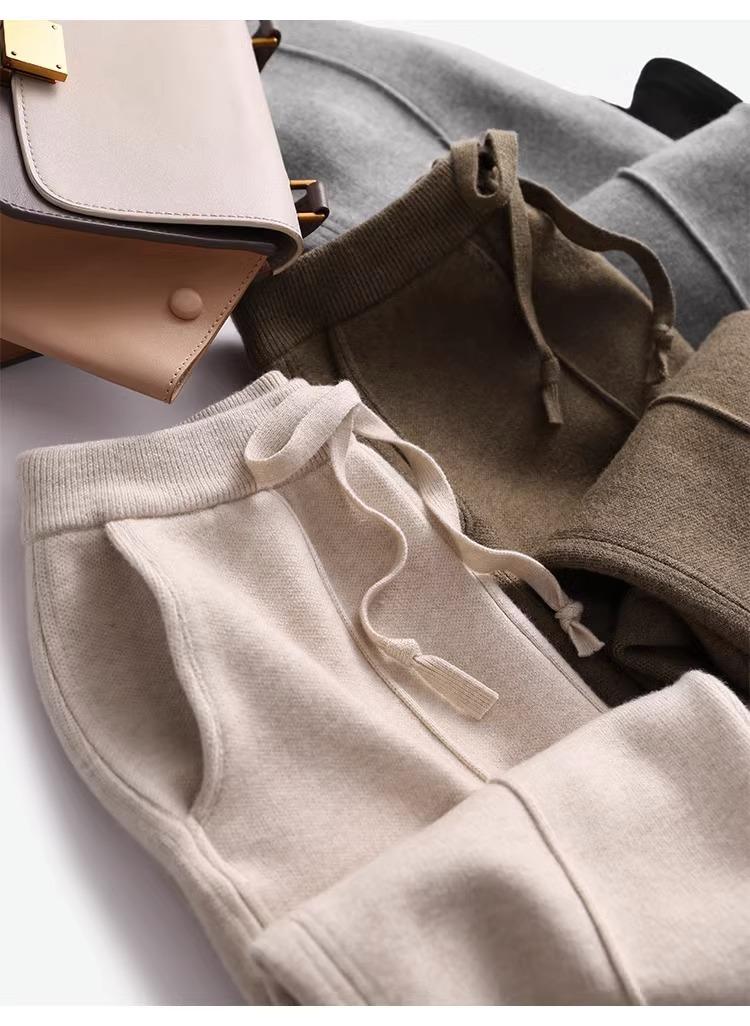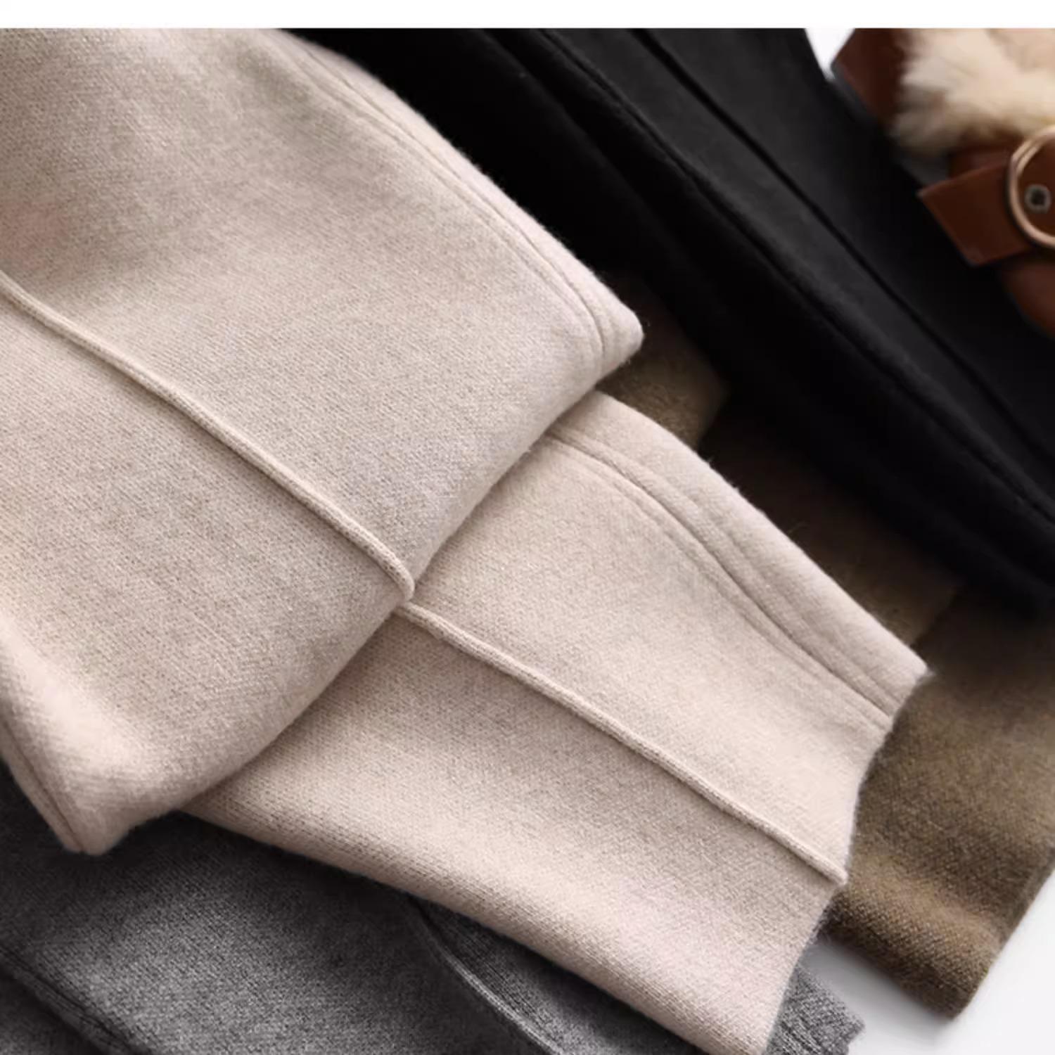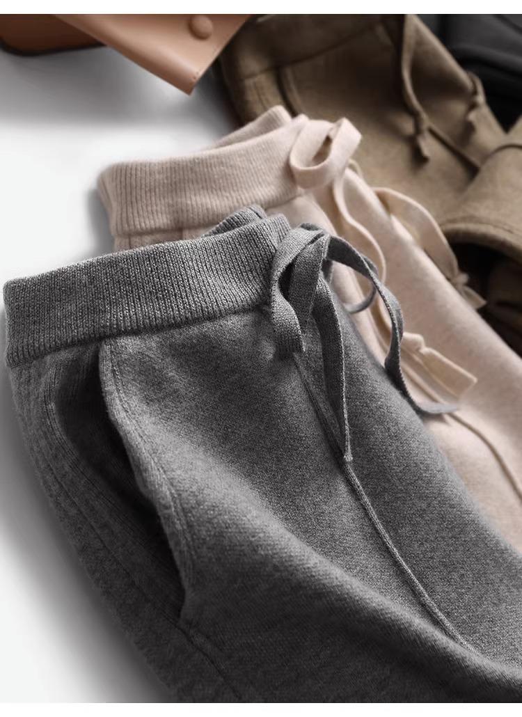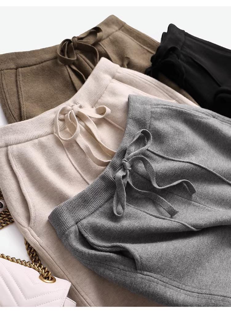 Pantalones de rábano cortos de punto grueso micro cónicos de cintura alta para mujer