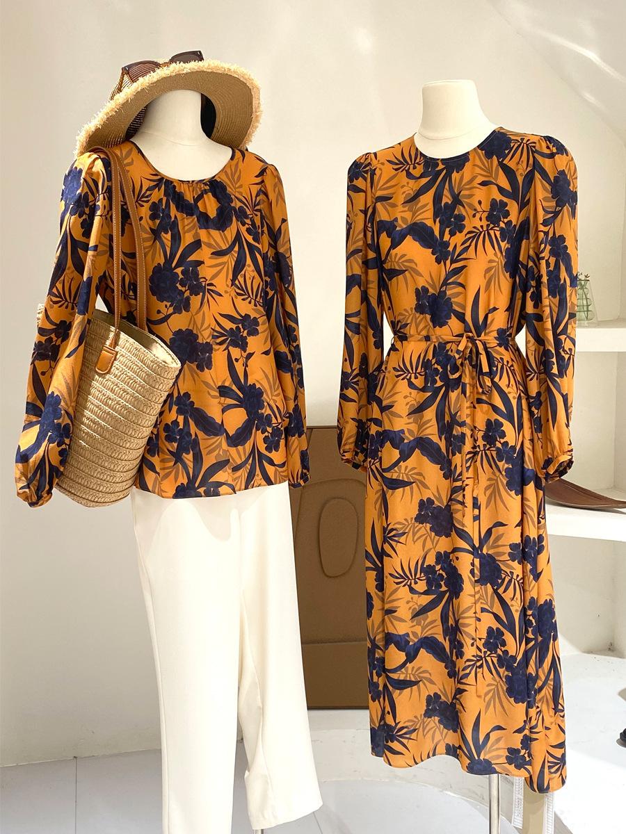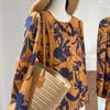 Camisa de Seda para Mujer Primavera y Verano 2025 Nueva Cuello Redondo Jersey Estampado Crepé de China 100% Seda de Morera
