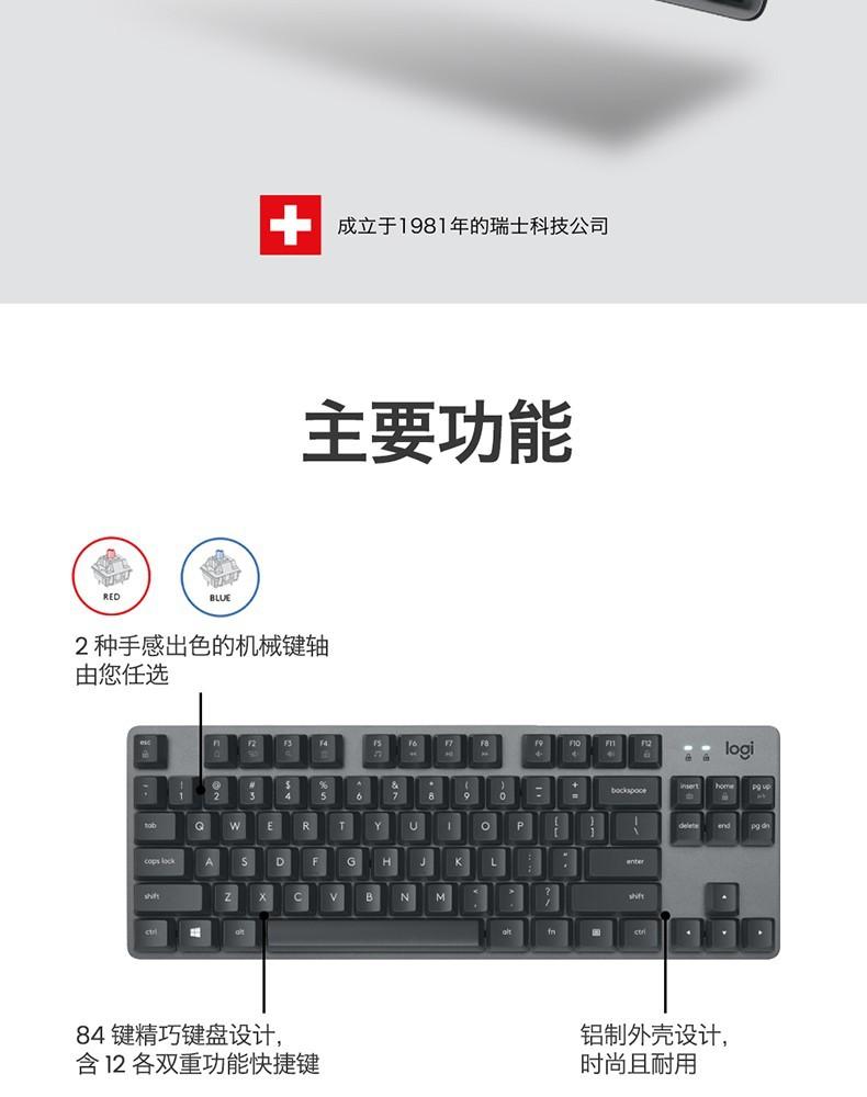 Teclado mecánico Logitech K835 con cable de 84 teclas, ideal para juegos, deportes electrónicos, oficina y ordenador.