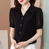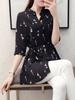 Camisa de gasa de verano para mujer, nueva camisa estampada de alta calidad, versátil, estilo coreano, estilo occidental, top de manga corta de longitud media