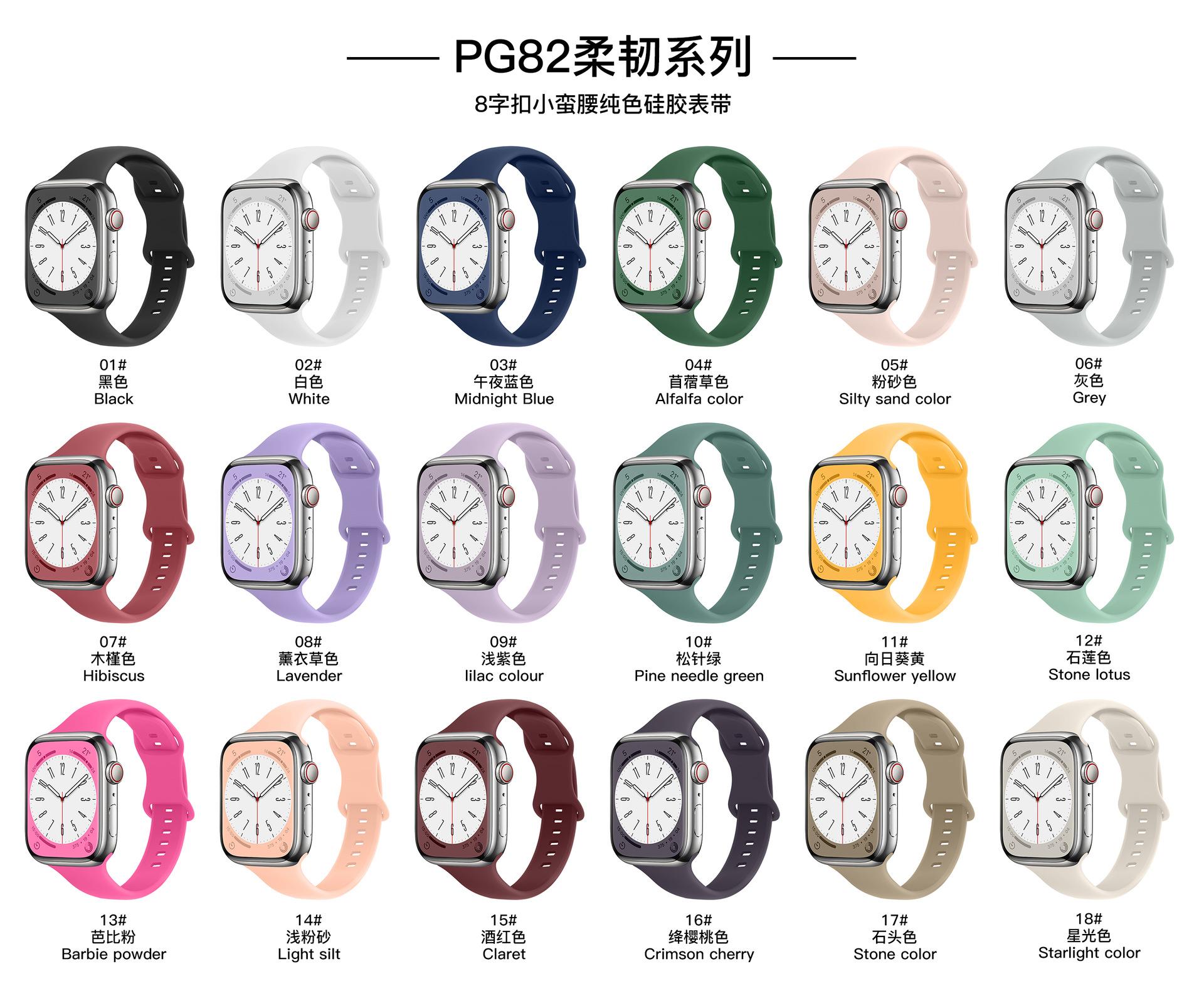 [PG82 Serie Flexible Hebilla en forma de 8 Cinturón de Silicona de Color Sólido para Cintura Pequeña Adecuado para Todas las Series de Apple Watch]