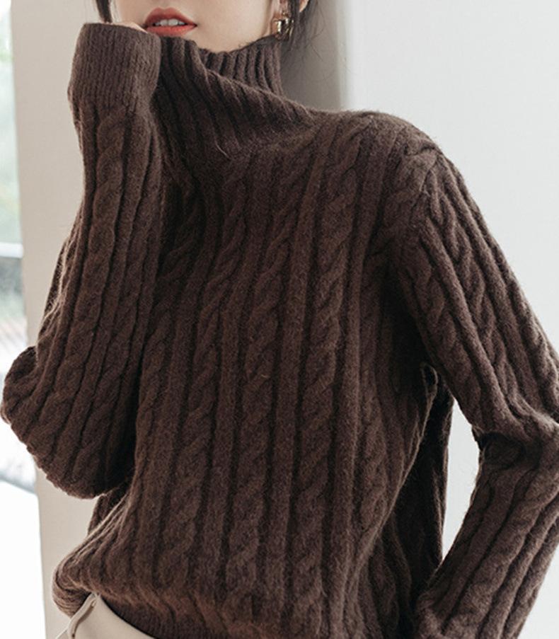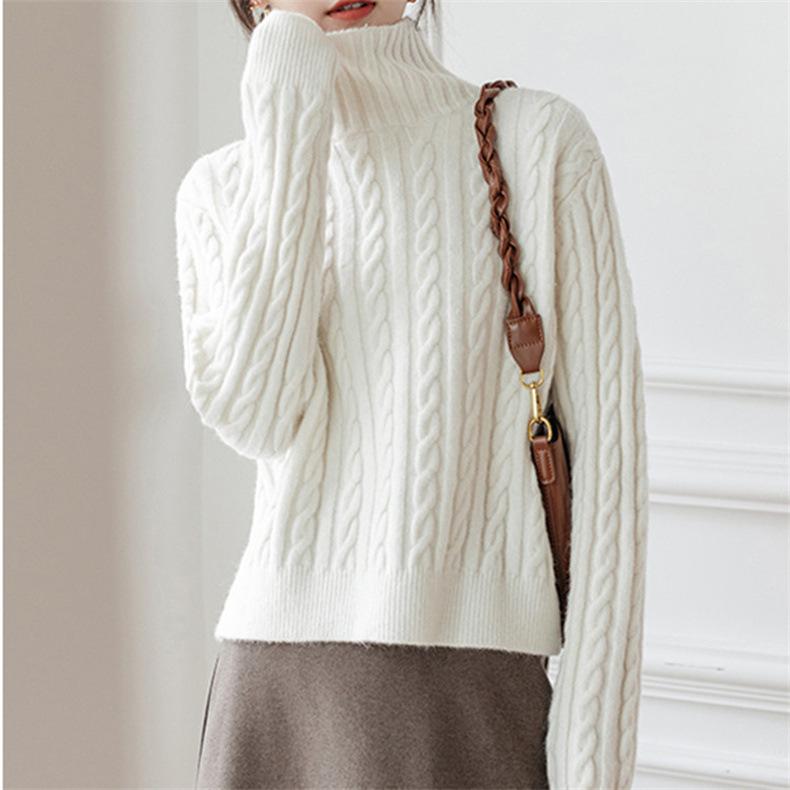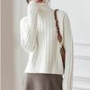 Otoño e Invierno nuevo suéter de cuello alto para mujer trenzado grueso estilo coreano holgado adelgazante versátil retro punto top jersey moda