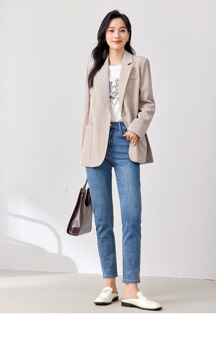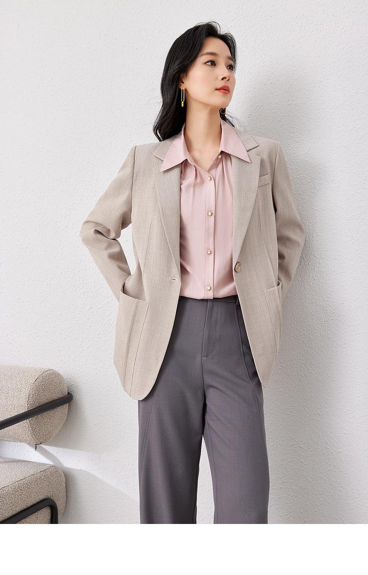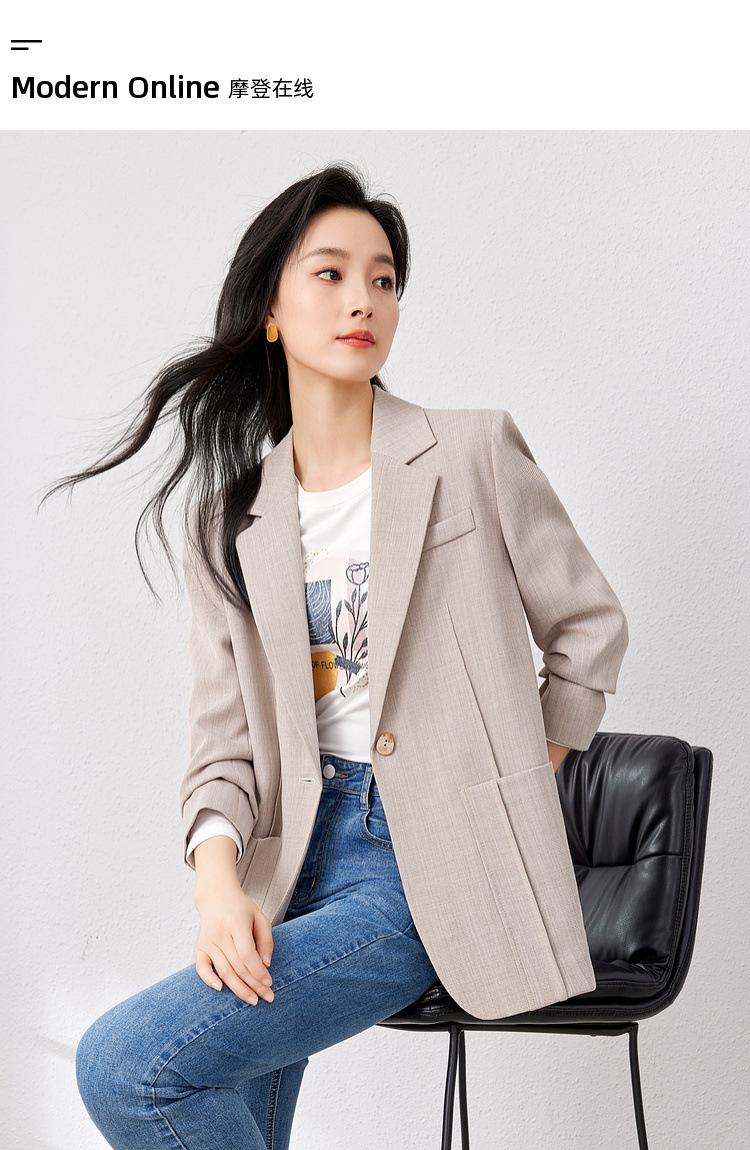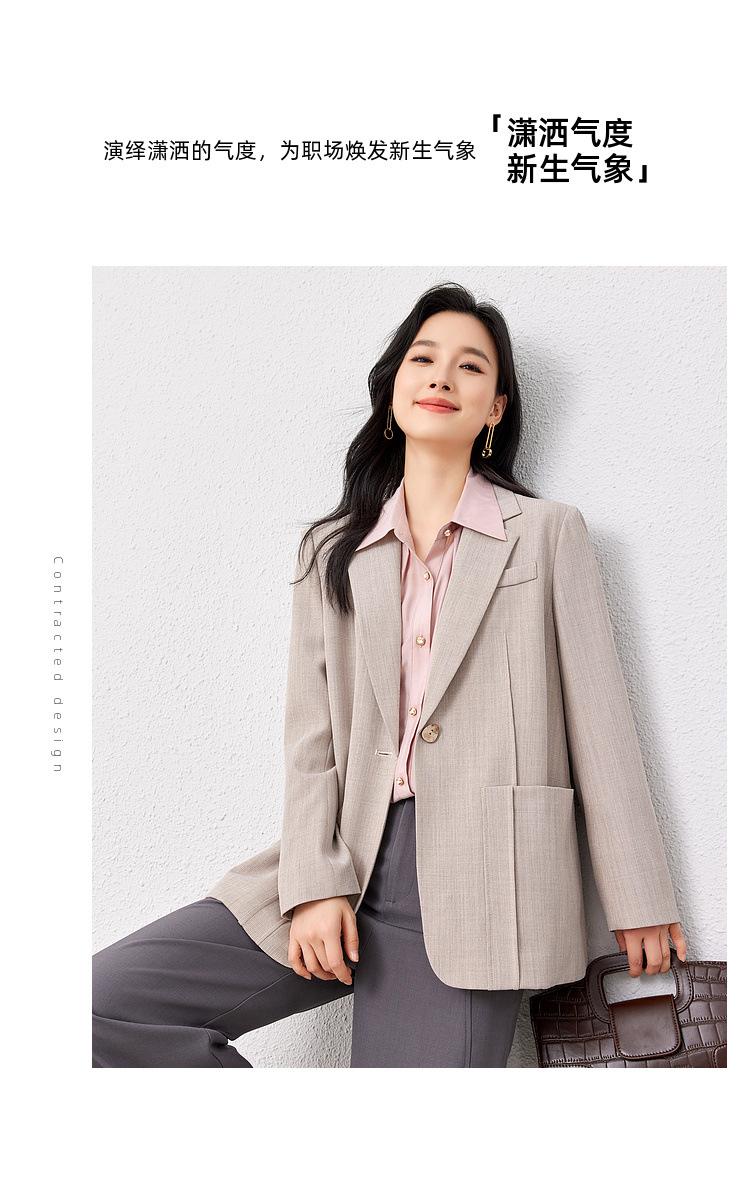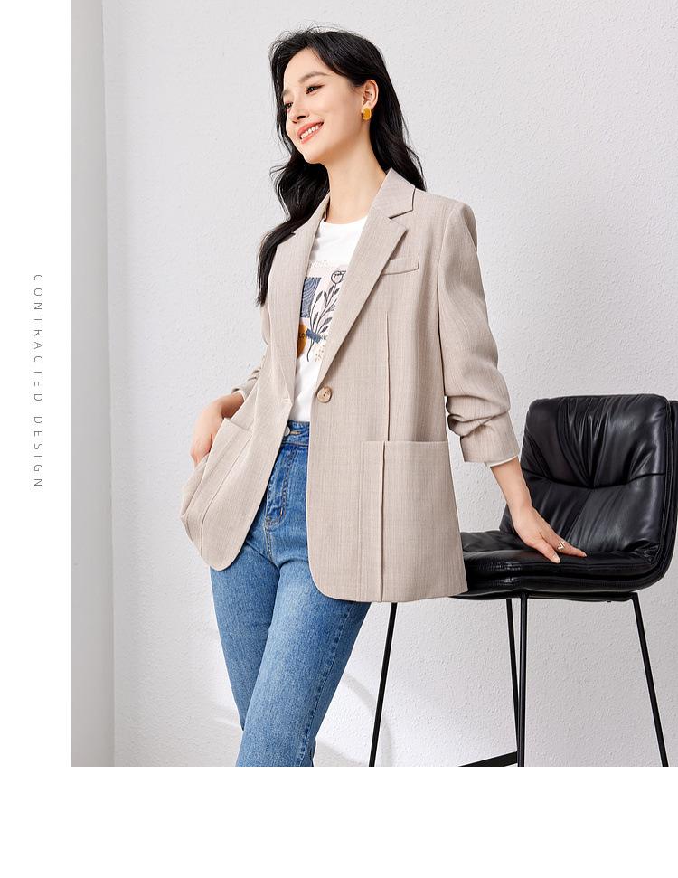 Zhenqi nueva moda chaqueta de traje con cuello de solapa para mujer manga larga recta un botón traje de trabajo CN360