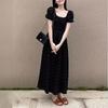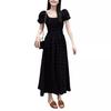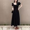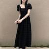 Vestido Negro Francés para Mujer Verano Estilo Hepburn Mangas Abullonadas Plisado Cuello Cuadrado Niñas Ligeramente Gorditas Aspecto Adelgazante Cintura Falda