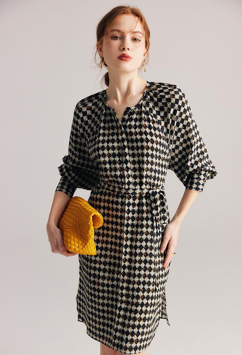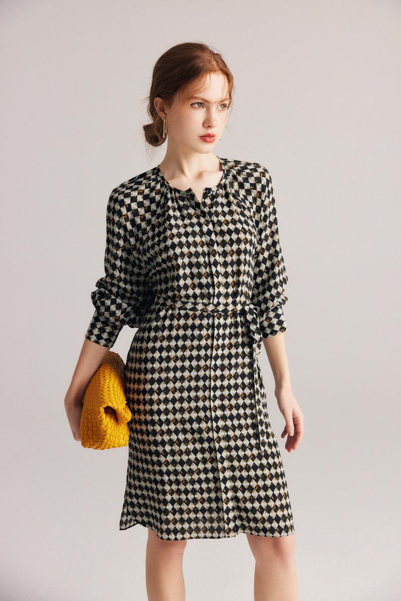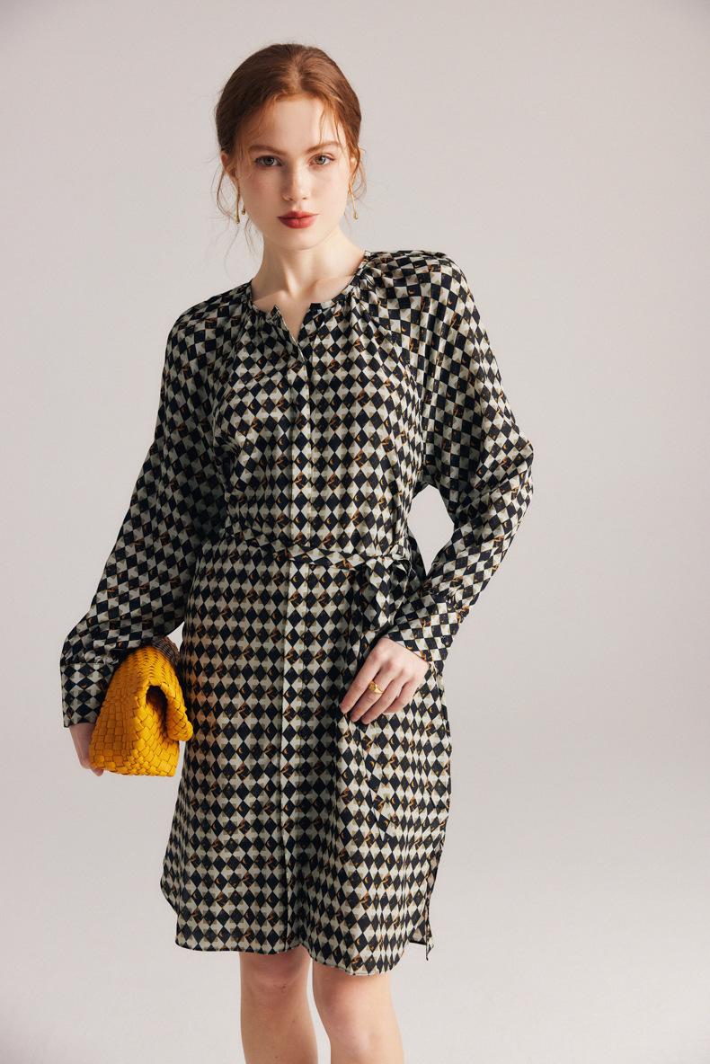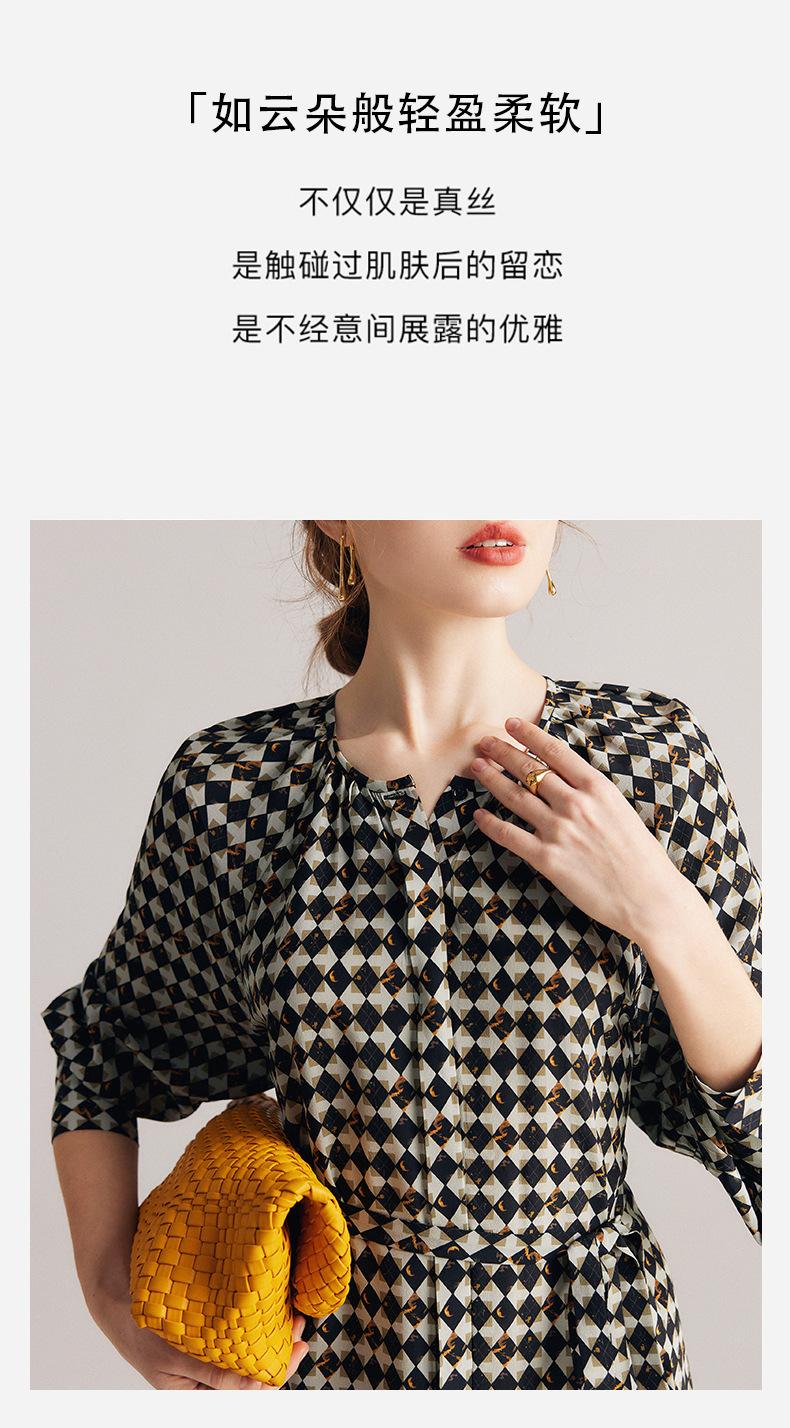 Camisa de Seda de Manga Larga para Mujer 2025 Primavera y Verano Nuevo Estilo Crepé de China Estampada Suelta con Cordones 100% Seda de Morera Falda Larga