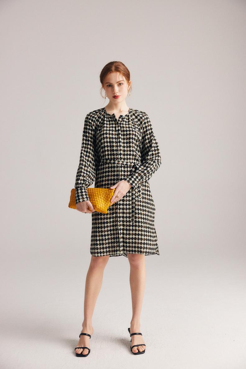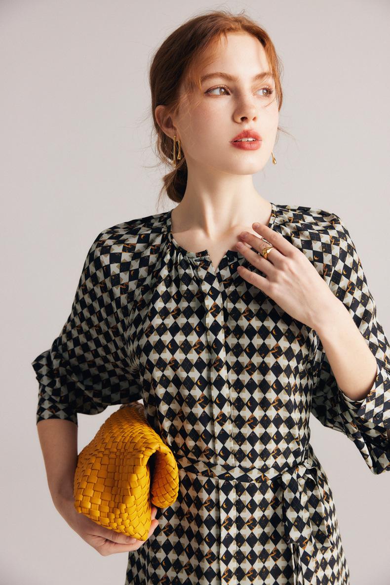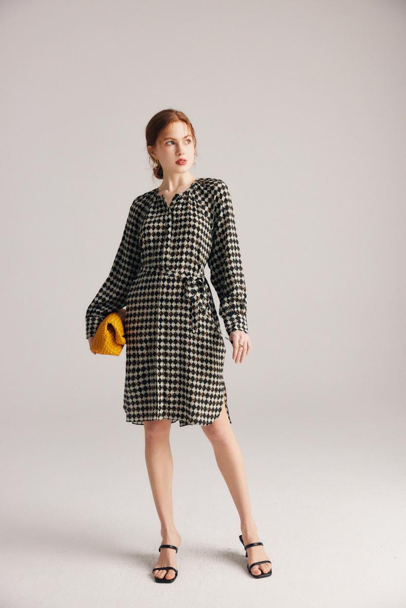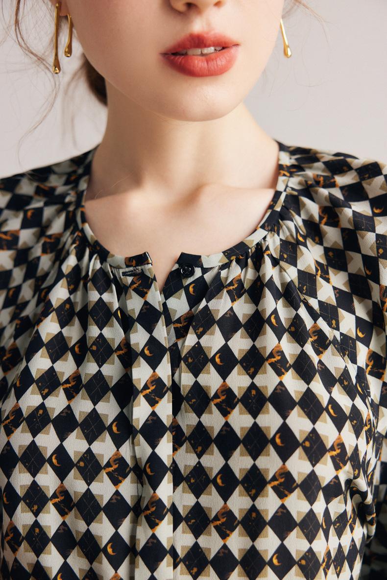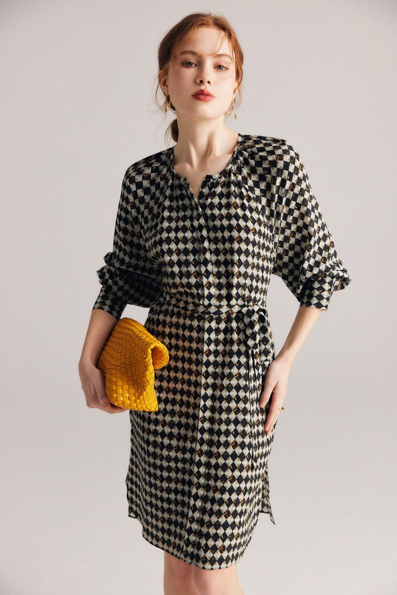 Camisa de Seda de Manga Larga para Mujer 2025 Primavera y Verano Nuevo Estilo Crepé de China Estampada Suelta con Cordones 100% Seda de Morera Falda Larga