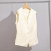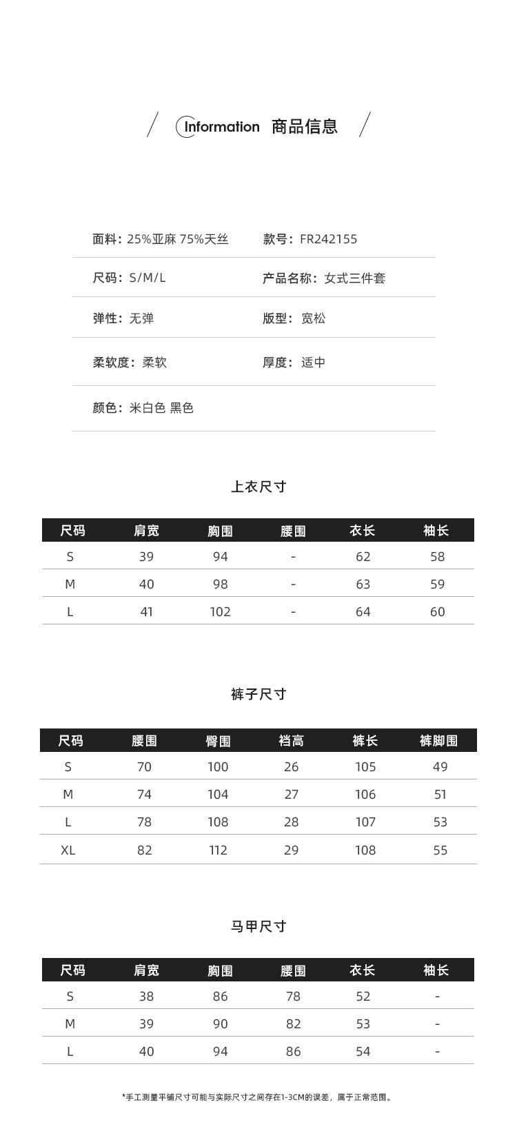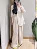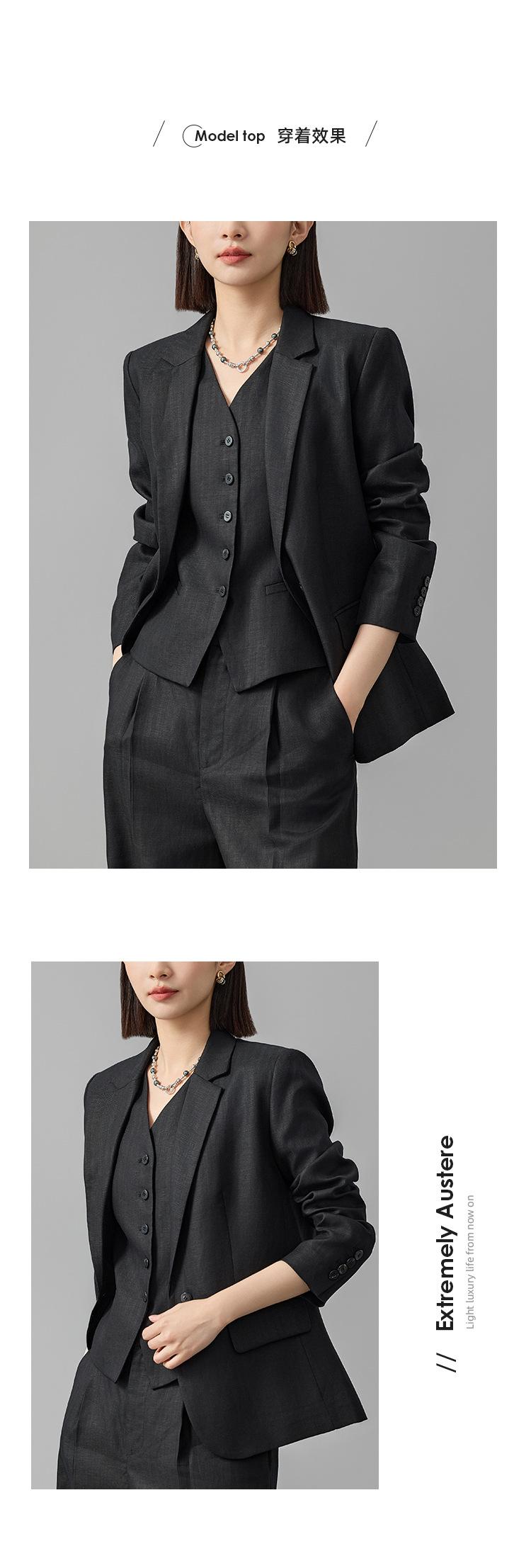 Traje Pequeño de Lino para Mujer de Tres Piezas con Chaleco de Un Botón Traje Profesional Pantalones Rectos de Pierna Ancha 24 Otoño Nuevo Estilo