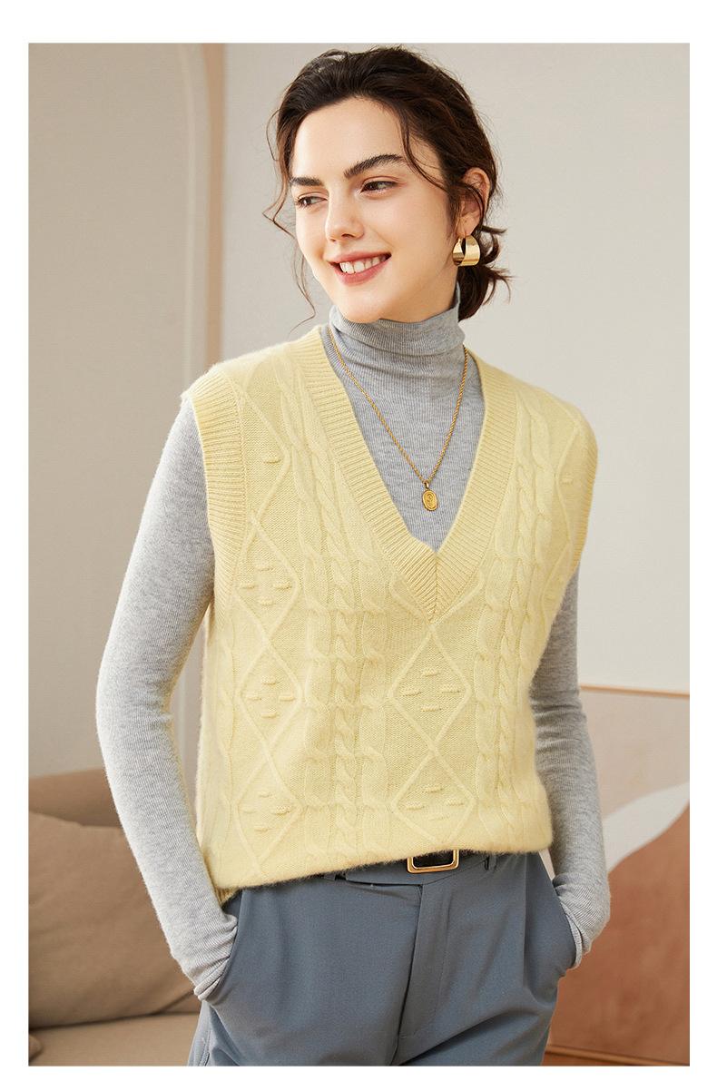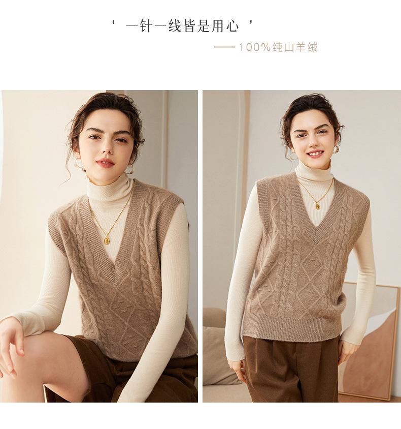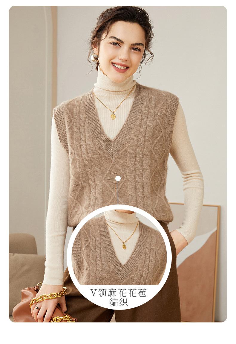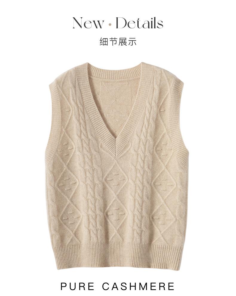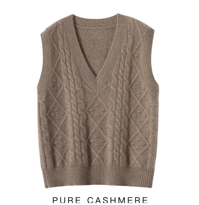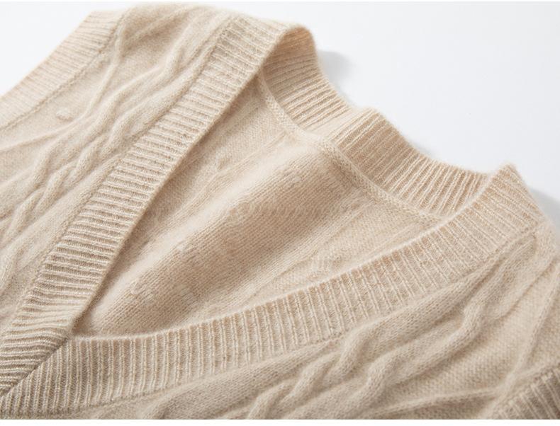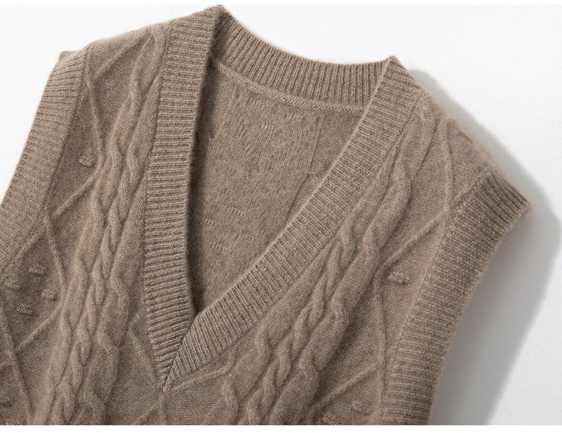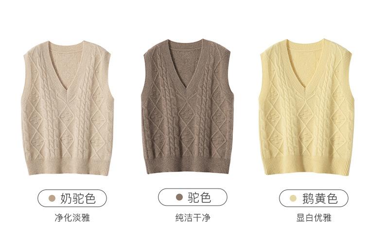 2024 Nuevo Otoño e Invierno Cuello en V 100 Cachemira Pura Versátil Casual Suelto Chaleco Tejido Ropa Exterior para Mantener Caliente