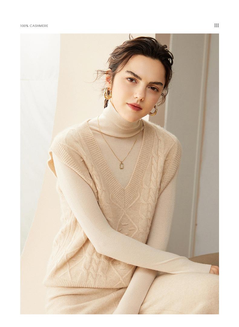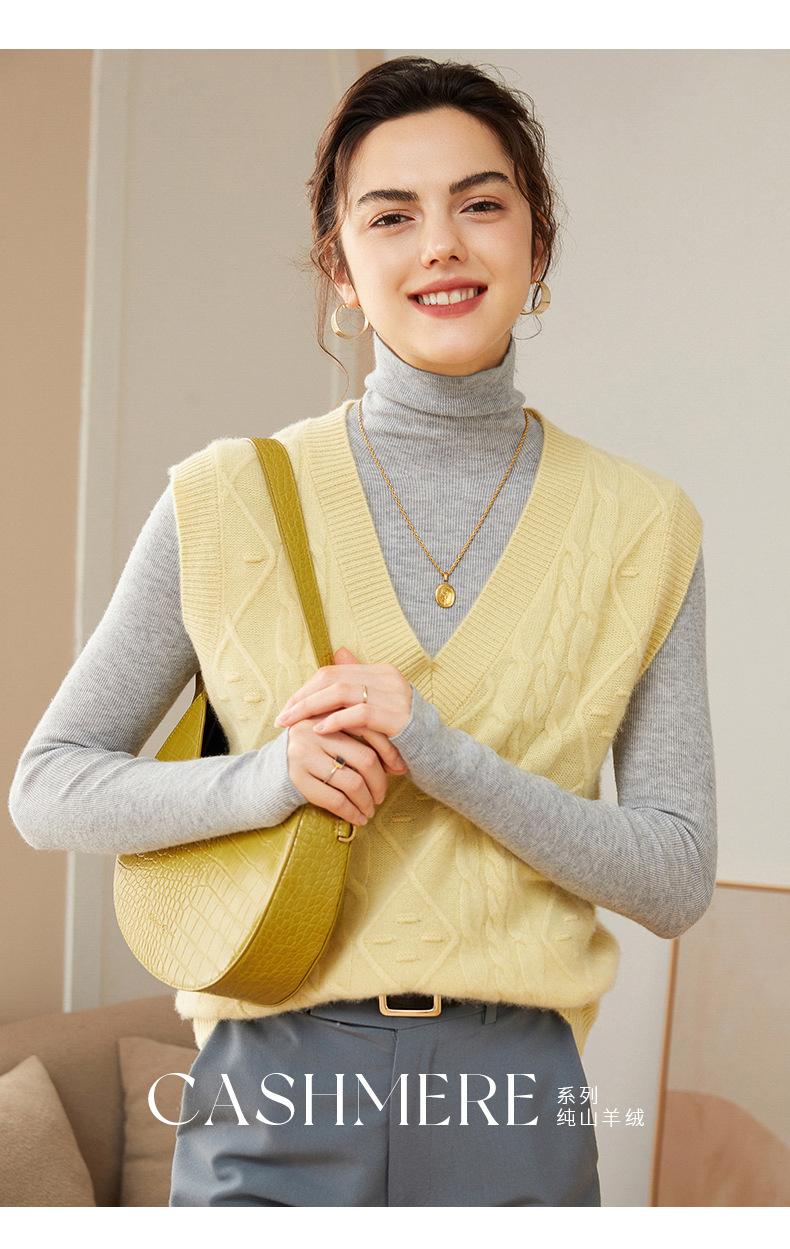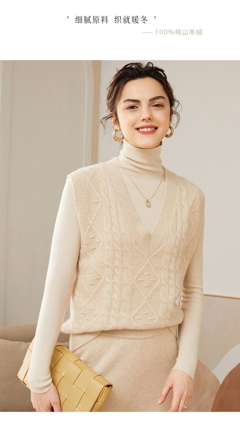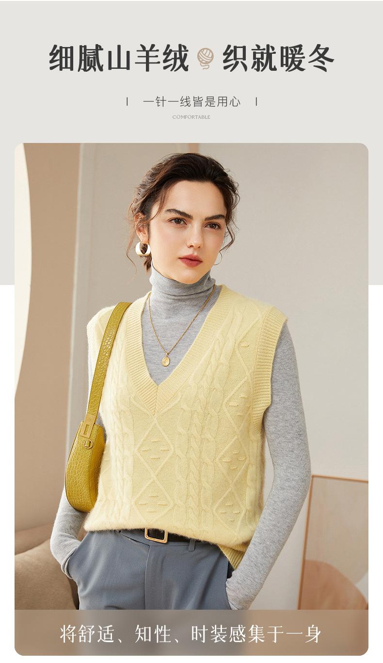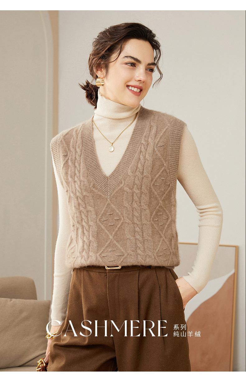 2024 Nuevo Otoño e Invierno Cuello en V 100 Cachemira Pura Versátil Casual Suelto Chaleco Tejido Ropa Exterior para Mantener Caliente
