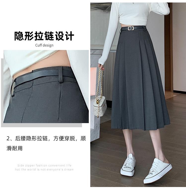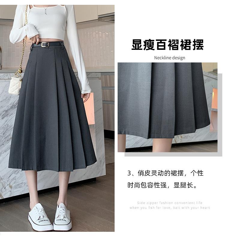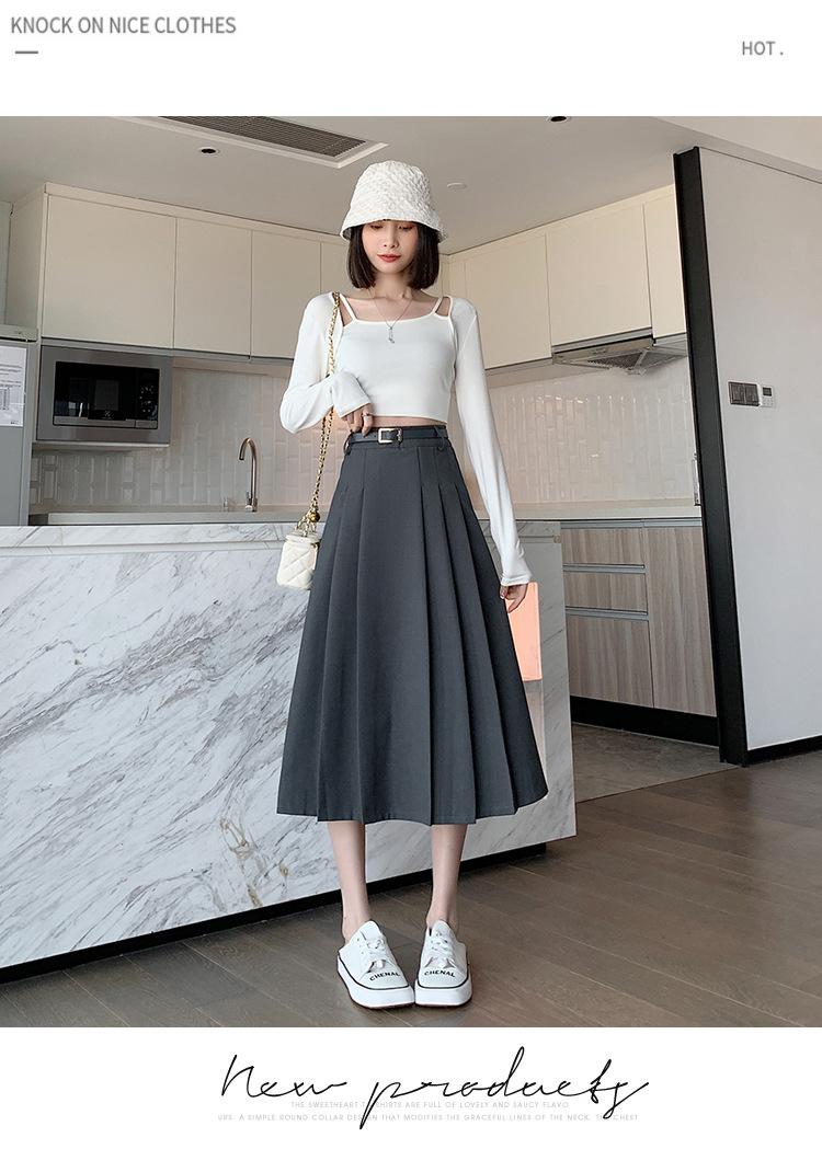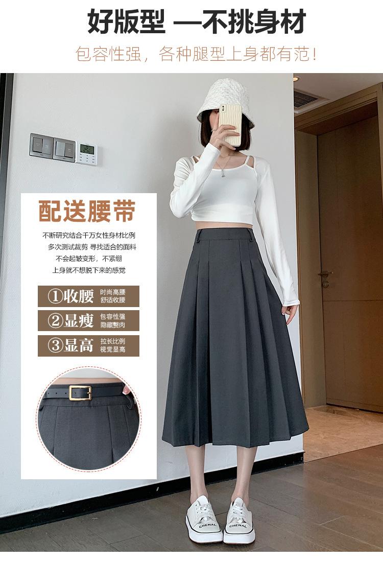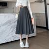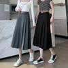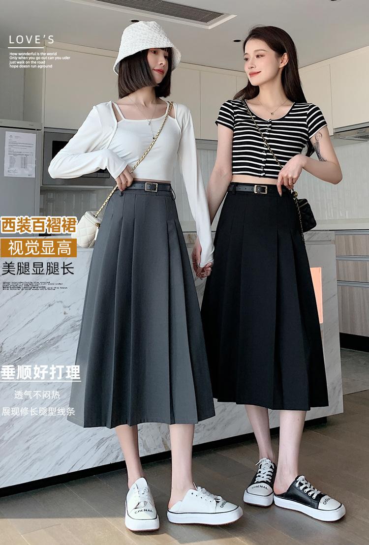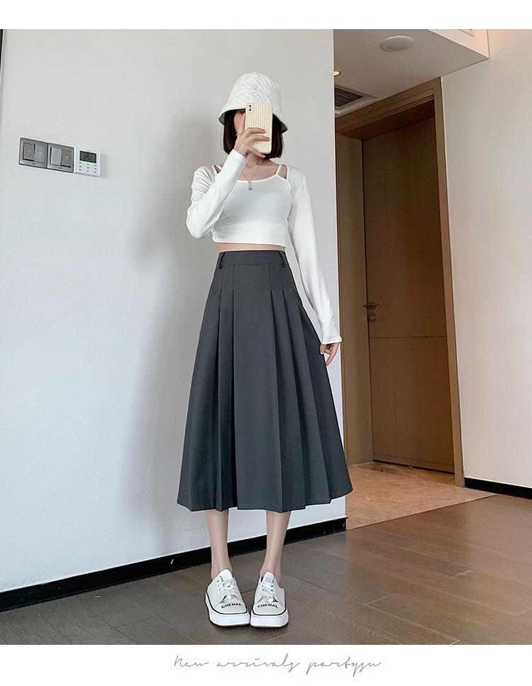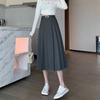 Foto Real de 2025 Nuevo Verano Estilo Coreano Cintura Alta Cubre Caderas Look Adelgazante Largo Medio Traje Gris Falda Plisada con Dobladillo Grande