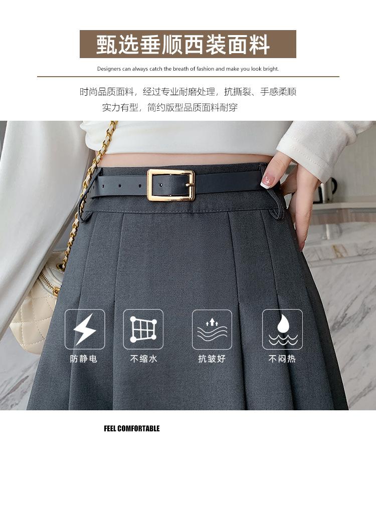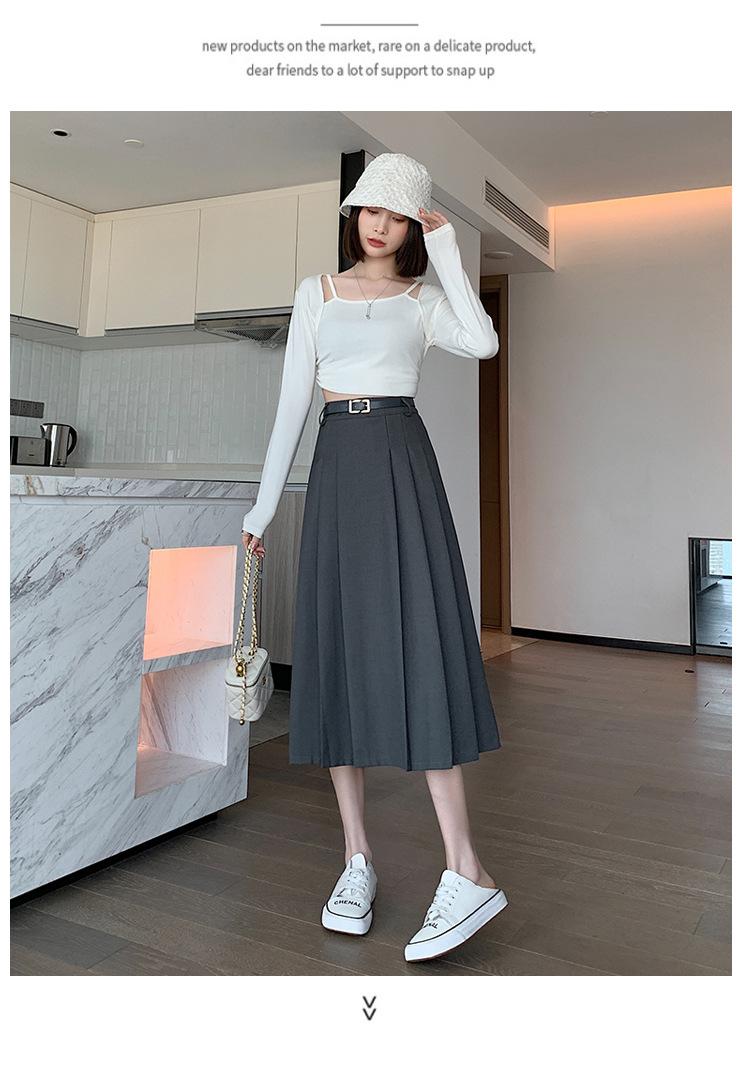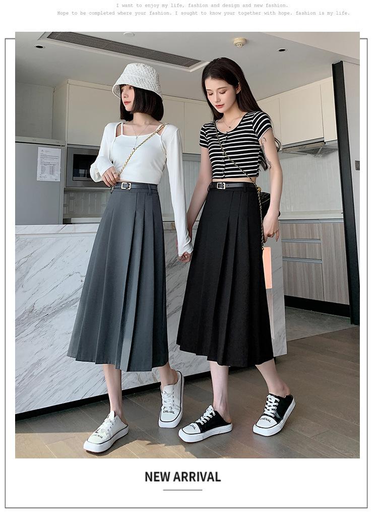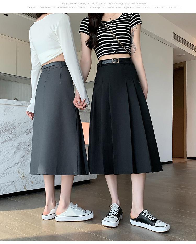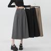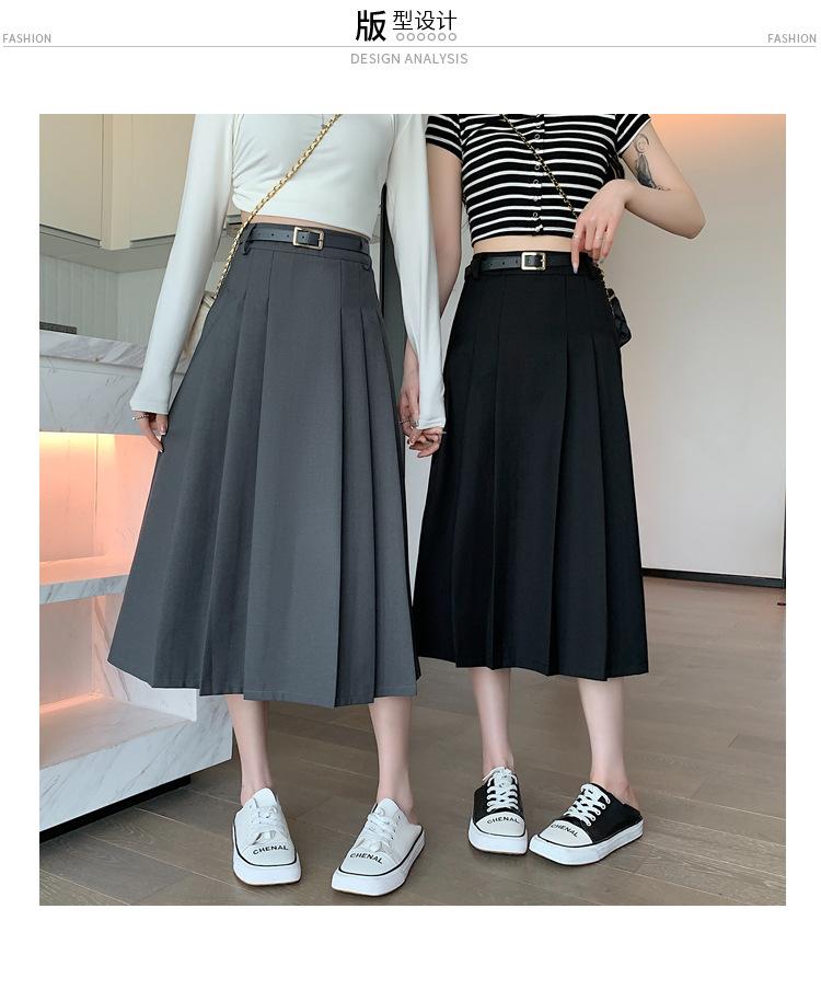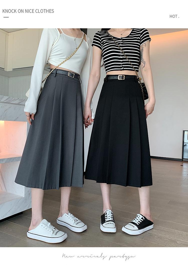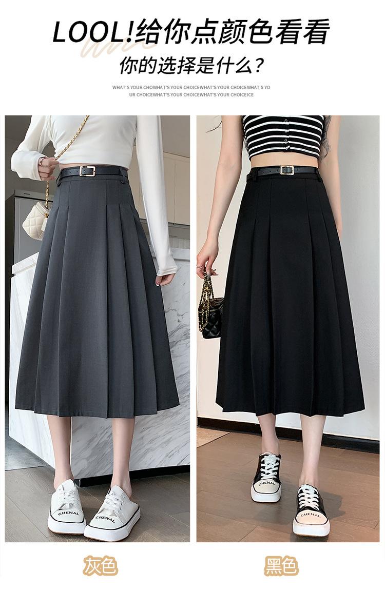 Foto Real de 2025 Nuevo Verano Estilo Coreano Cintura Alta Cubre Caderas Look Adelgazante Largo Medio Traje Gris Falda Plisada con Dobladillo Grande