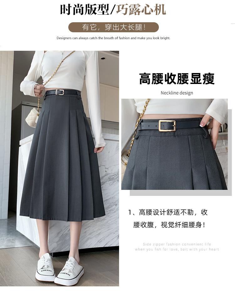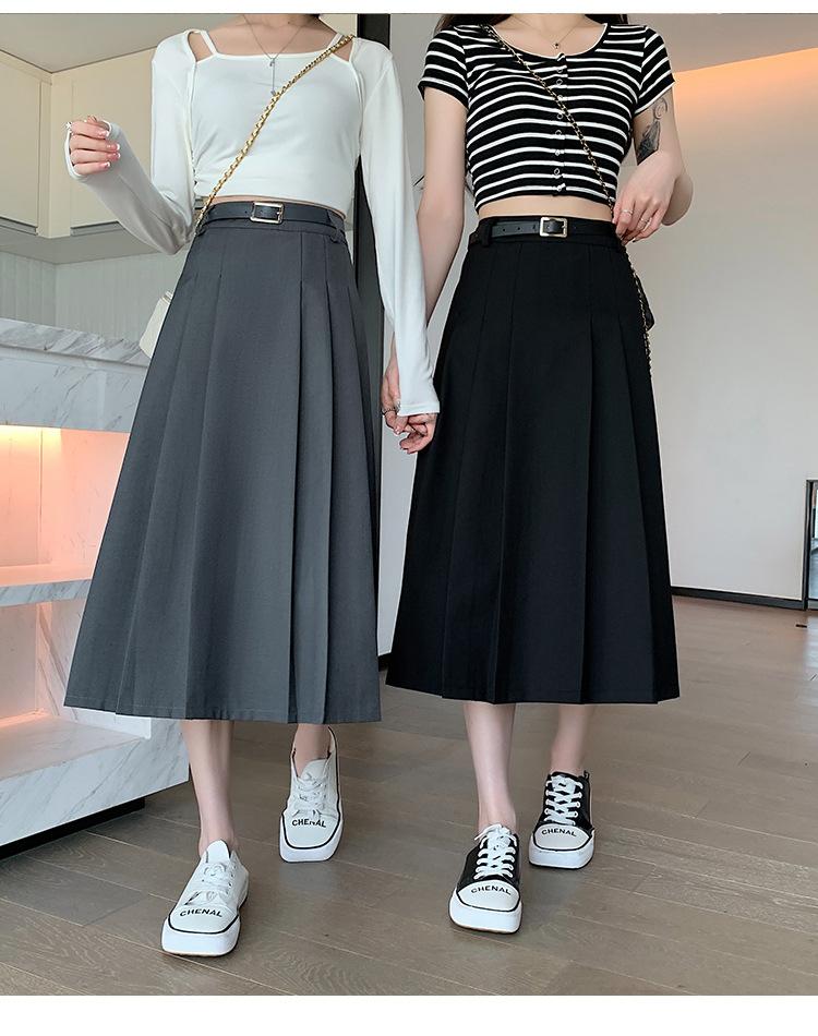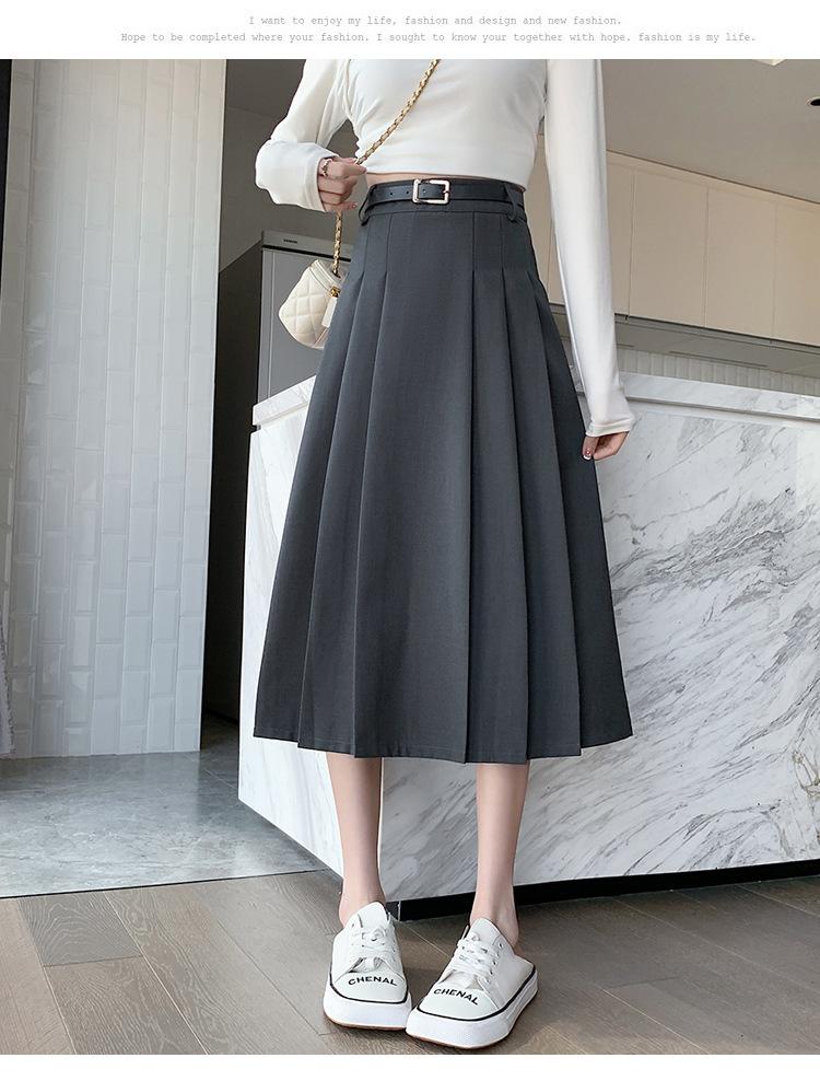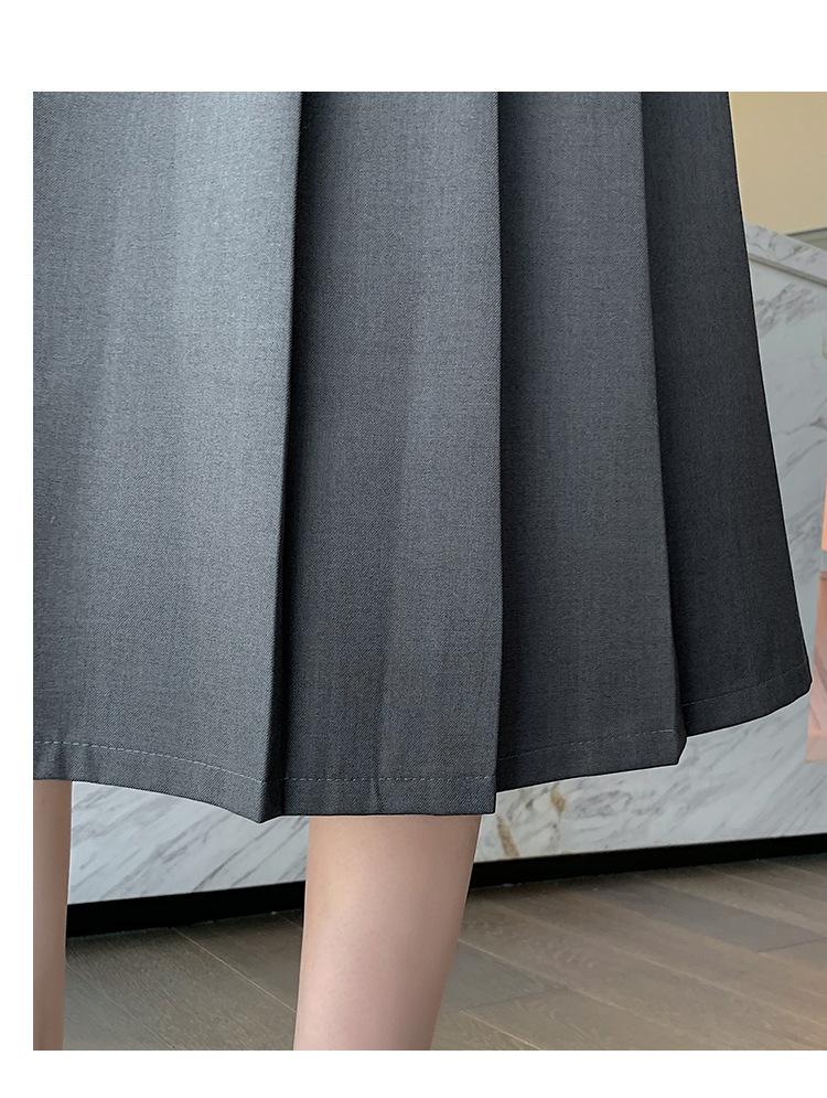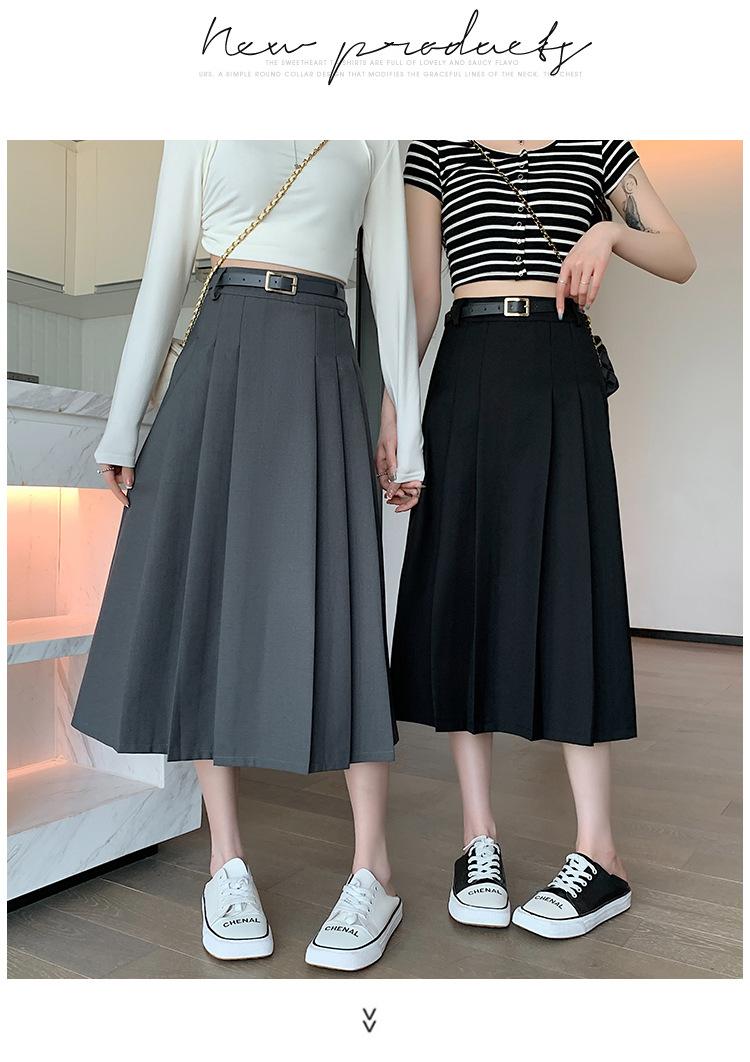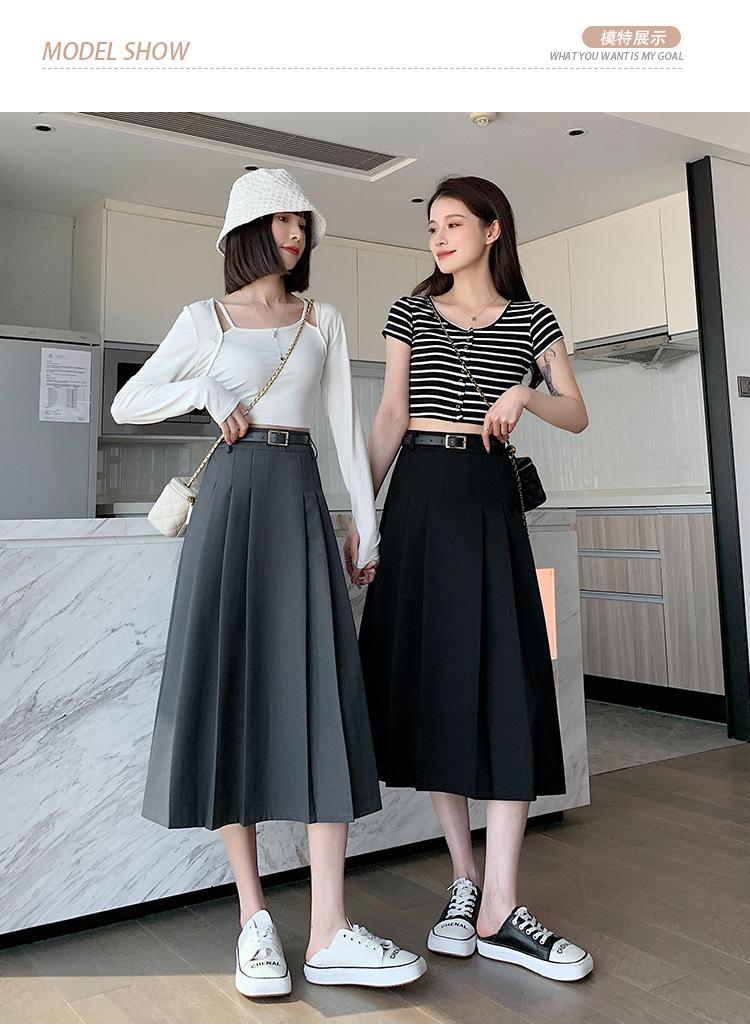 Foto Real de 2025 Nuevo Verano Estilo Coreano Cintura Alta Cubre Caderas Look Adelgazante Largo Medio Traje Gris Falda Plisada con Dobladillo Grande