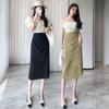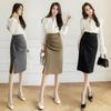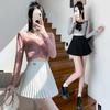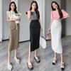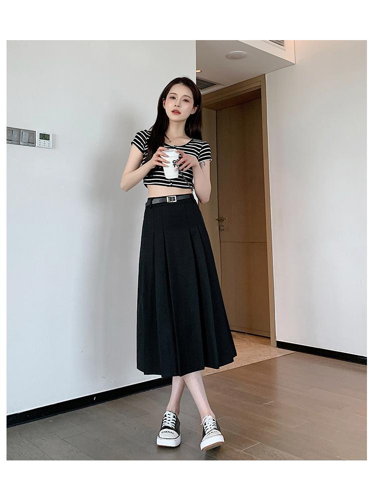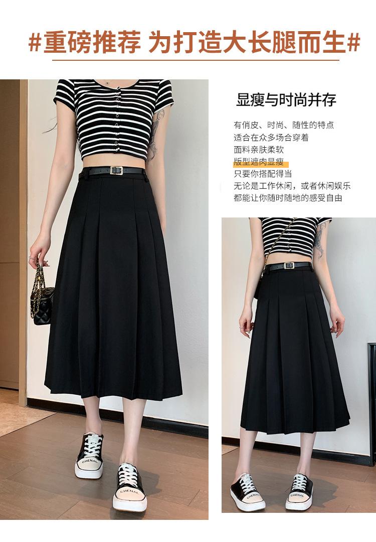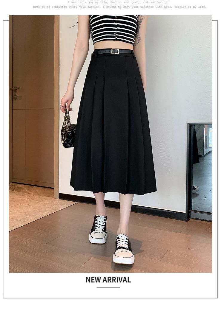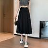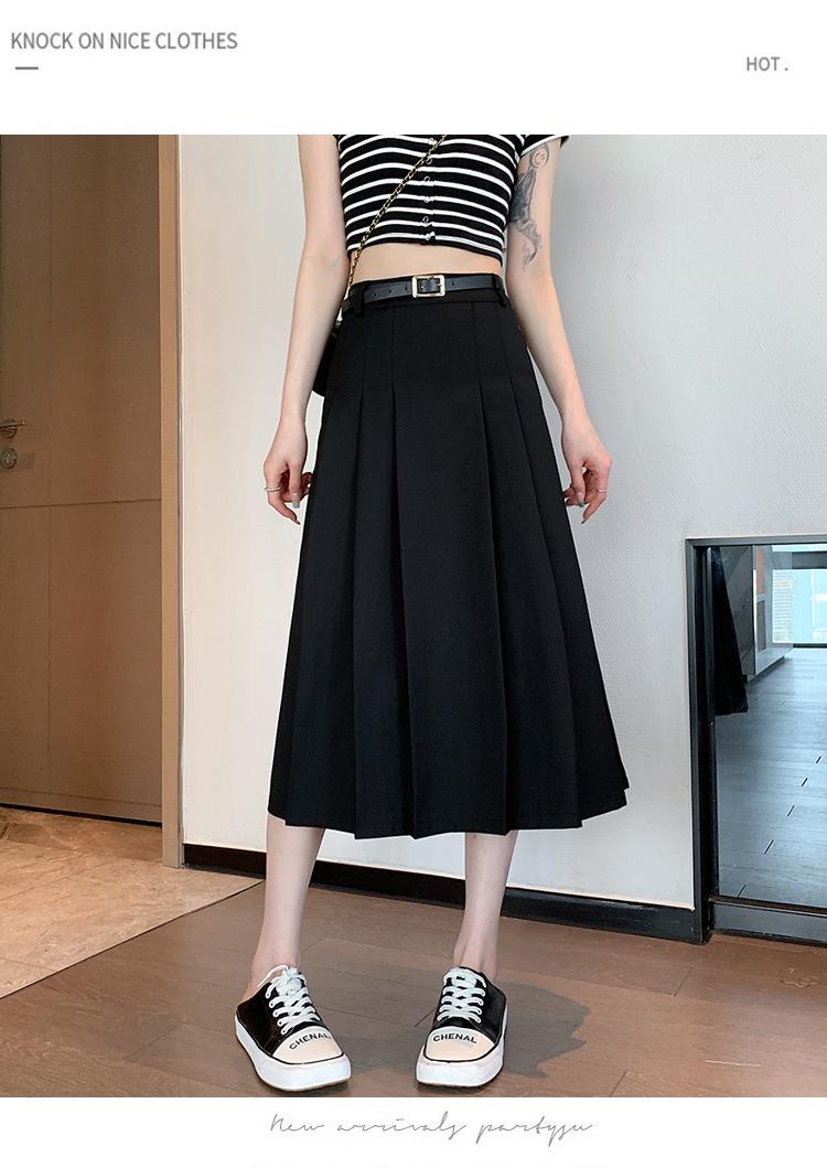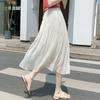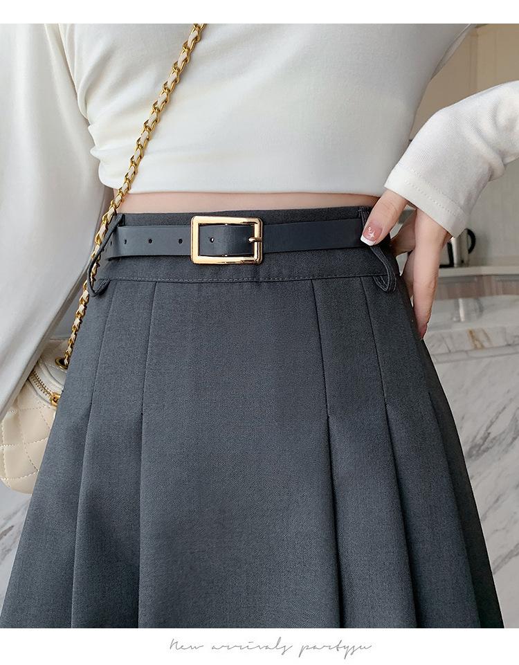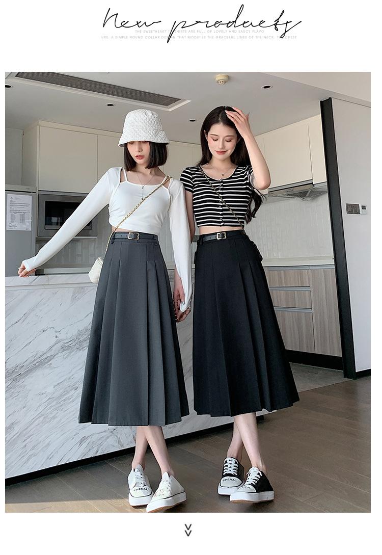 Foto Real de 2025 Nuevo Verano Estilo Coreano Cintura Alta Cubre Caderas Look Adelgazante Largo Medio Traje Gris Falda Plisada con Dobladillo Grande