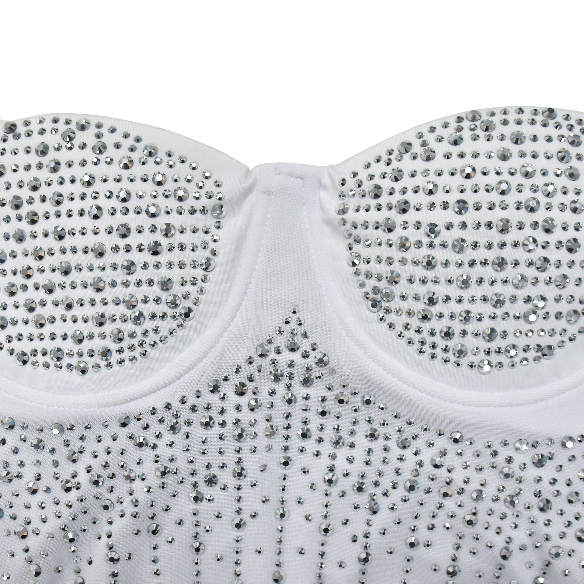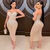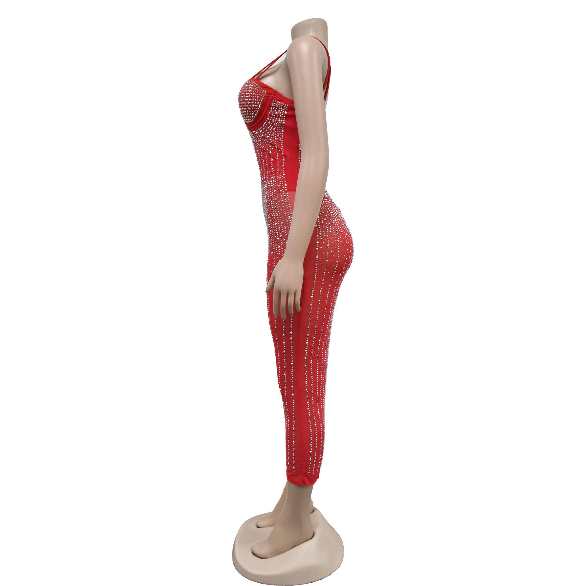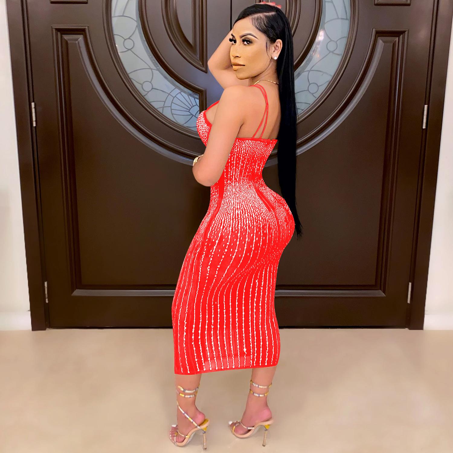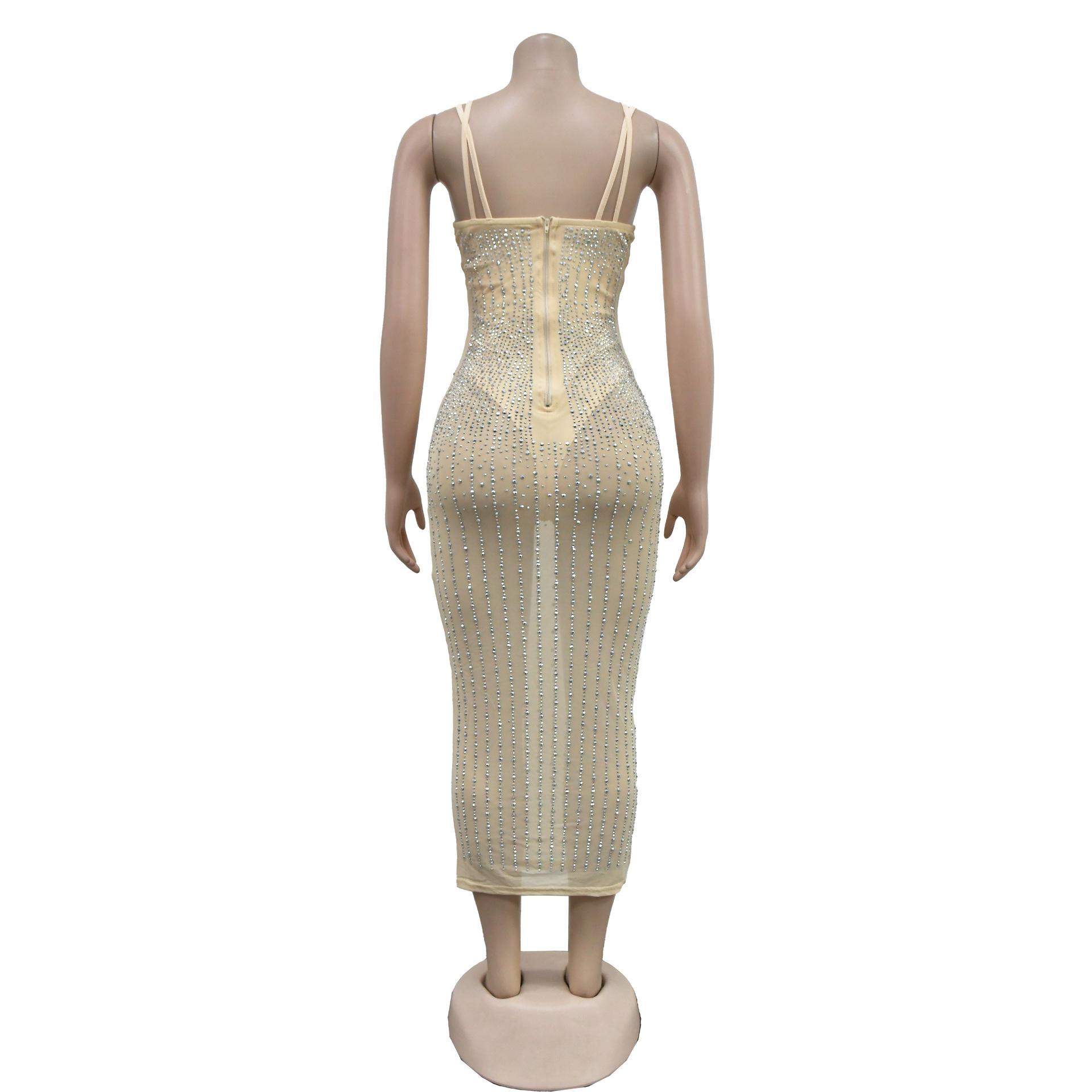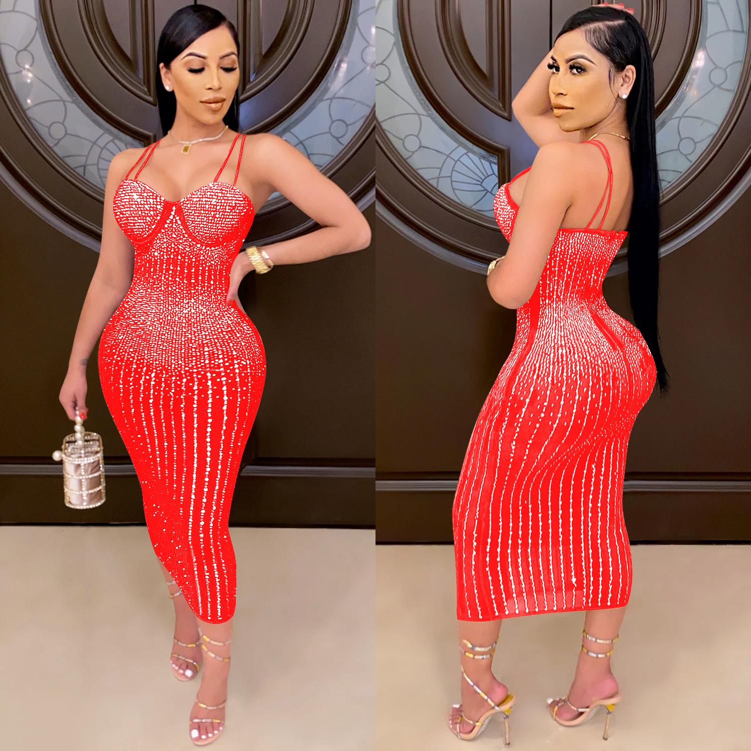 X3805 nuevo transfronterizo moda europea y americana ropa de mujer Fiesta club nocturno malla transparencia pedrería Diamante tirantes vestido