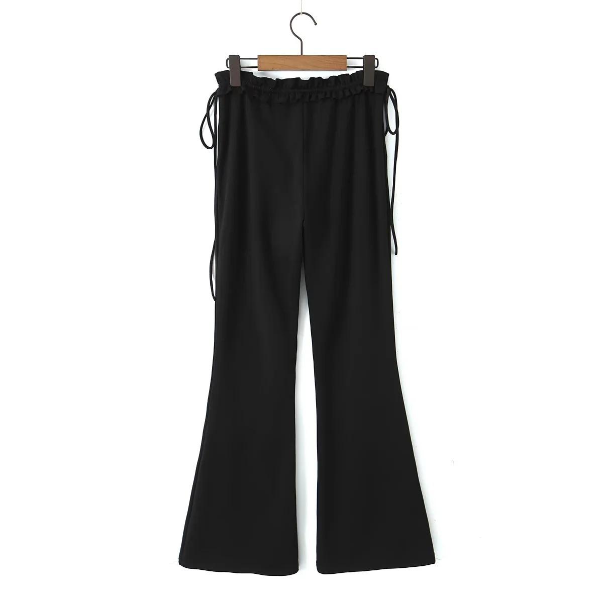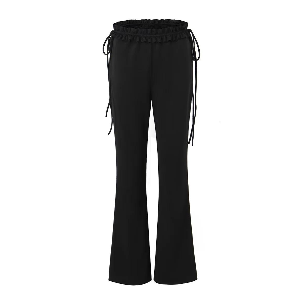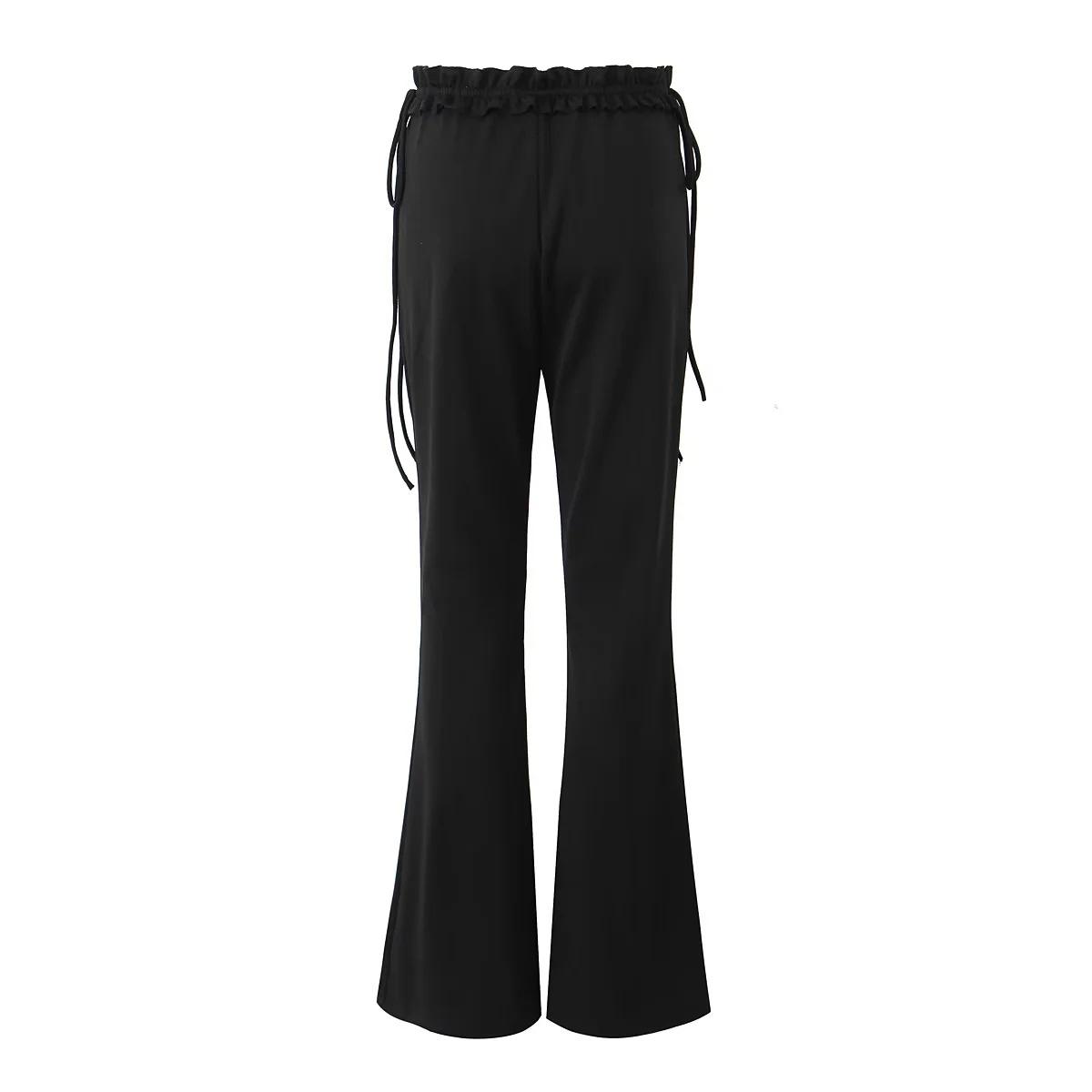 Chica Americana INS caliente Sexy Ajustado oreja de madera cintura baja pantalones acampanados pantalones acampanados con cordones negros para mujer pantalones casuales