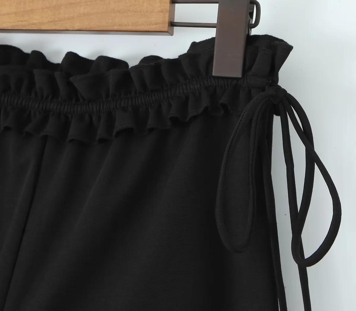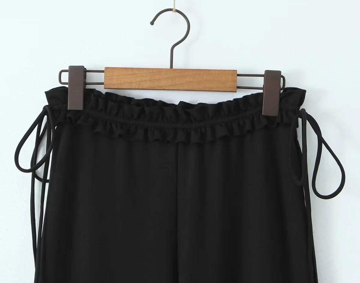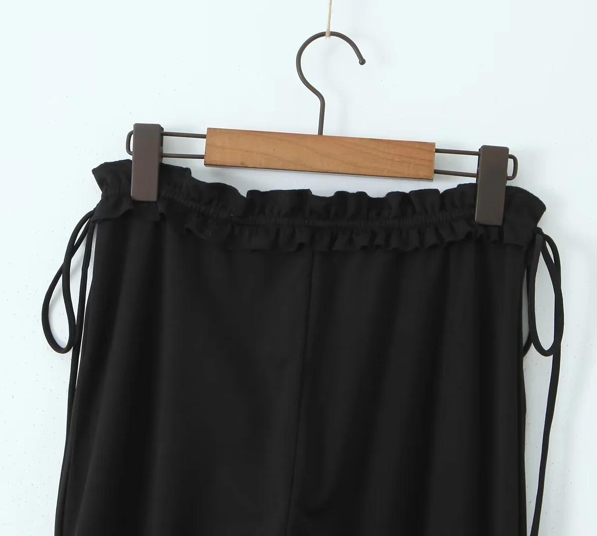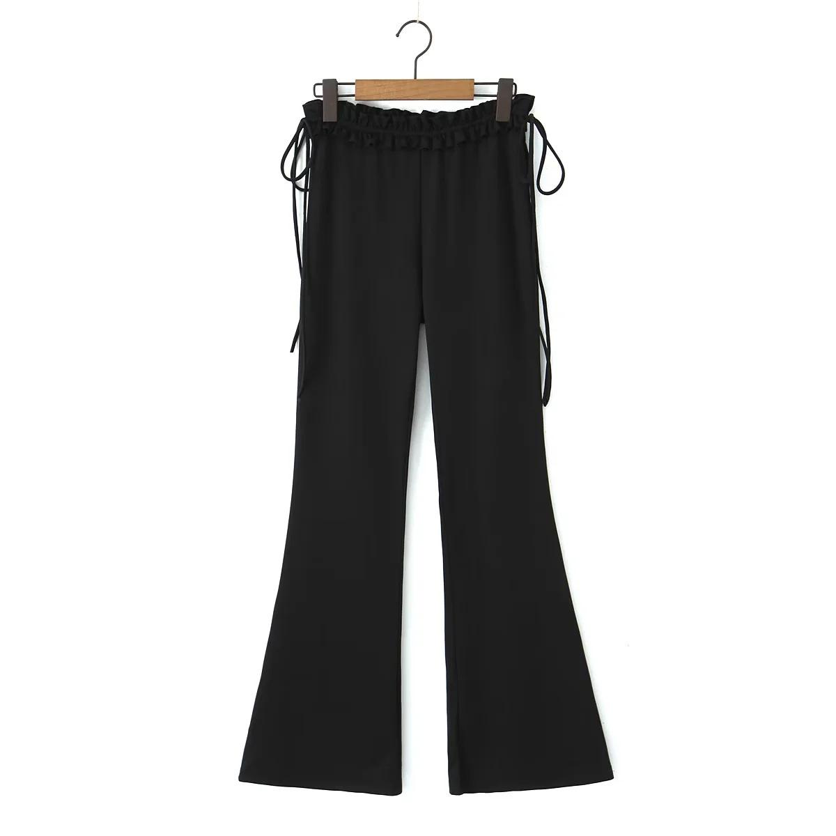 Chica Americana INS caliente Sexy Ajustado oreja de madera cintura baja pantalones acampanados pantalones acampanados con cordones negros para mujer pantalones casuales