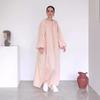 Otoño 2024 nuevo vestido europeo y americano transfronterizo de Amazon transfronterizo de color sólido con cordón ajustable, cuello redondo y manga larga holgada