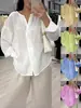 Camisa holgada de manga larga con pliegues tricolor para mujer, estilo europeo y americano, C73460
