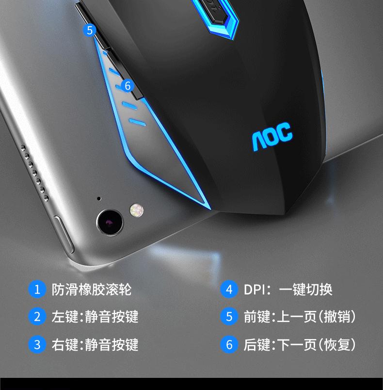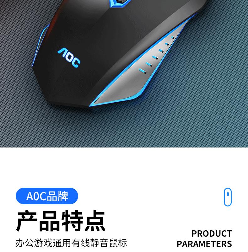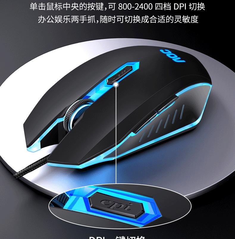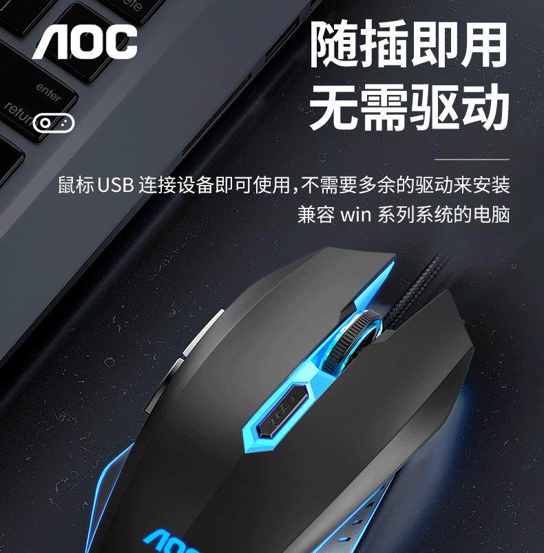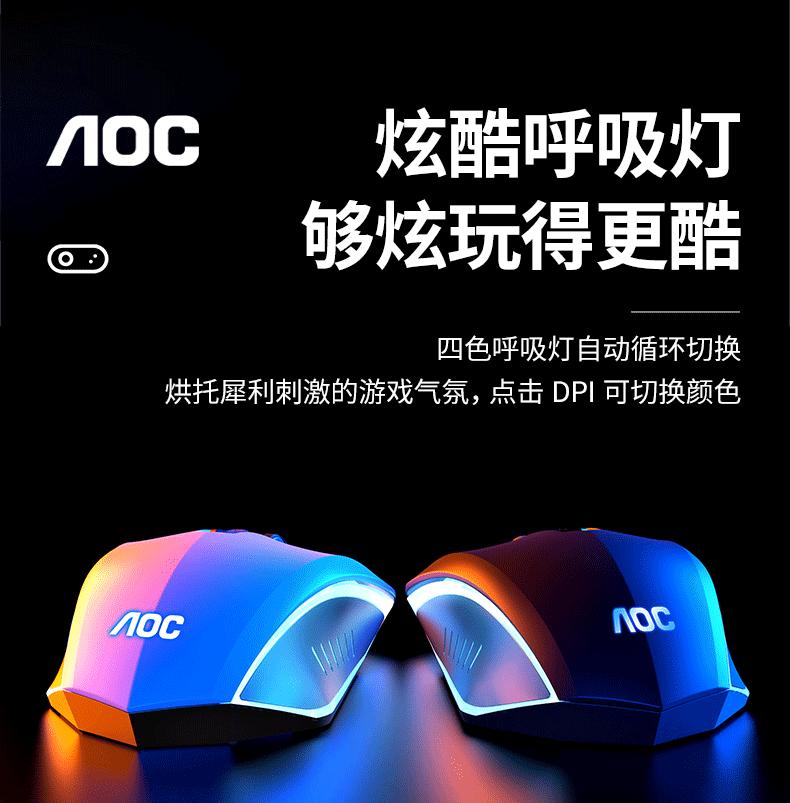 Ratón luminoso para juegos con cable AOC GM130, USB, para ordenador portátil o de escritorio, fotoeléctrico, de siete colores, para comer pollo