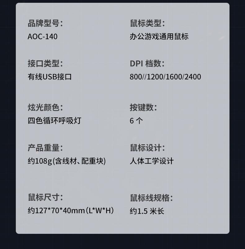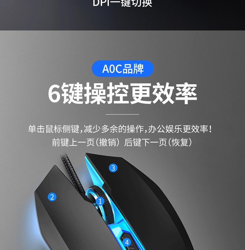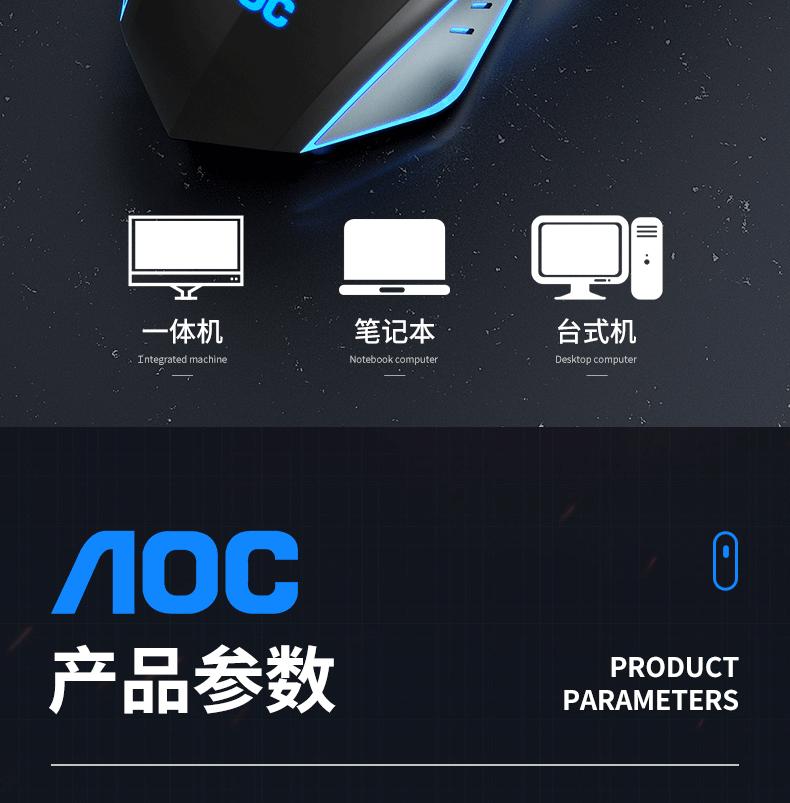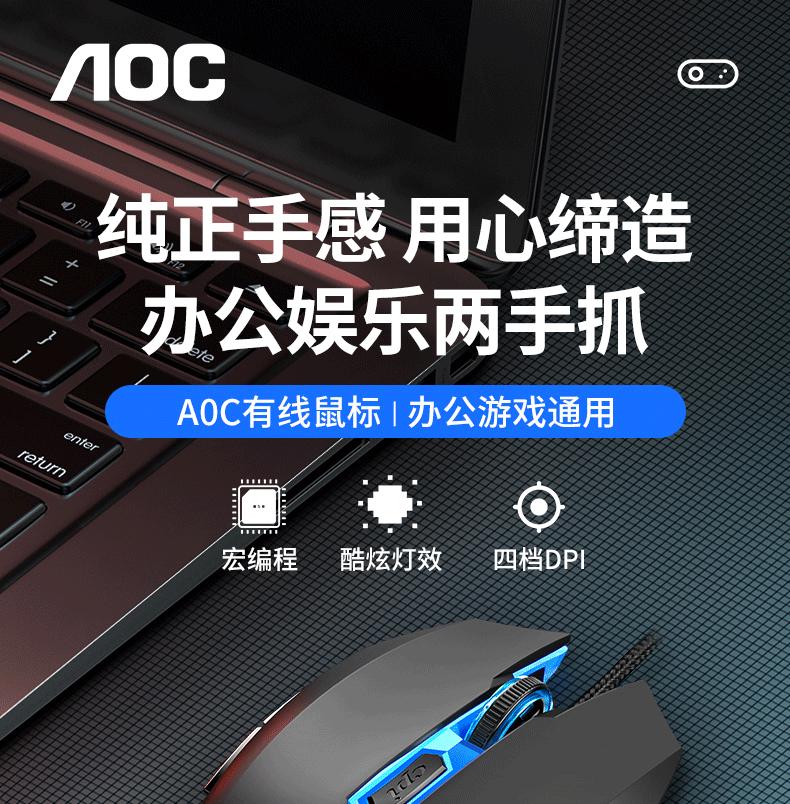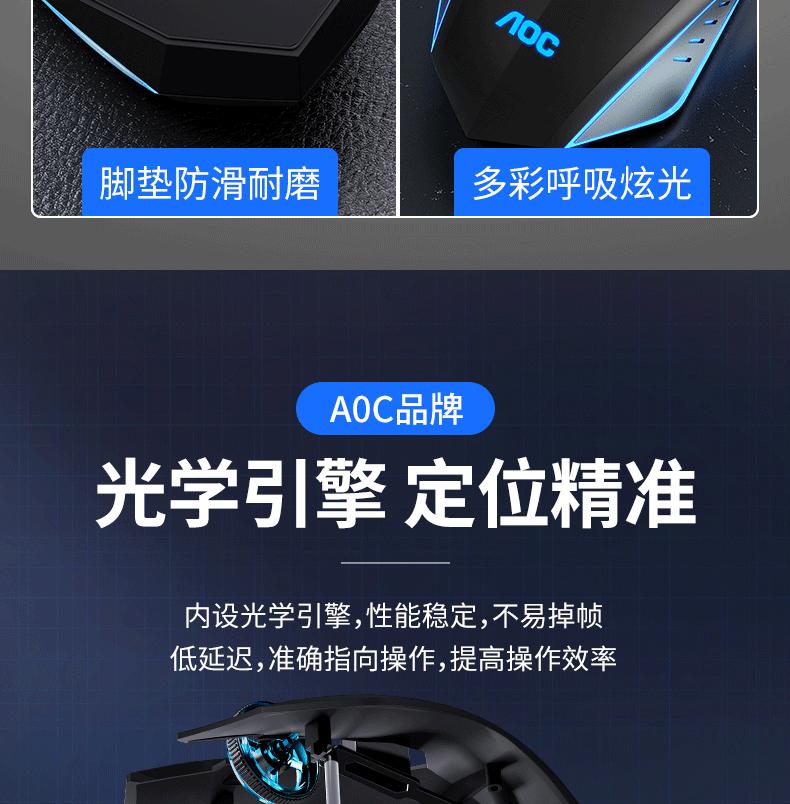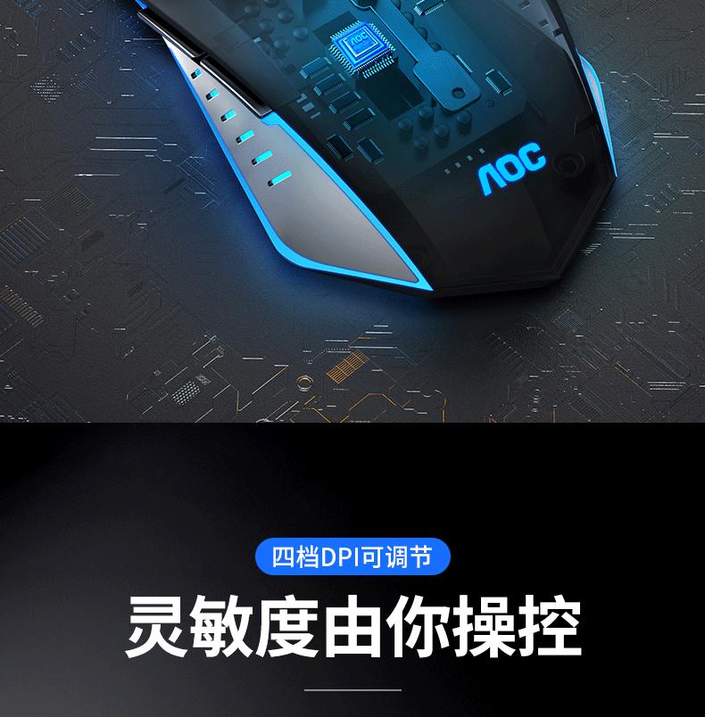 Ratón luminoso para juegos con cable AOC GM130, USB, para ordenador portátil o de escritorio, fotoeléctrico, de siete colores, para comer pollo