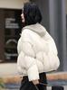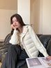 Chaqueta corta de plumón de pato blanco de alta gama para mujer Invierno Nuevo diseño de moda Empalme Manga de punto Chaqueta cálida