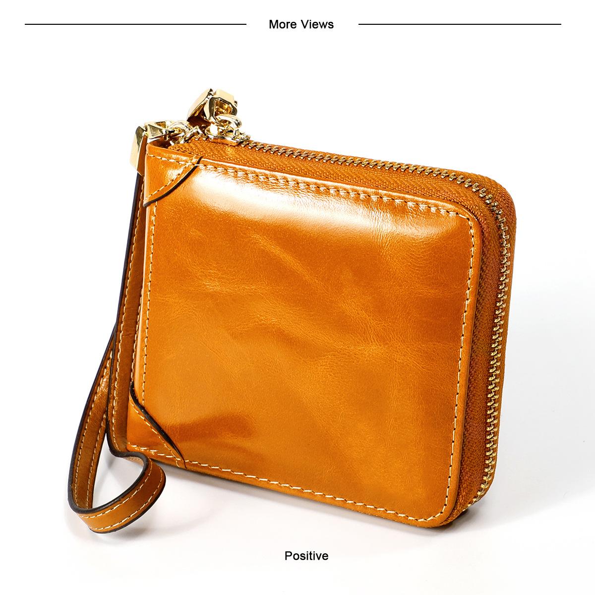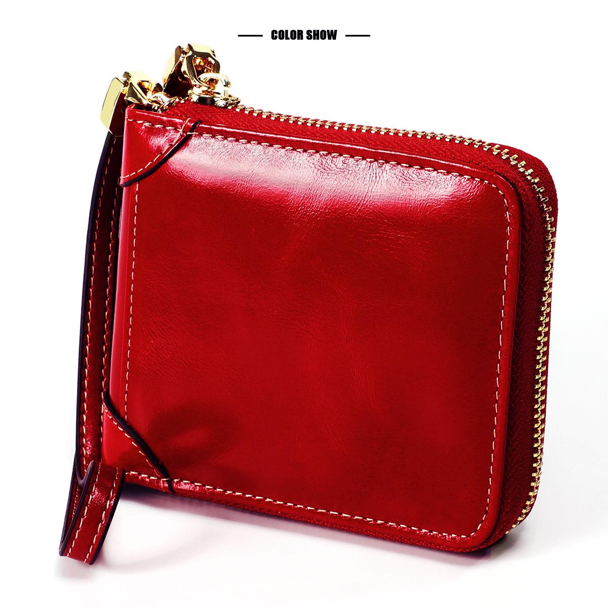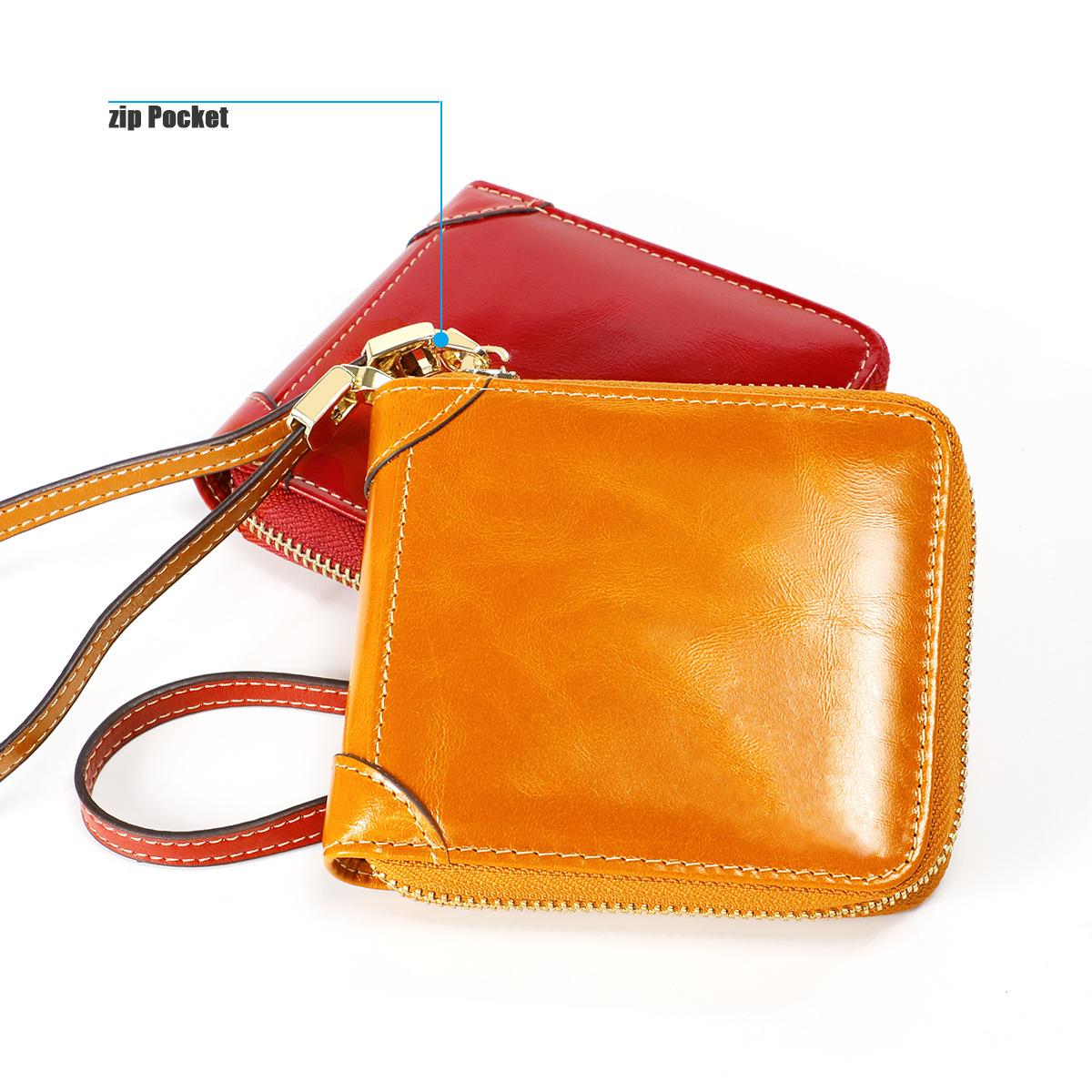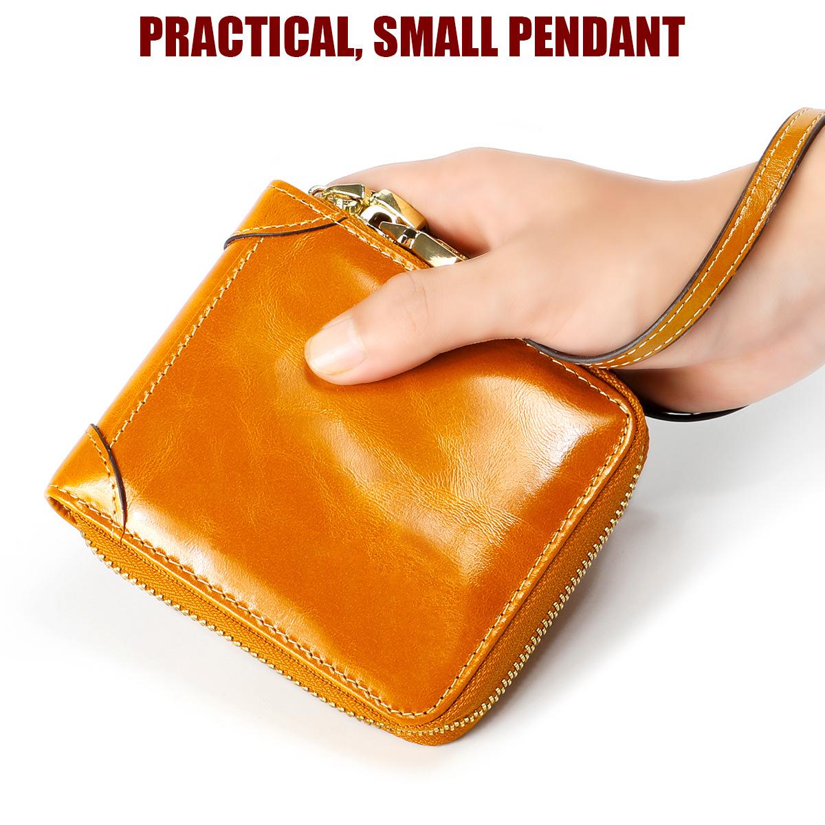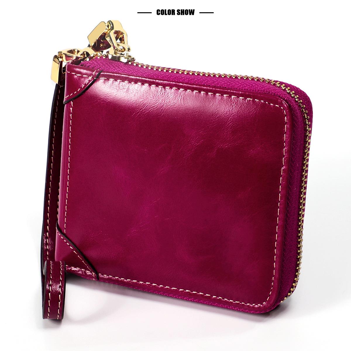 Monedero corto de piel de vacuno con cremallera y cera de aceite, estilo vintage, con capa superior de piel auténtica, con cepillo antirrobo y RFID para mujer.