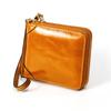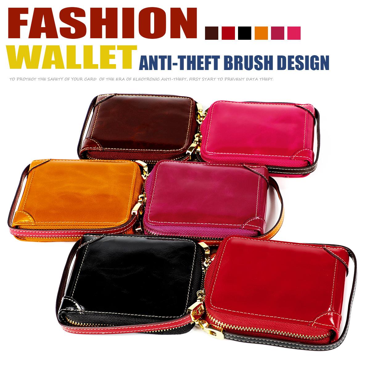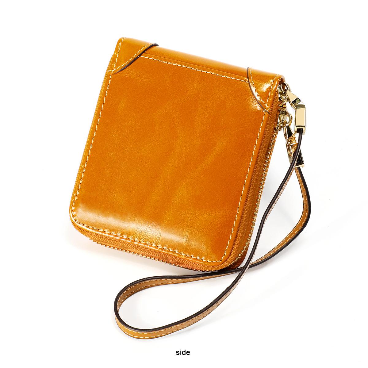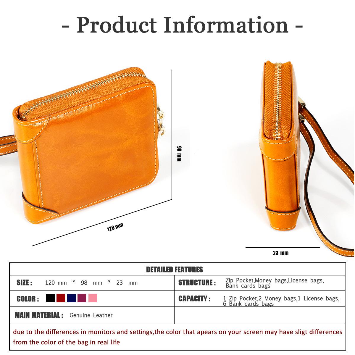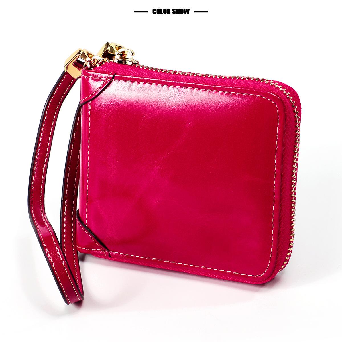 Monedero corto de piel de vacuno con cremallera y cera de aceite, estilo vintage, con capa superior de piel auténtica, con cepillo antirrobo y RFID para mujer.