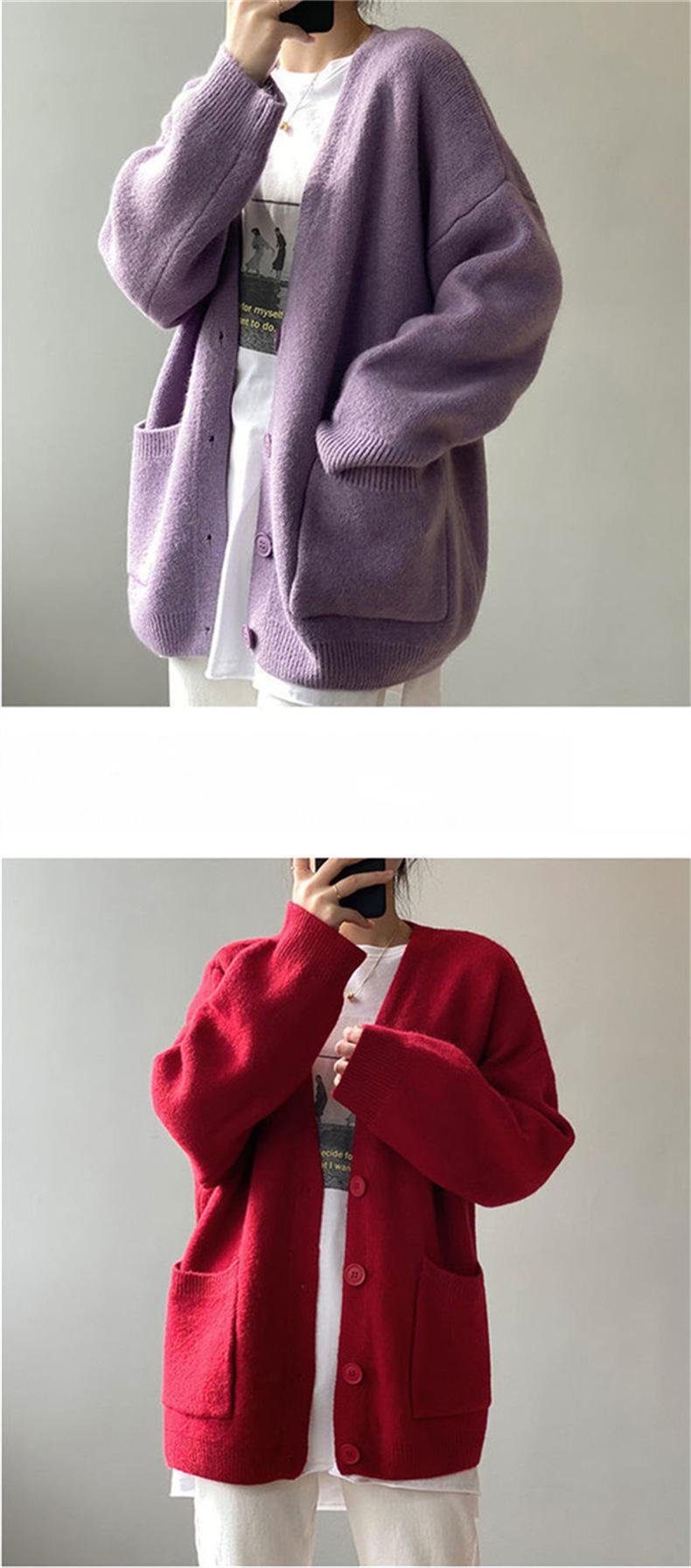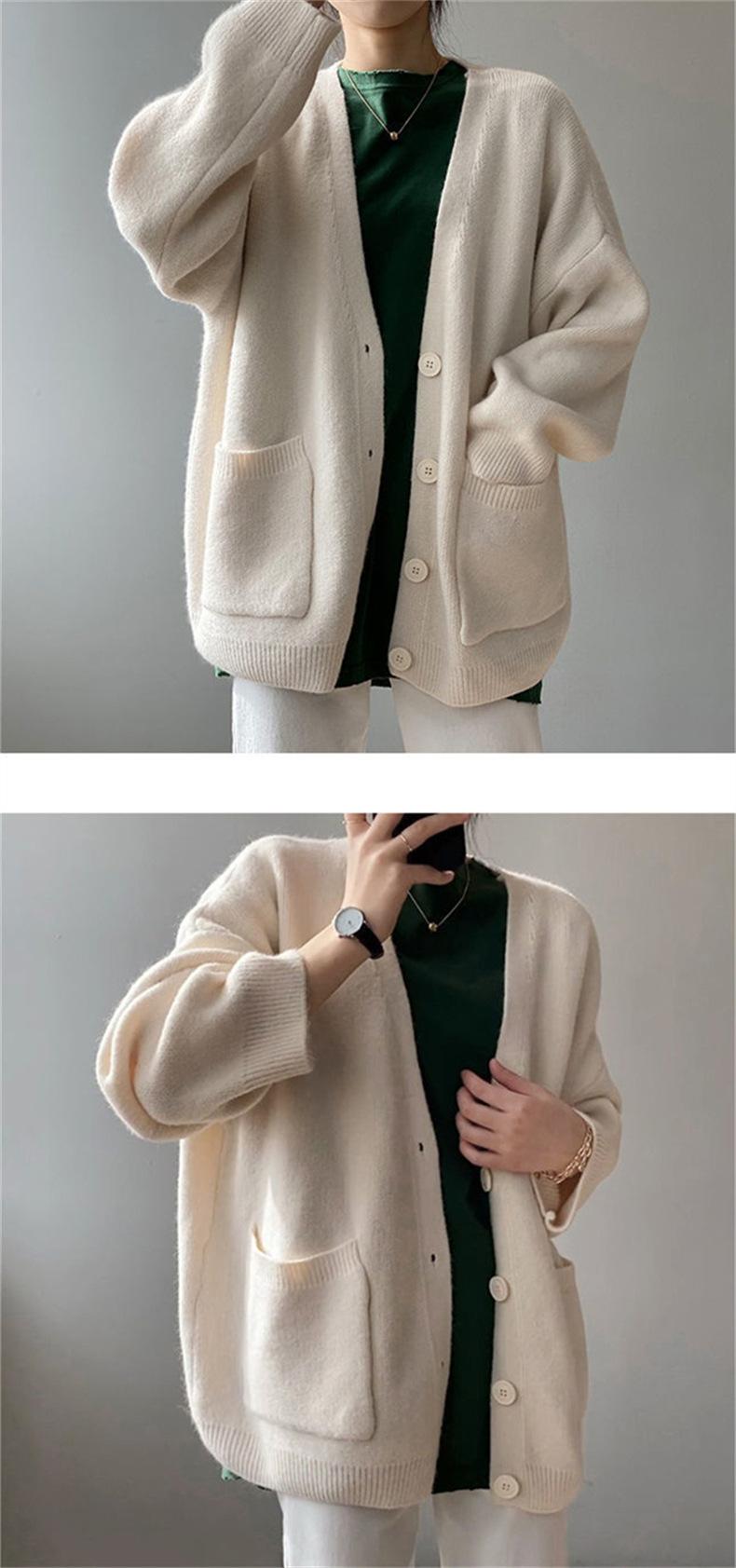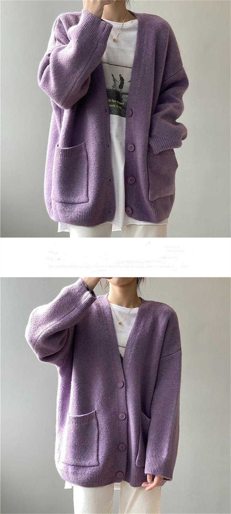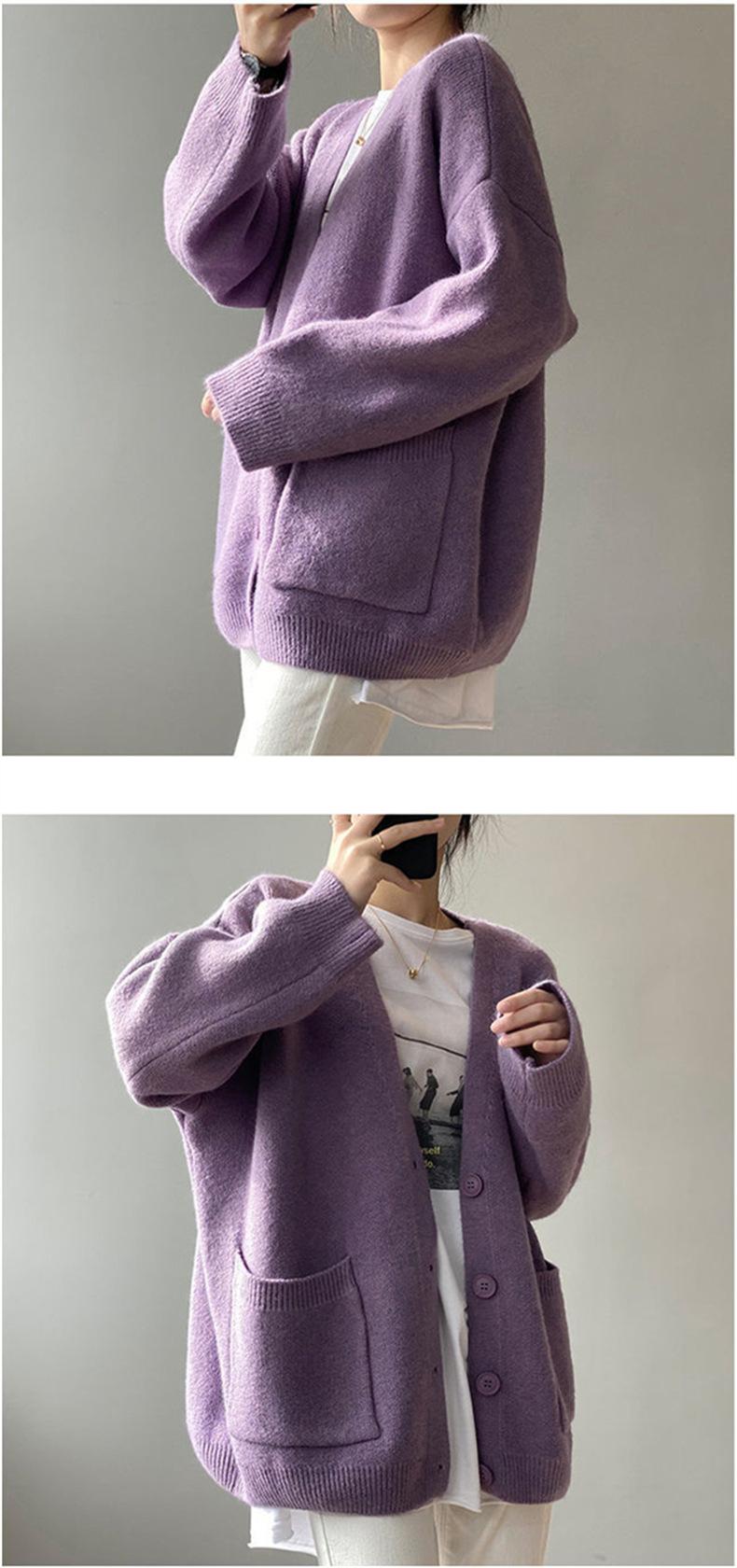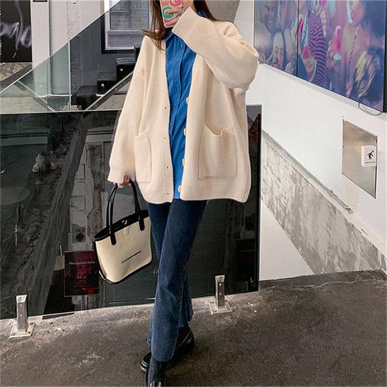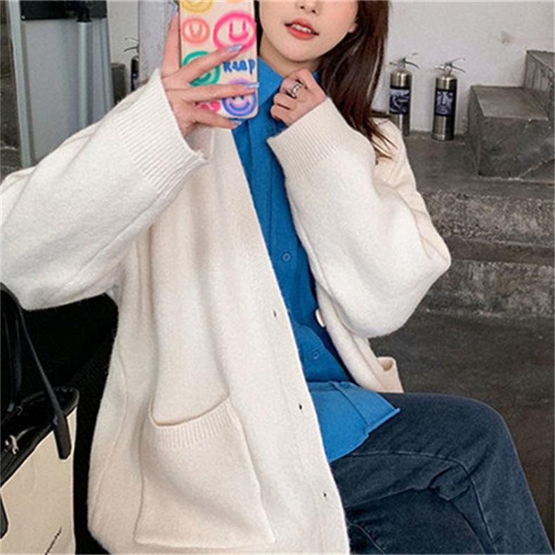 Suéter Abrigo Ropa Exterior para Mujer 2025 Otoño e Invierno Nuevo Estilo Coreano Manga Larga Suelto Estilo Occidental Estilo Lazy Color Puro Cárdigan de Punto