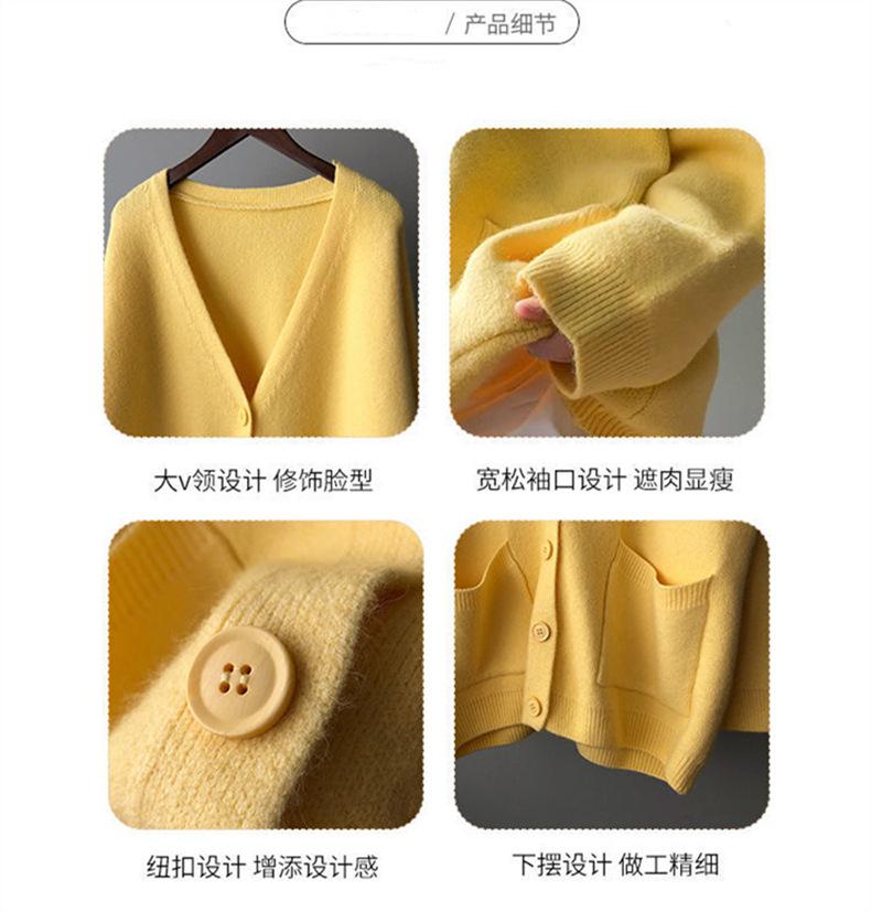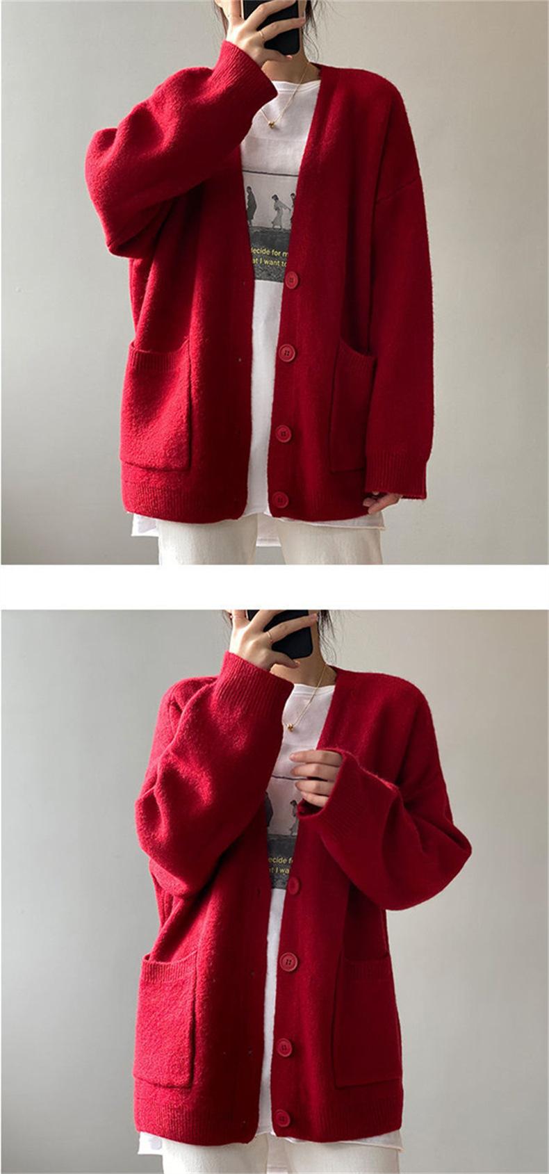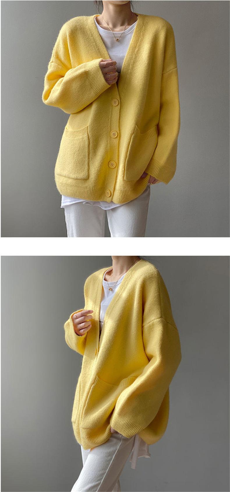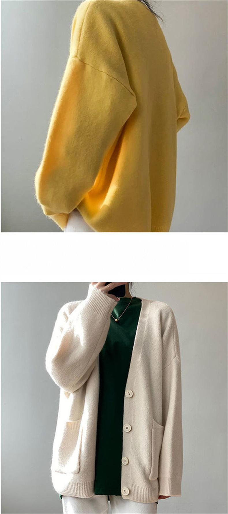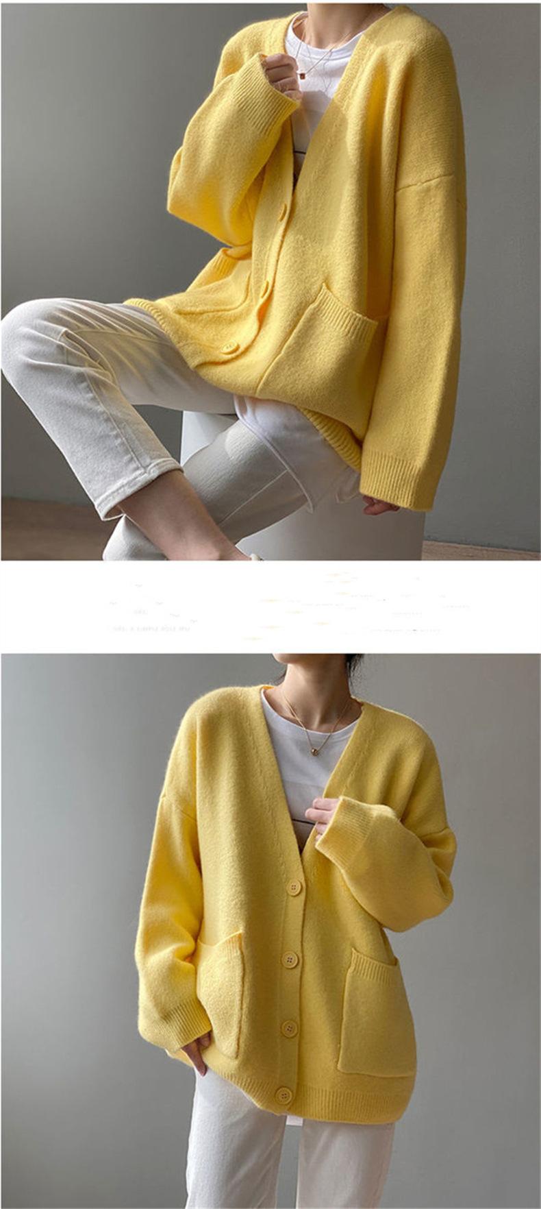 Suéter Abrigo Ropa Exterior para Mujer 2025 Otoño e Invierno Nuevo Estilo Coreano Manga Larga Suelto Estilo Occidental Estilo Lazy Color Puro Cárdigan de Punto