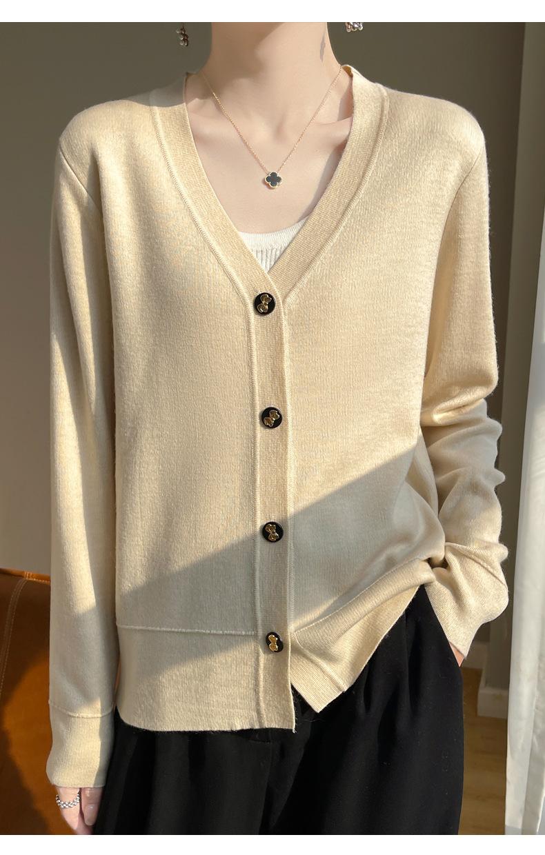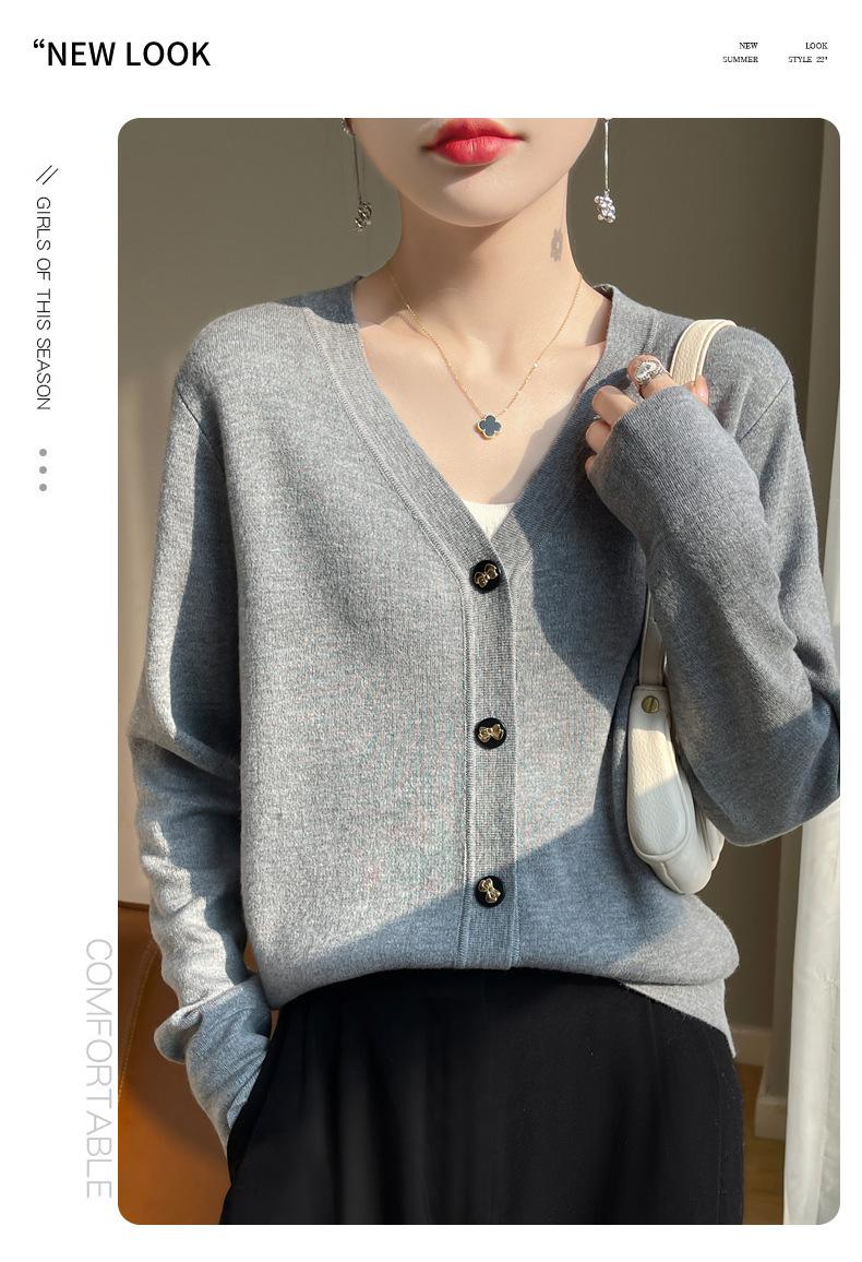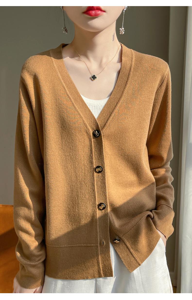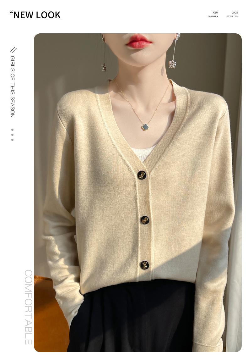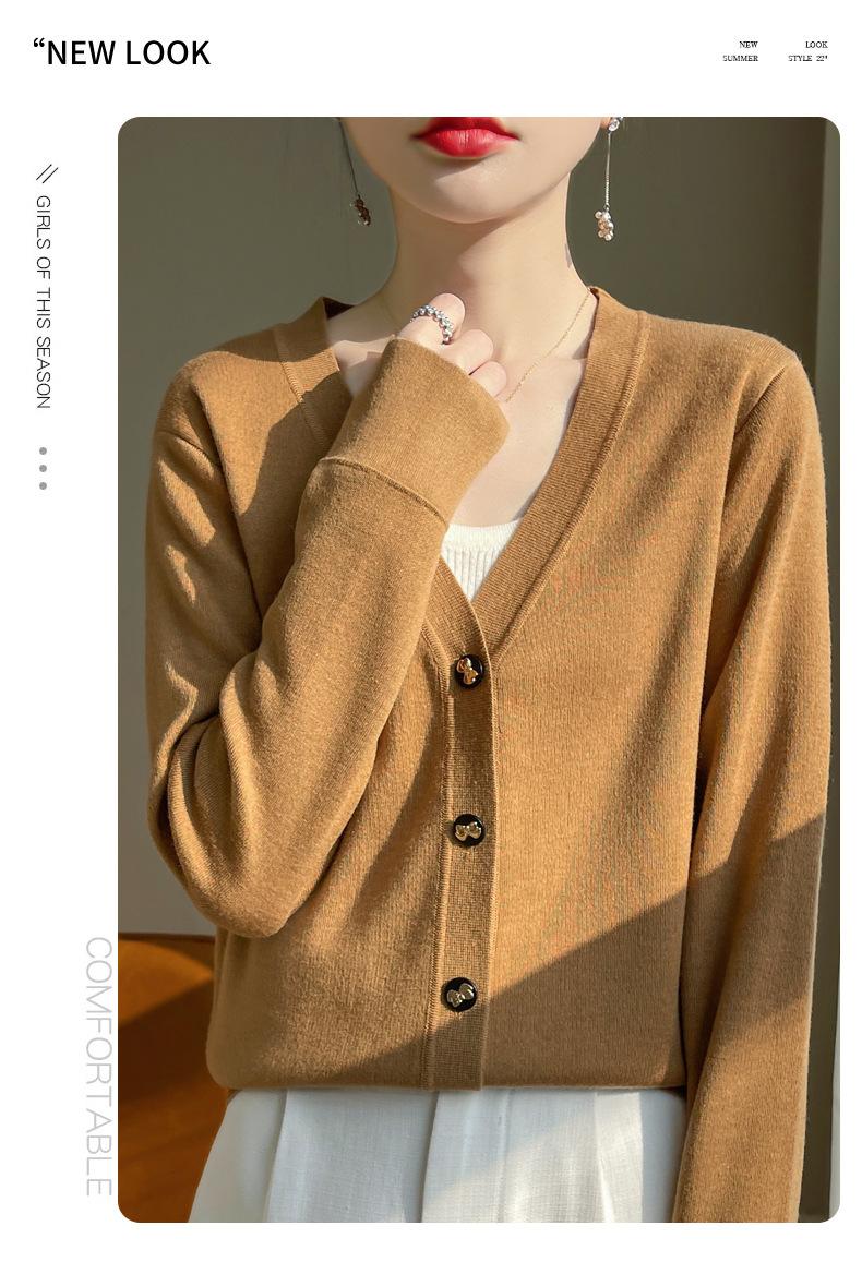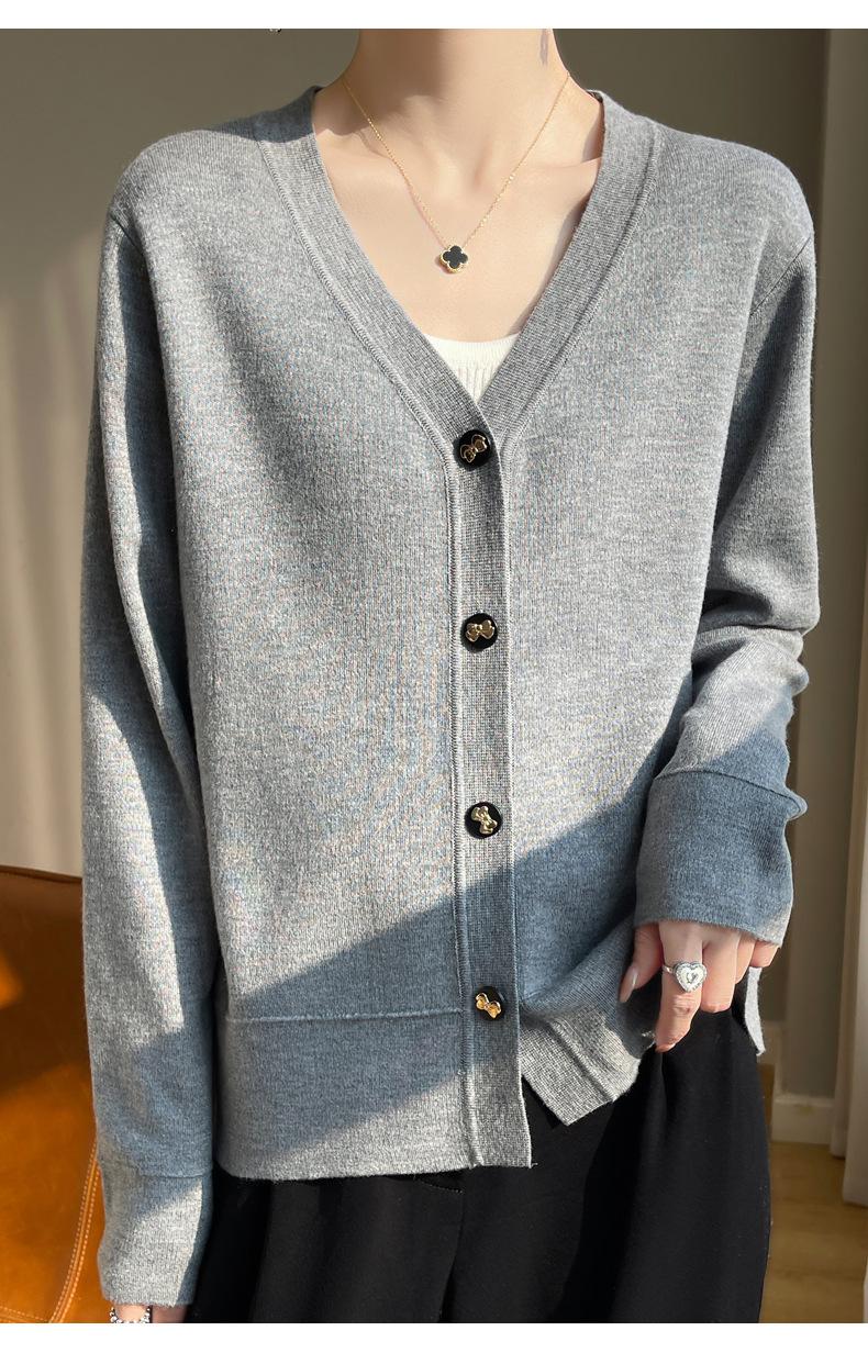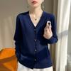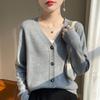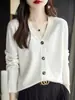 Cárdigan de Lana de Estilo Coreano Suave con Cuello en V para Primavera 2024, Suéter para Mujer Casual Holgado de Color Sólido, Chaqueta Tejida de Lana