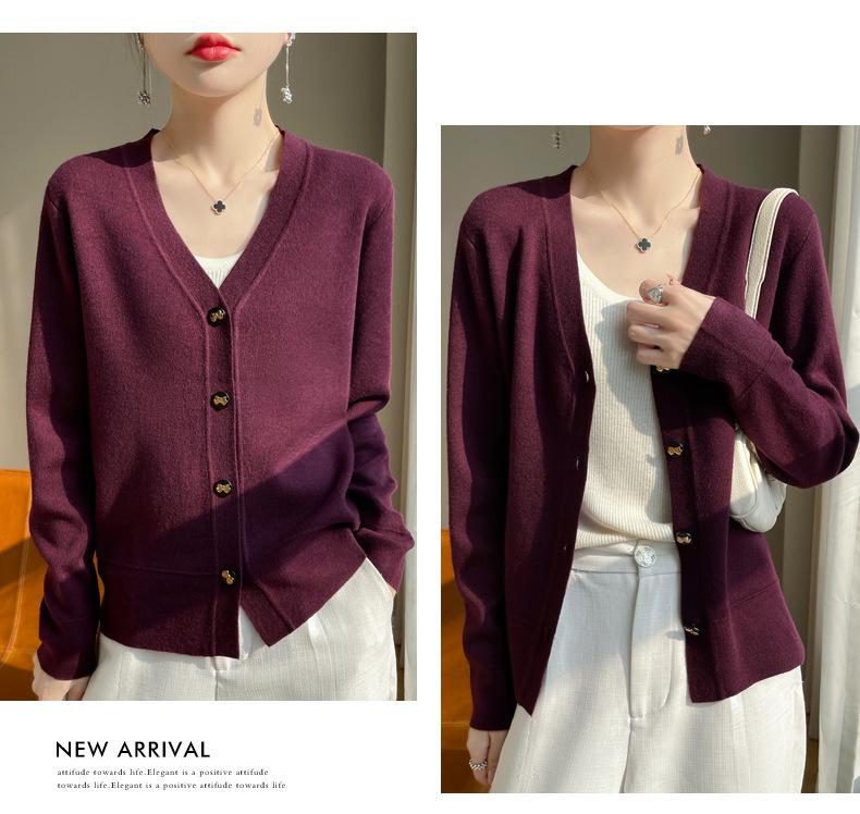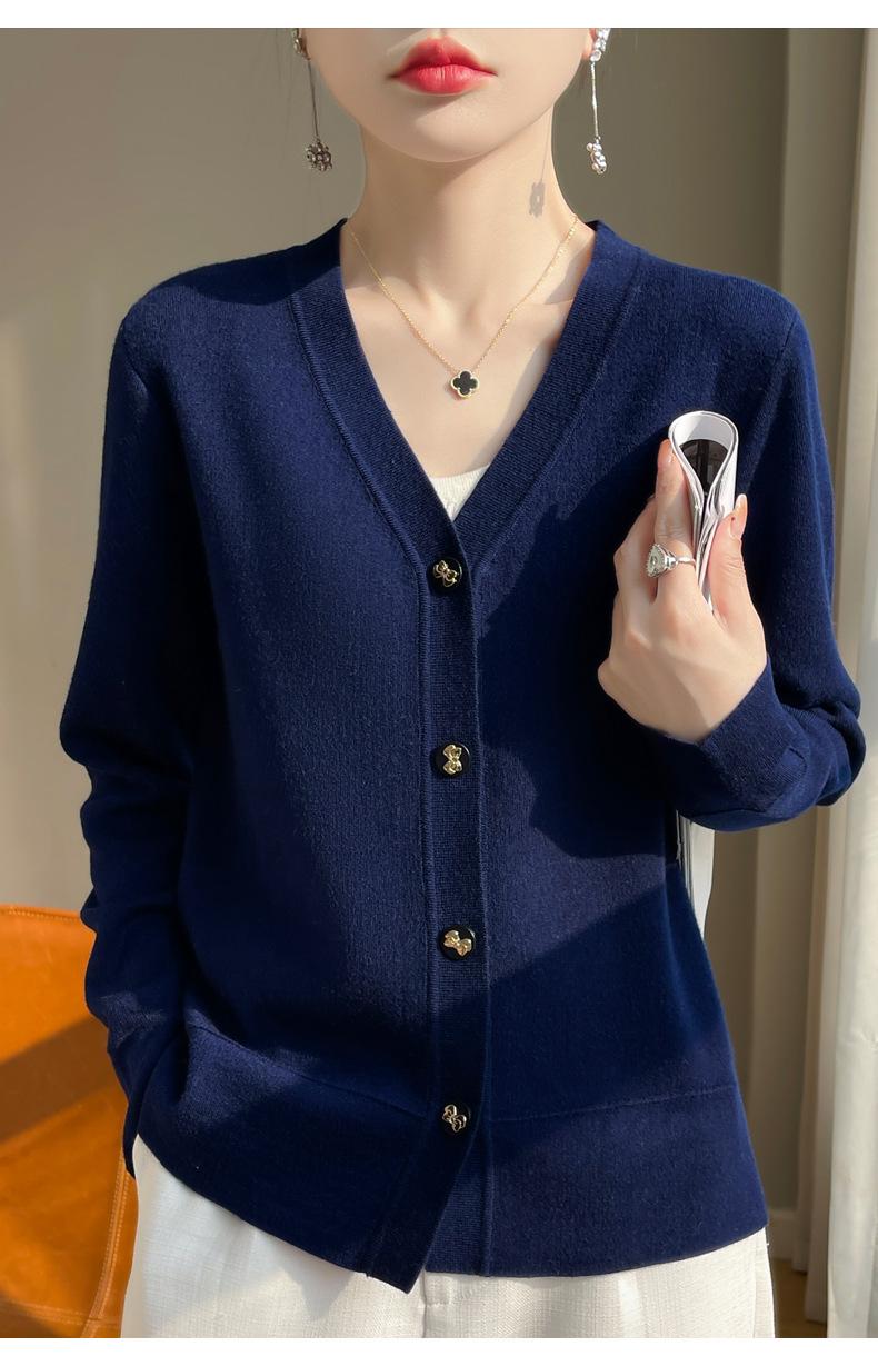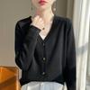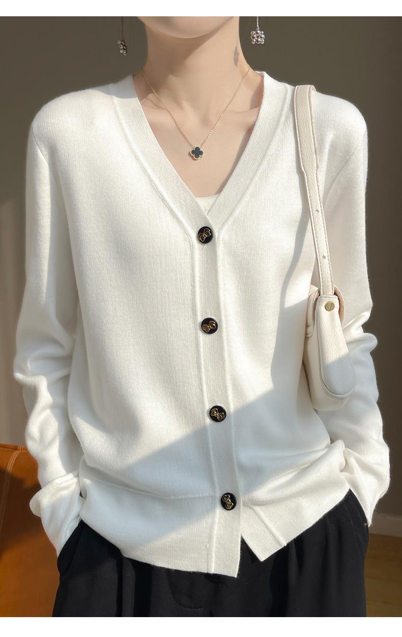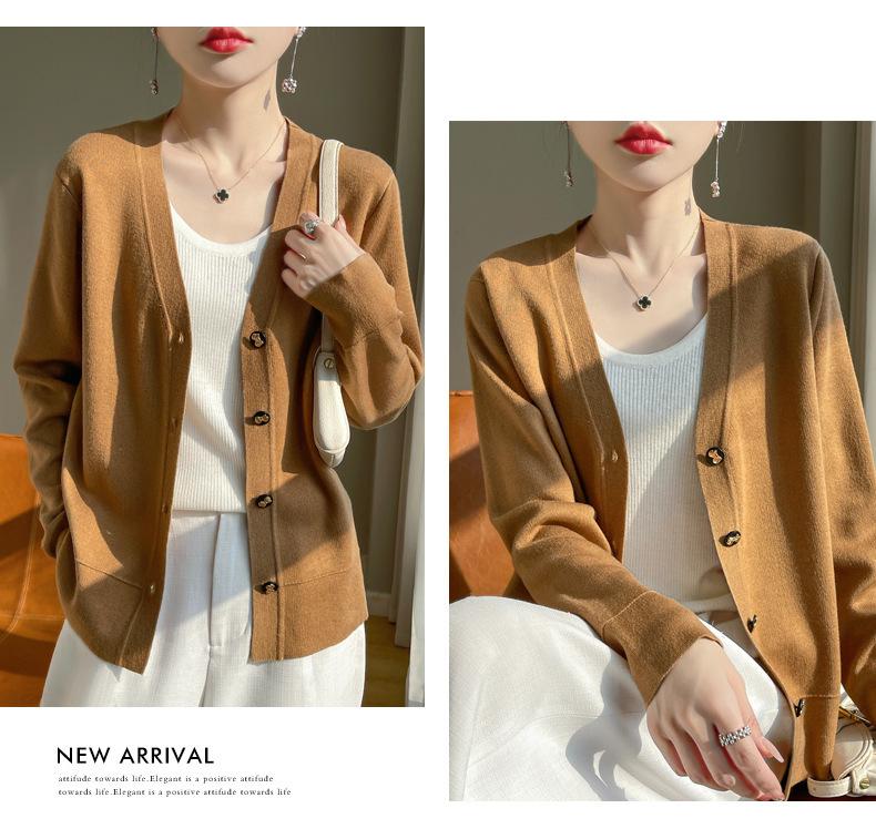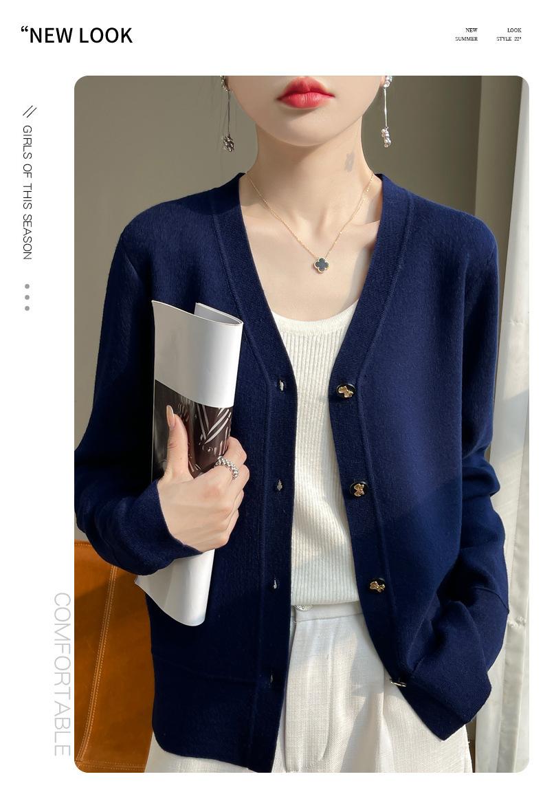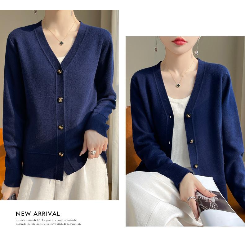 Cárdigan de Lana de Estilo Coreano Suave con Cuello en V para Primavera 2024, Suéter para Mujer Casual Holgado de Color Sólido, Chaqueta Tejida de Lana