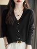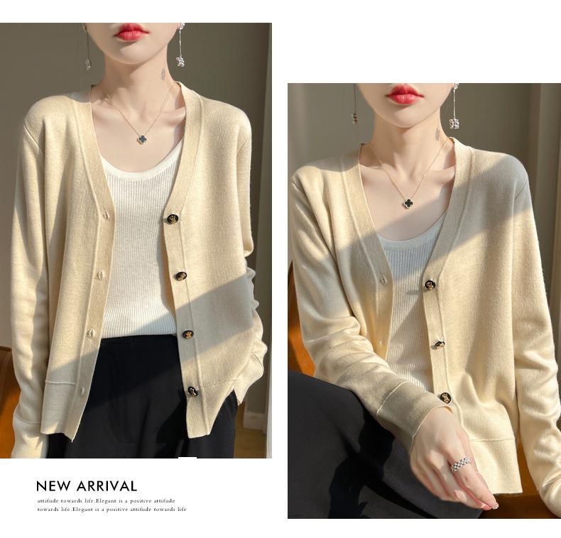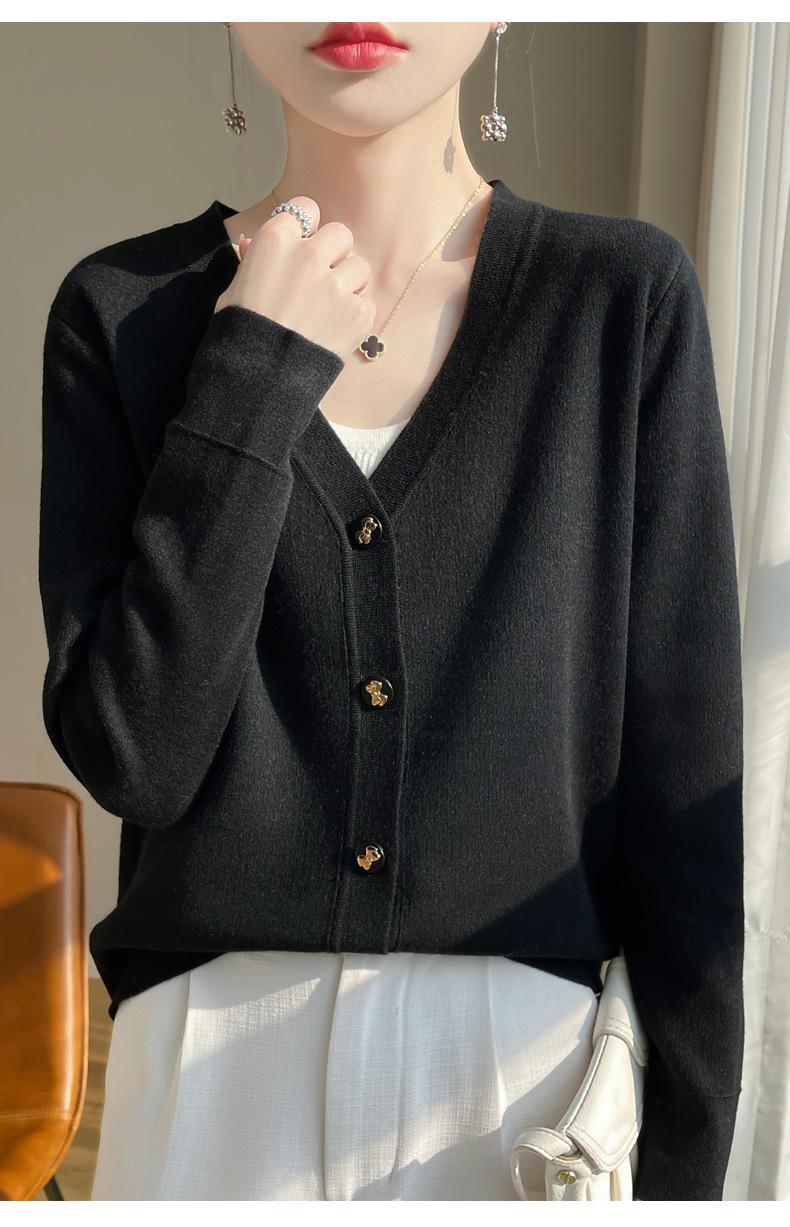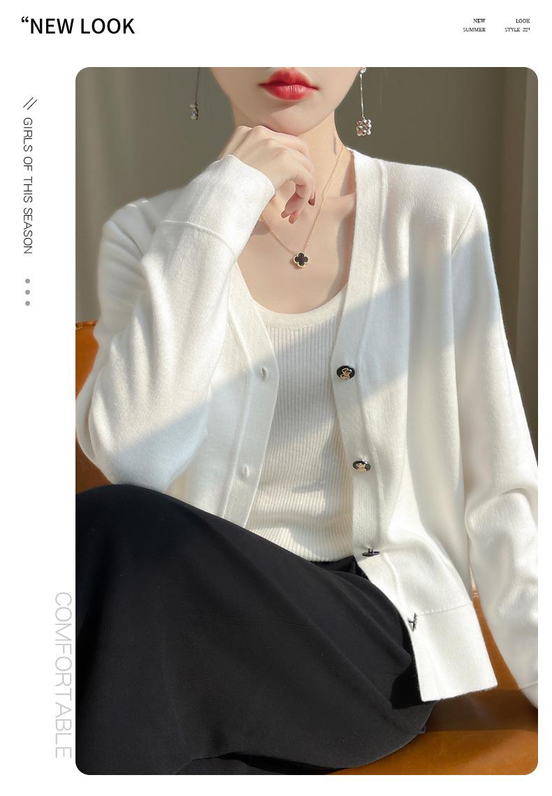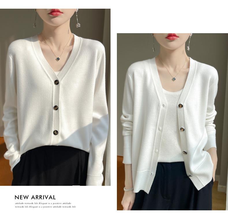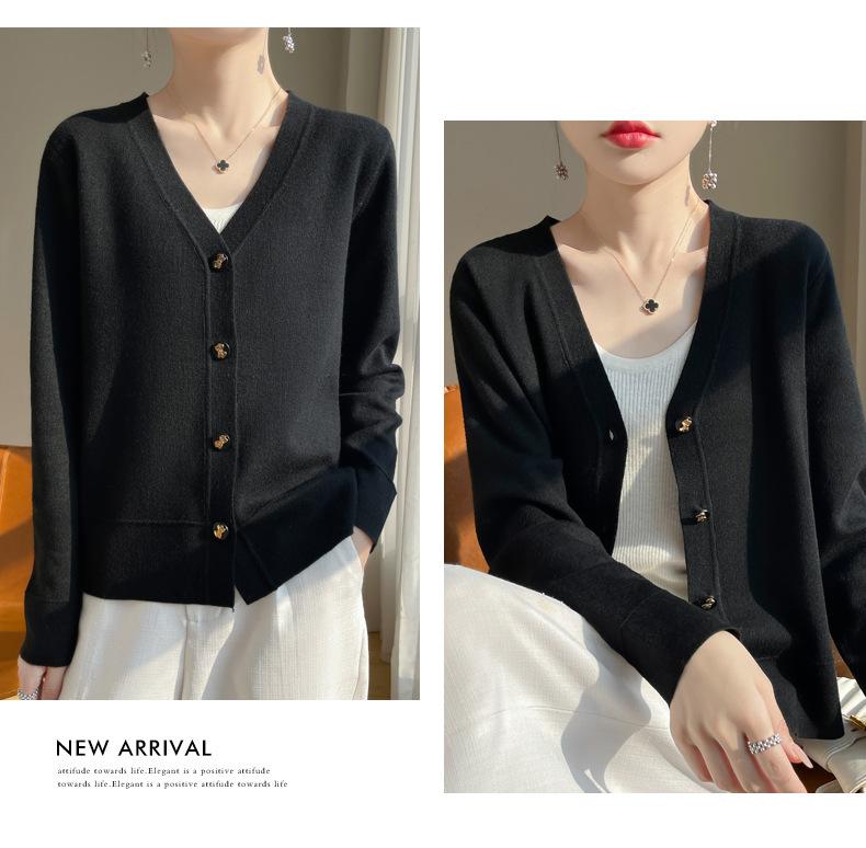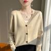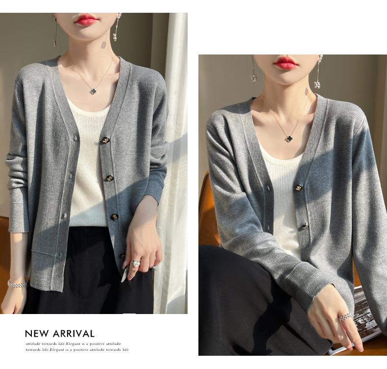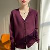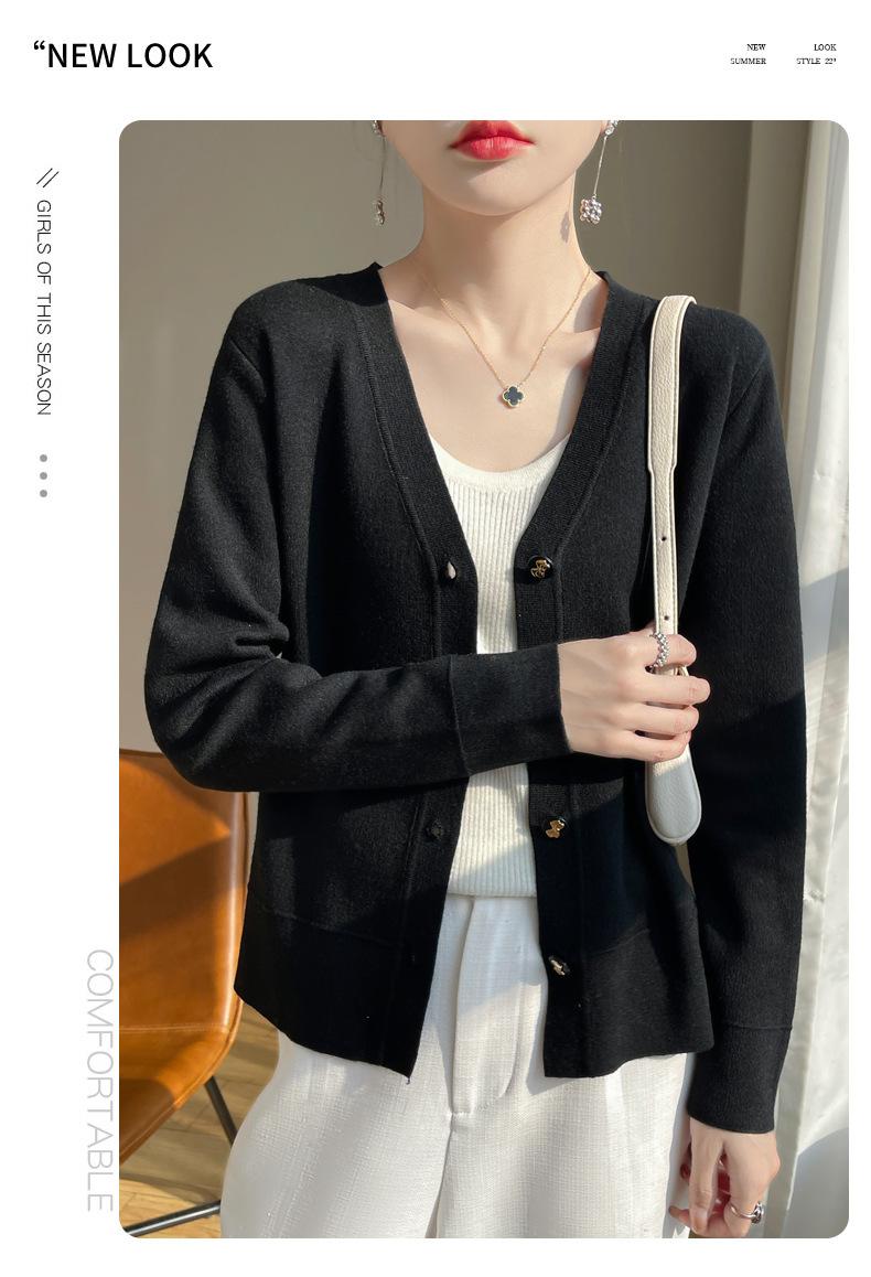 Cárdigan de Lana de Estilo Coreano Suave con Cuello en V para Primavera 2024, Suéter para Mujer Casual Holgado de Color Sólido, Chaqueta Tejida de Lana