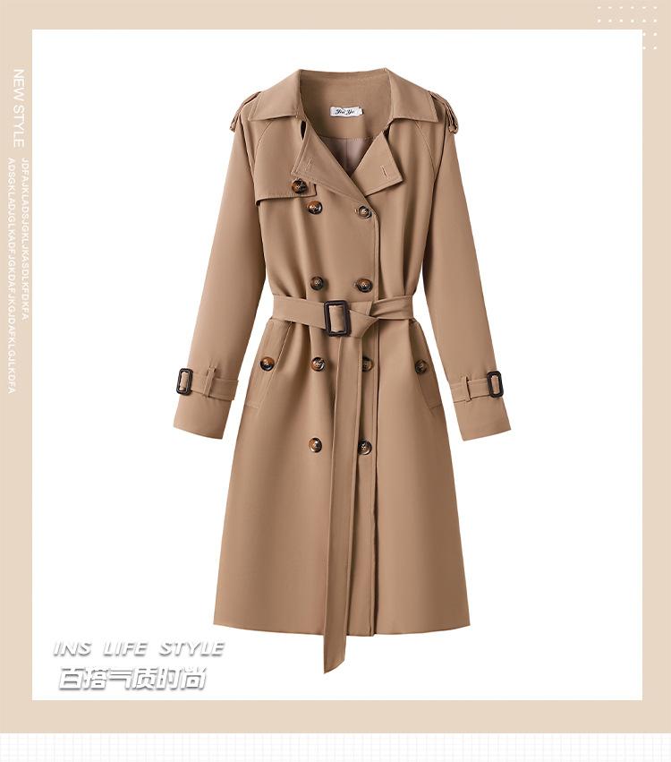 Abrigo Elegante de Estilo Coreano para Viajero Color Caqui para Mujer Otoño 2023 Nueva Moda Estilo Británico Combinable Largo Medio
