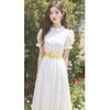 Vestido de Encaje de Manga Corta Elegante Exquisito Clase Social Retro Francés para Hora del Té de Verano Falda Larga para Mujer 2024 Nuevo Estilo