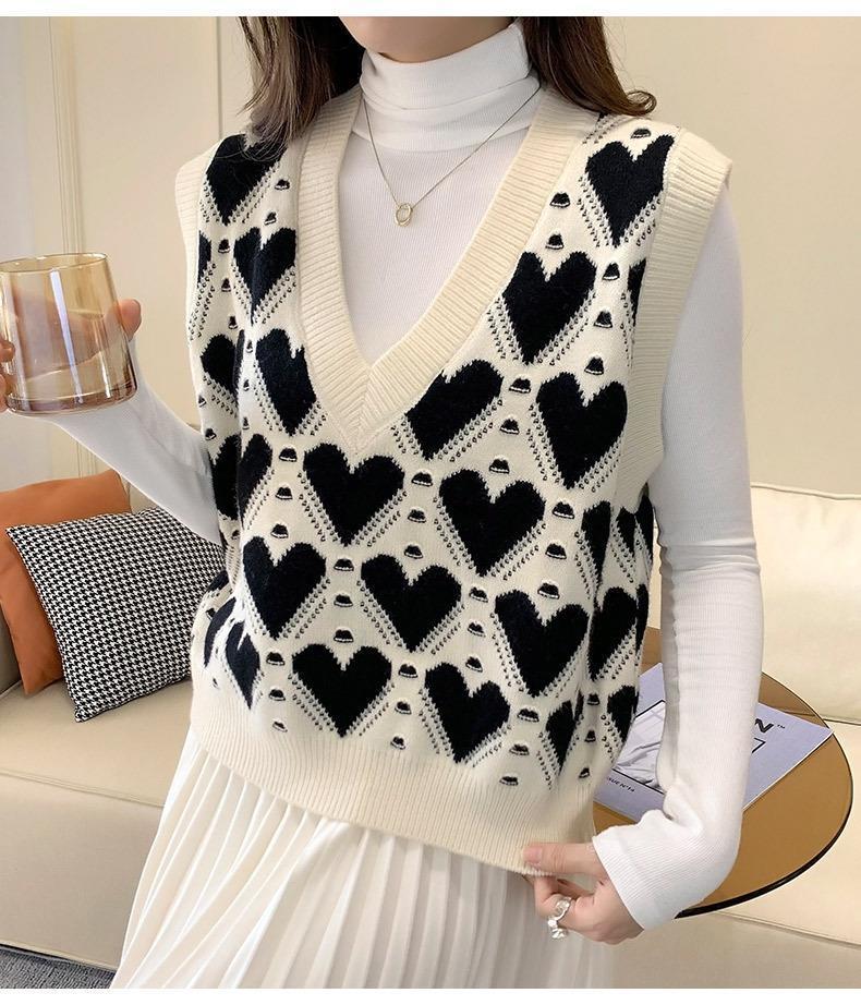 Amor Chaleco de Punto para Mujer Primavera 2024 Nuevo Sentido del Diseño Estilo Académico Estilo Extranjero Chaleco Suéter Trendy