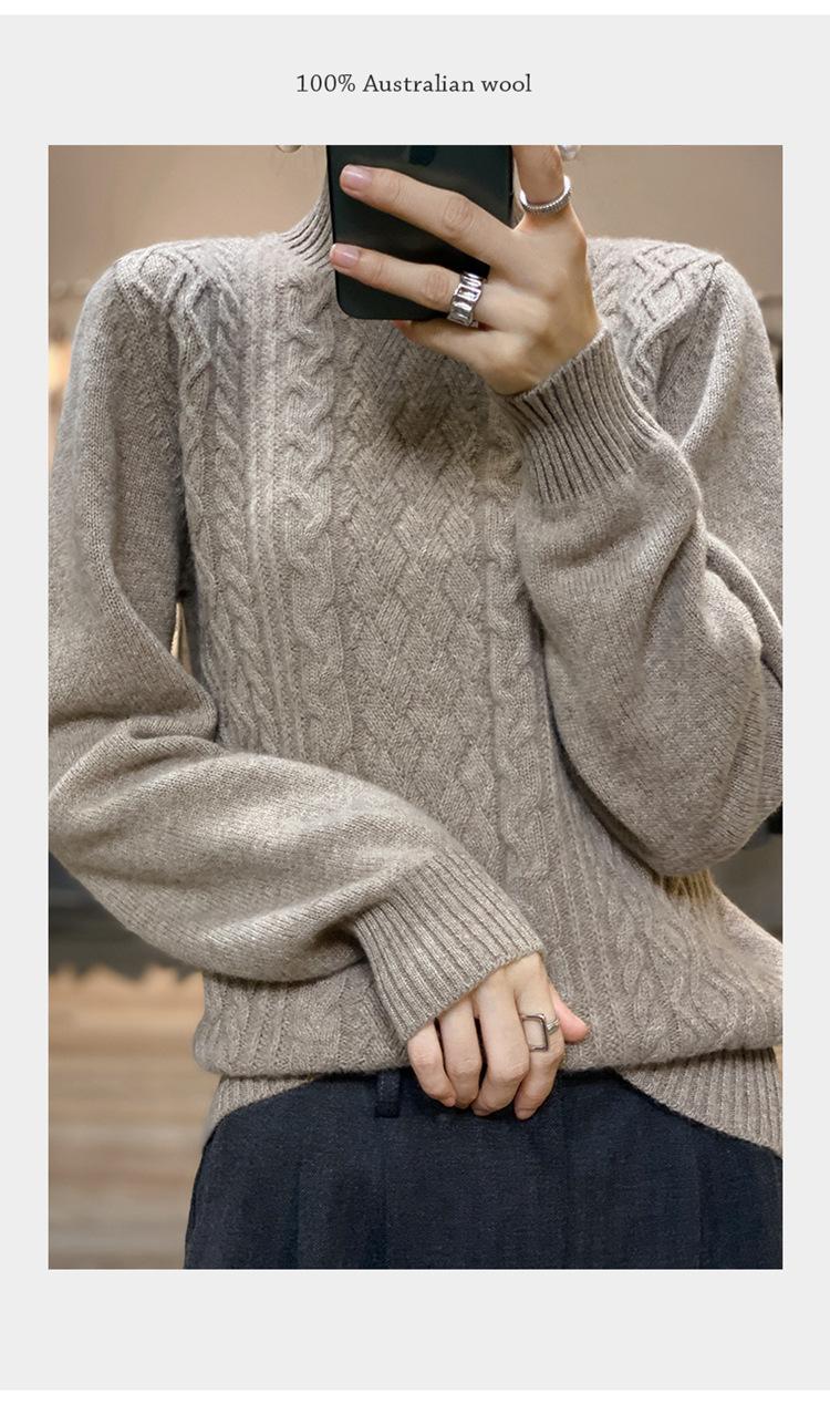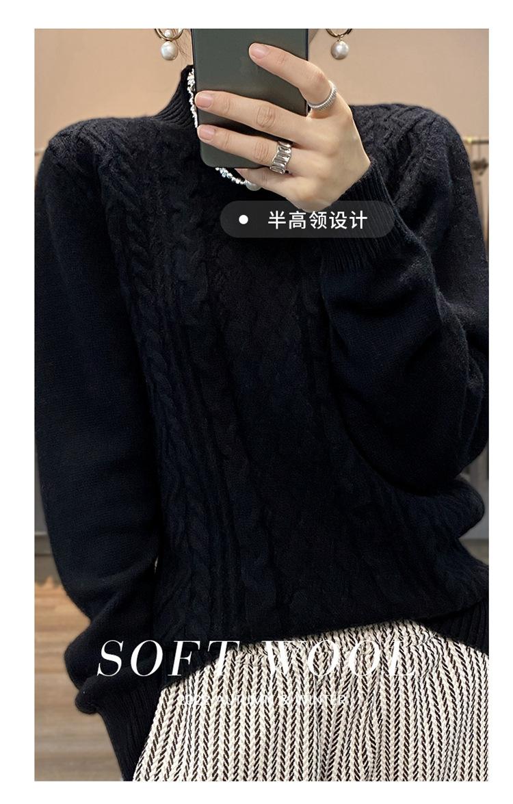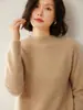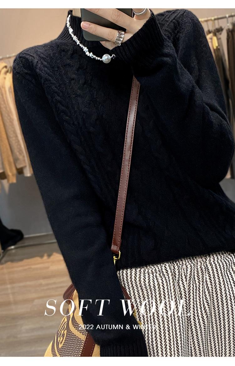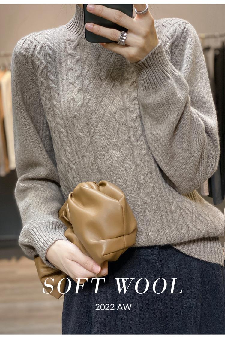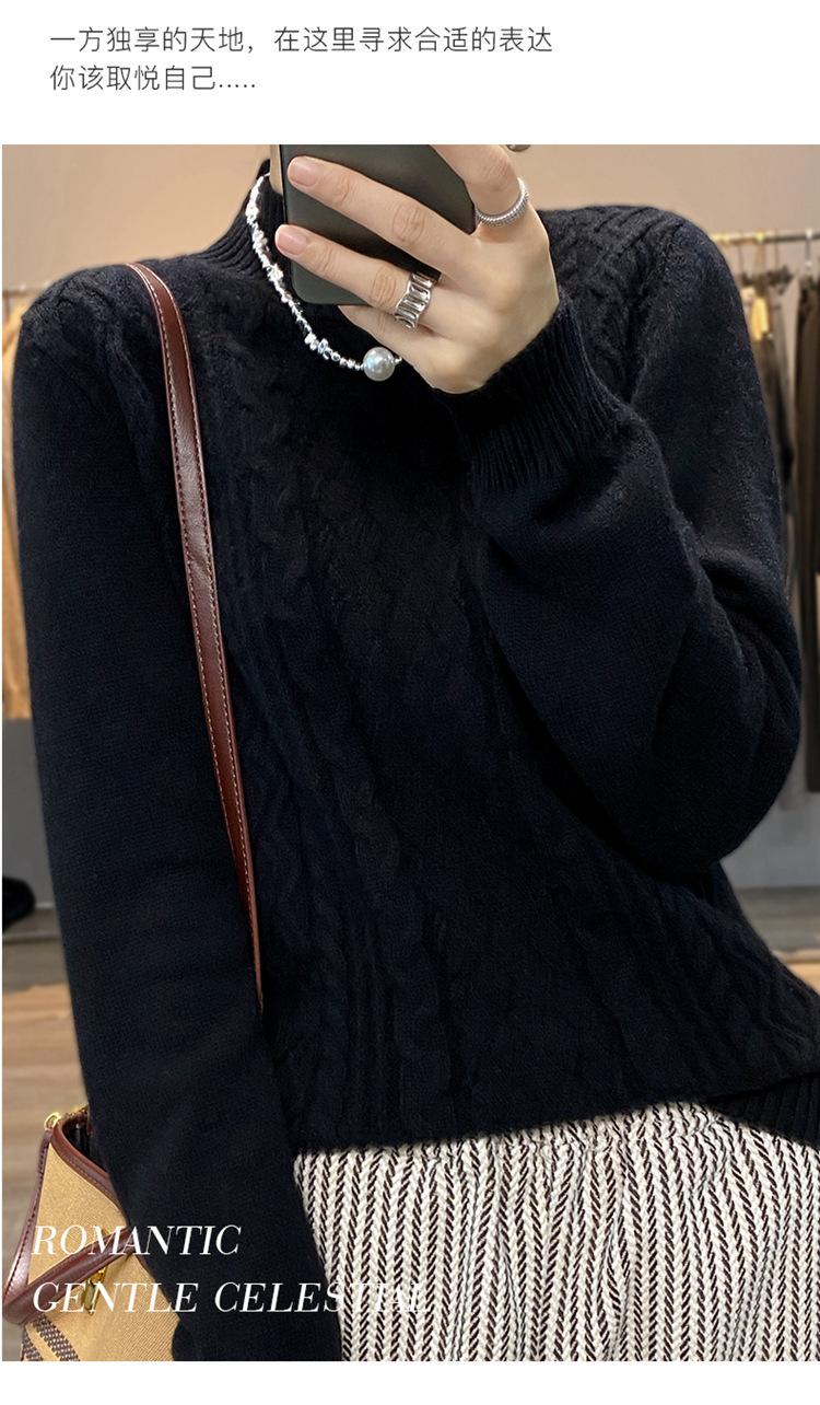 Jersey de Punto de Lana para Mujer de Cuello Alto Medio, Color Sólido Simple, Tejido Mate, Holgado Casual para Viajar, Otoño