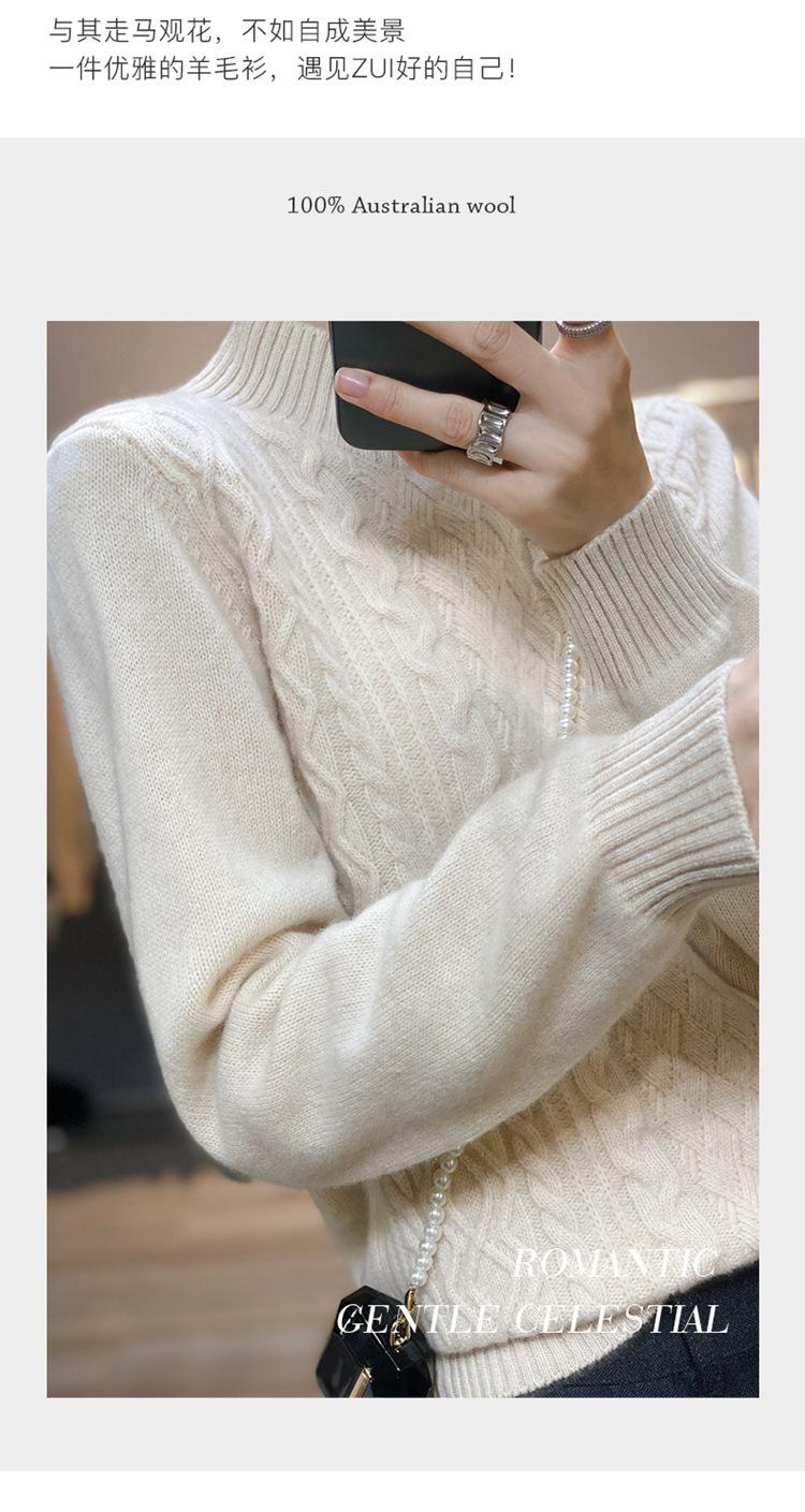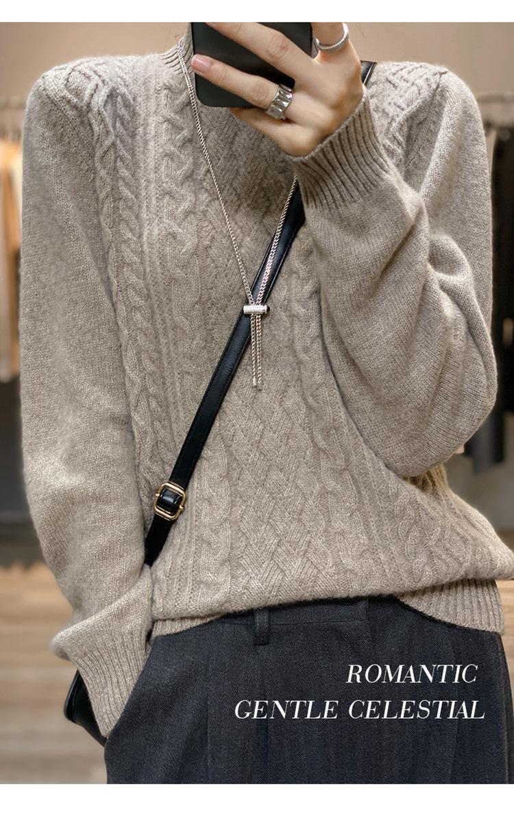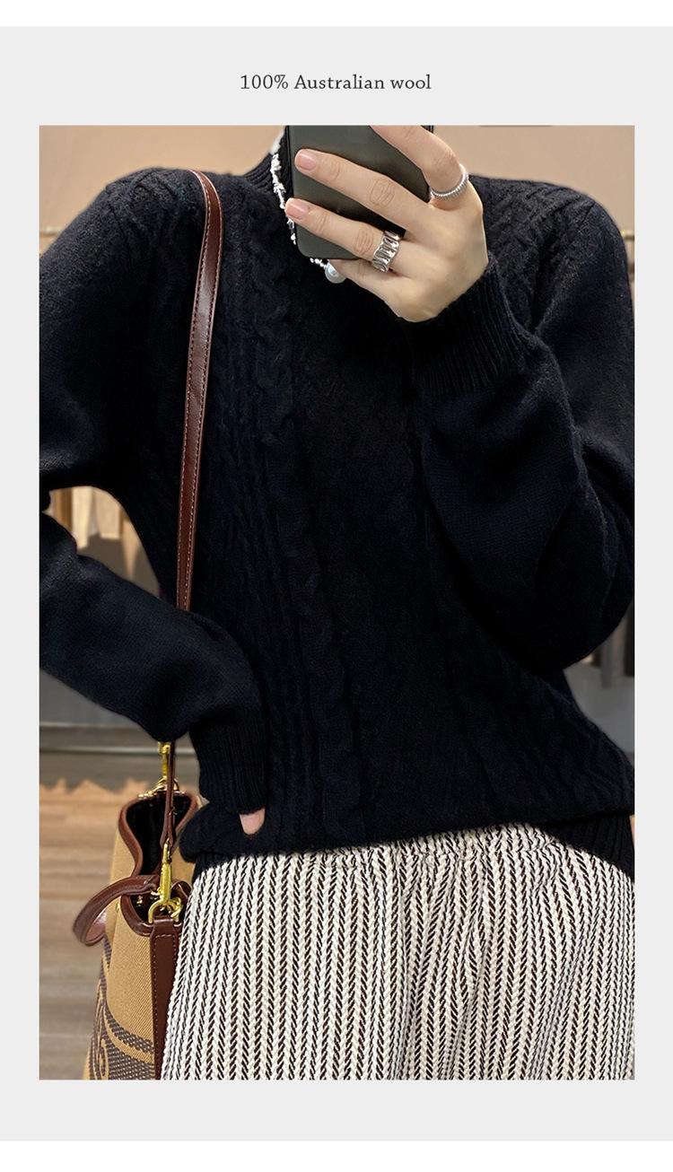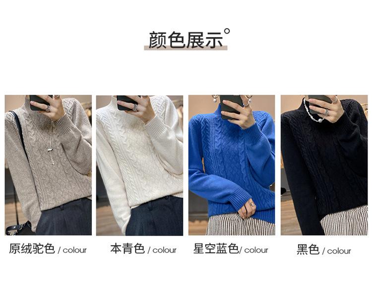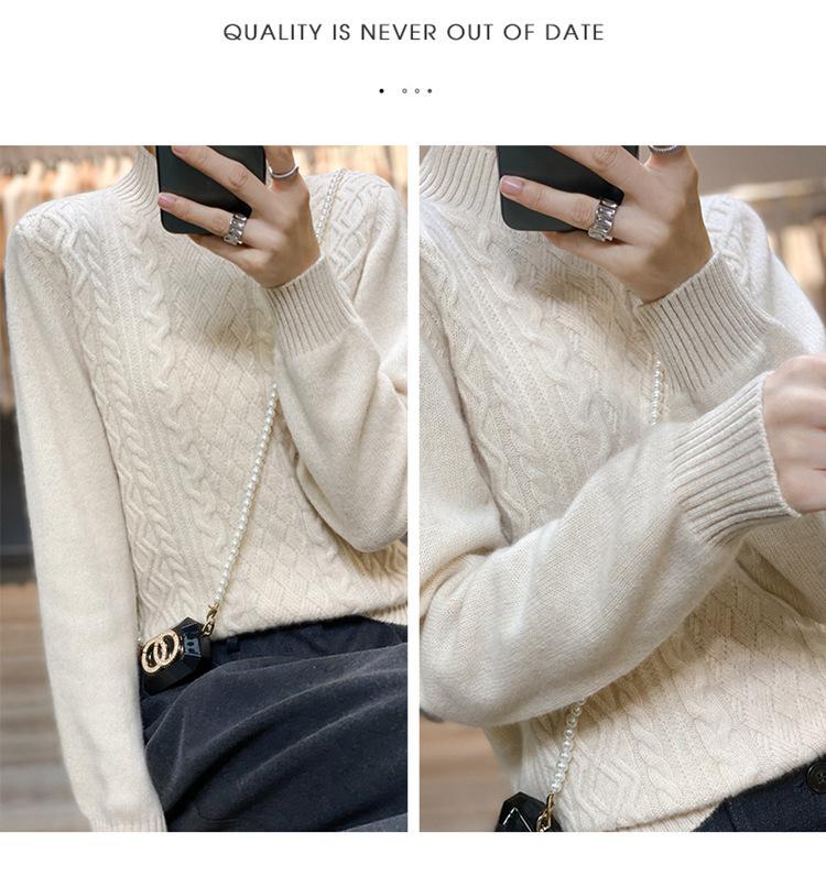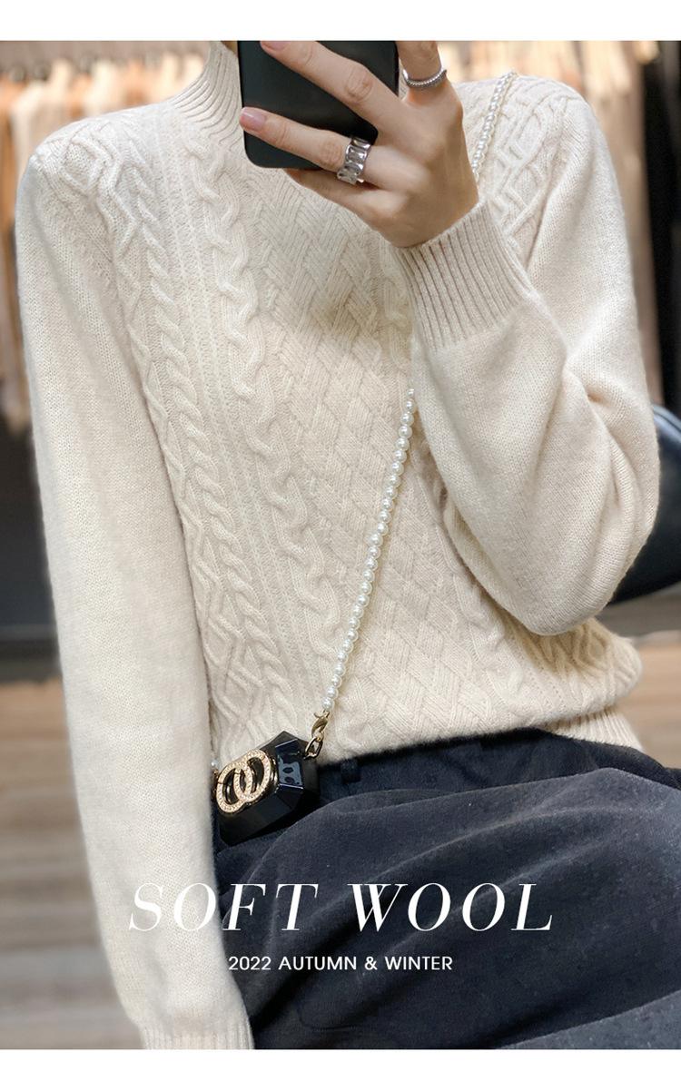 Jersey de Punto de Lana para Mujer de Cuello Alto Medio, Color Sólido Simple, Tejido Mate, Holgado Casual para Viajar, Otoño