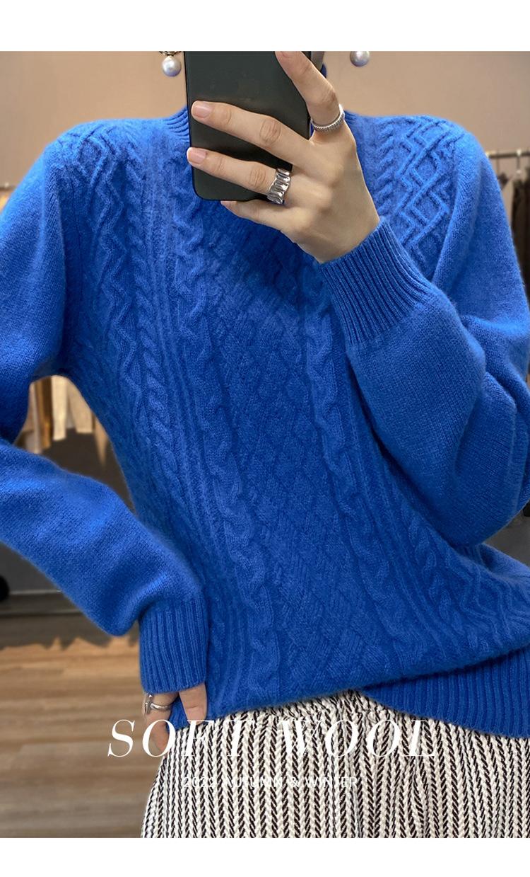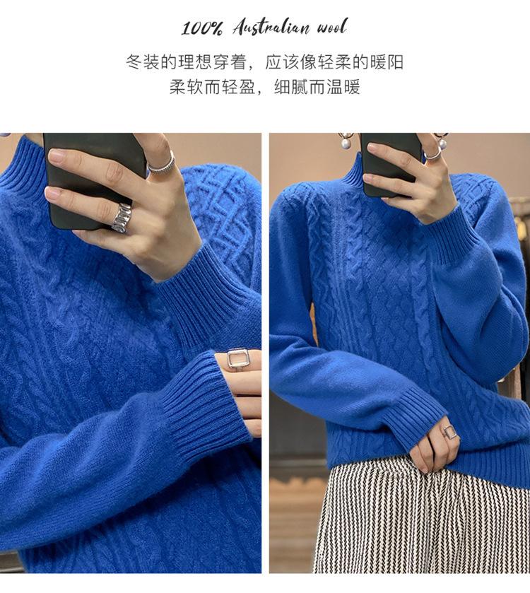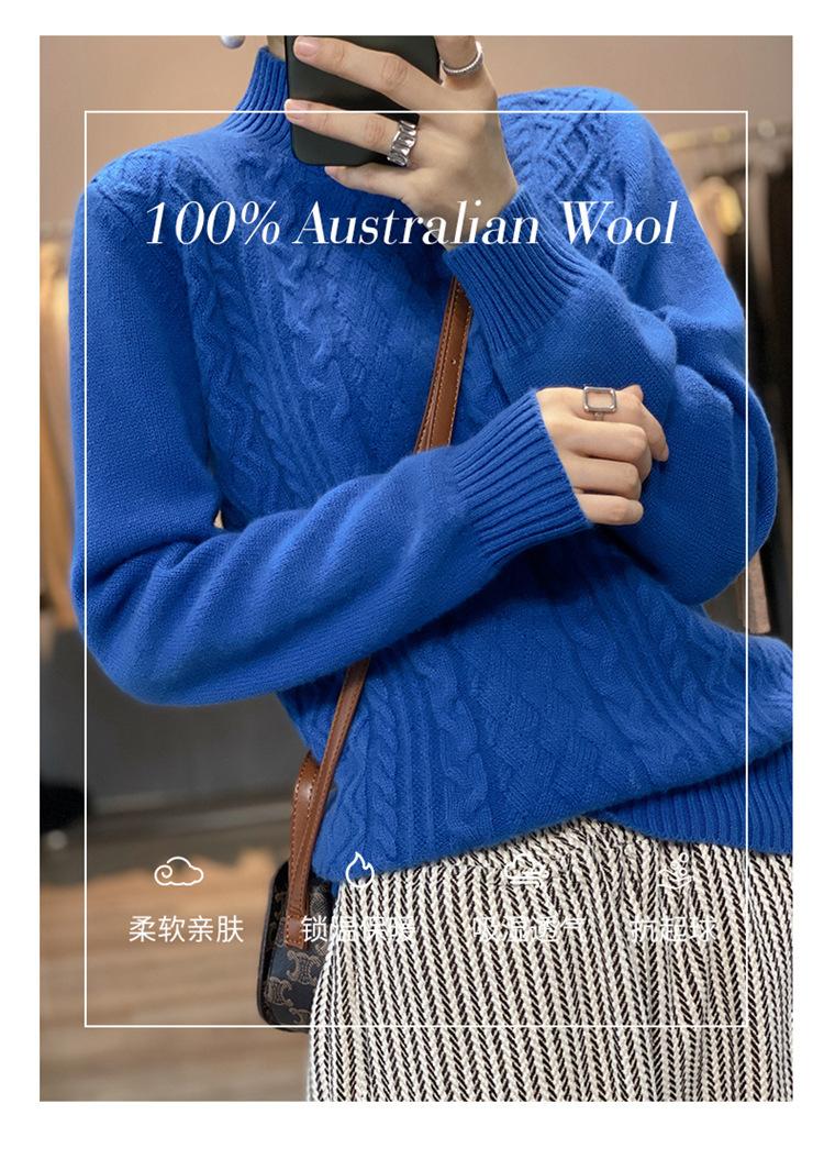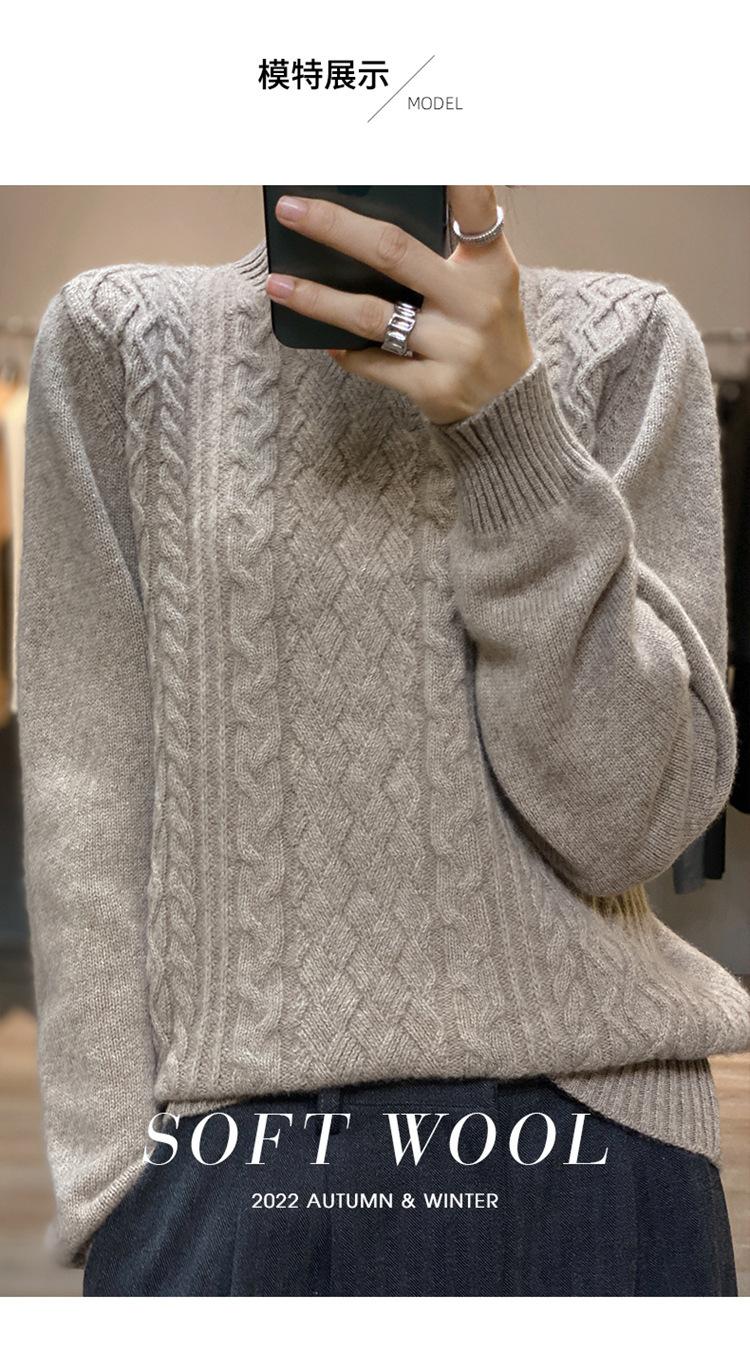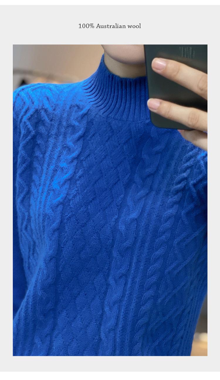Jersey de Punto de Lana para Mujer de Cuello Alto Medio, Color Sólido Simple, Tejido Mate, Holgado Casual para Viajar, Otoño