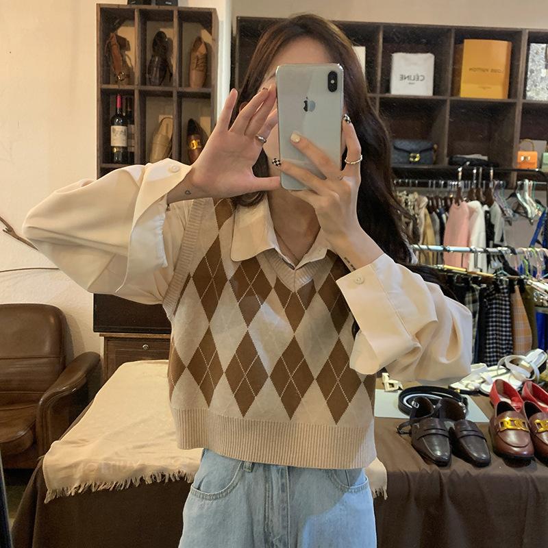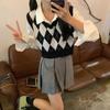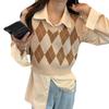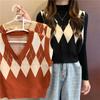 Chaleco de punto apilado retro con cuello en V y rombos para mujer, novedad de primavera y otoño de 2023.