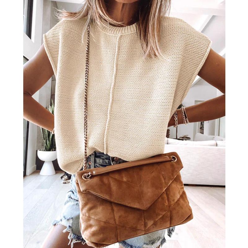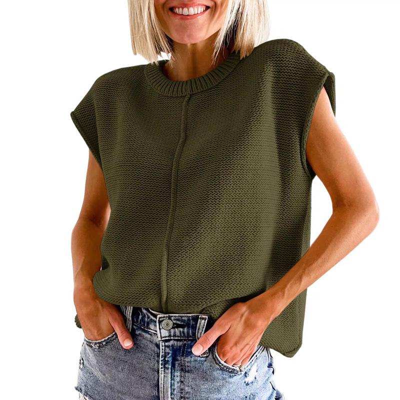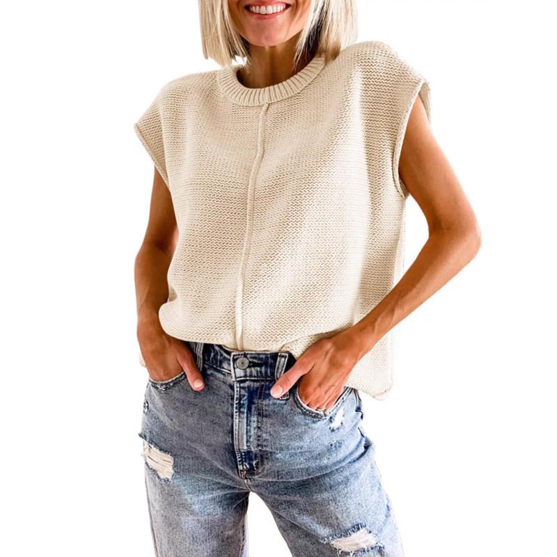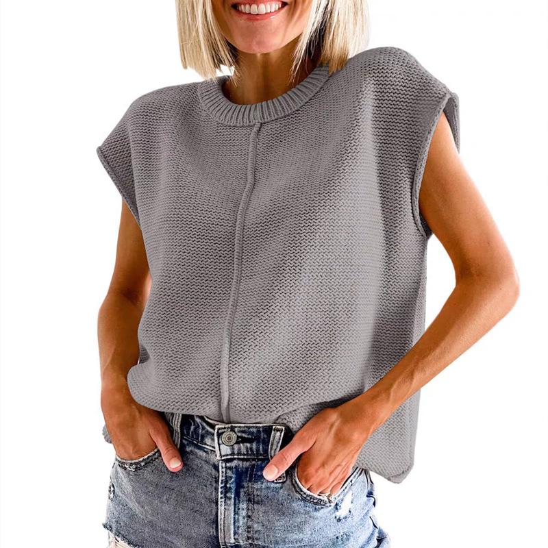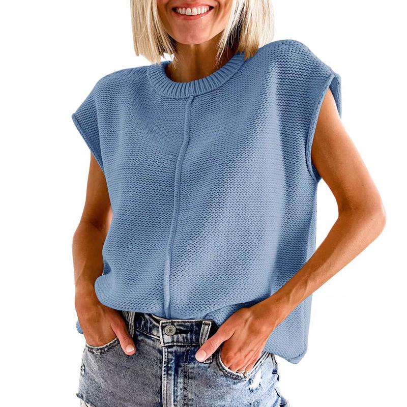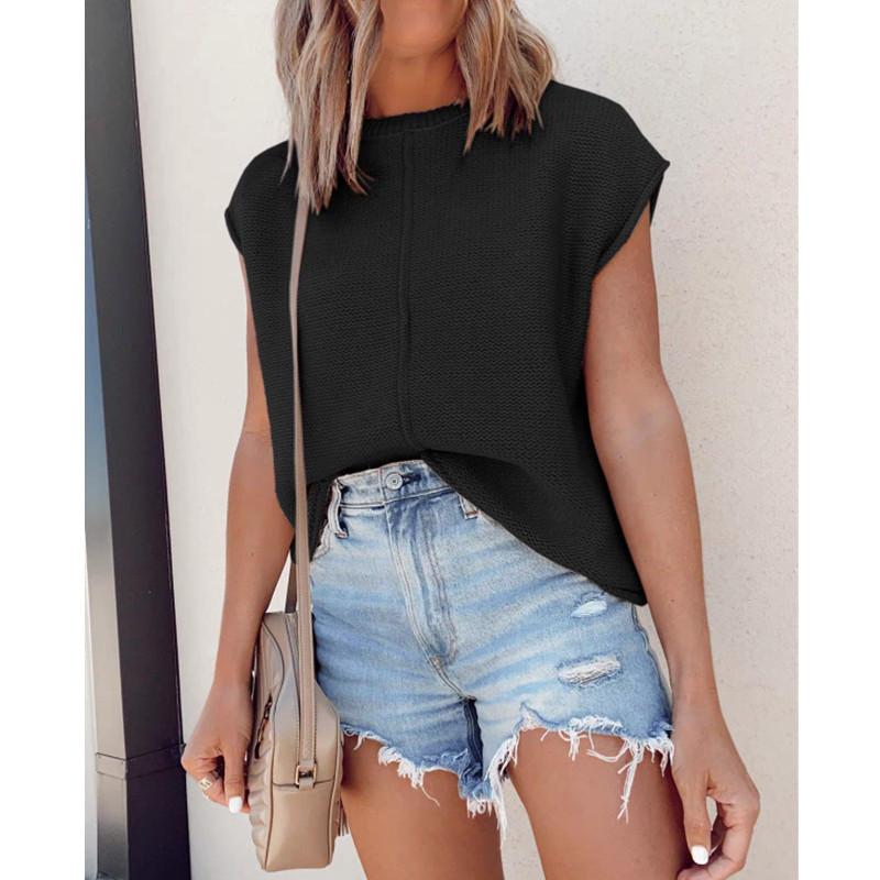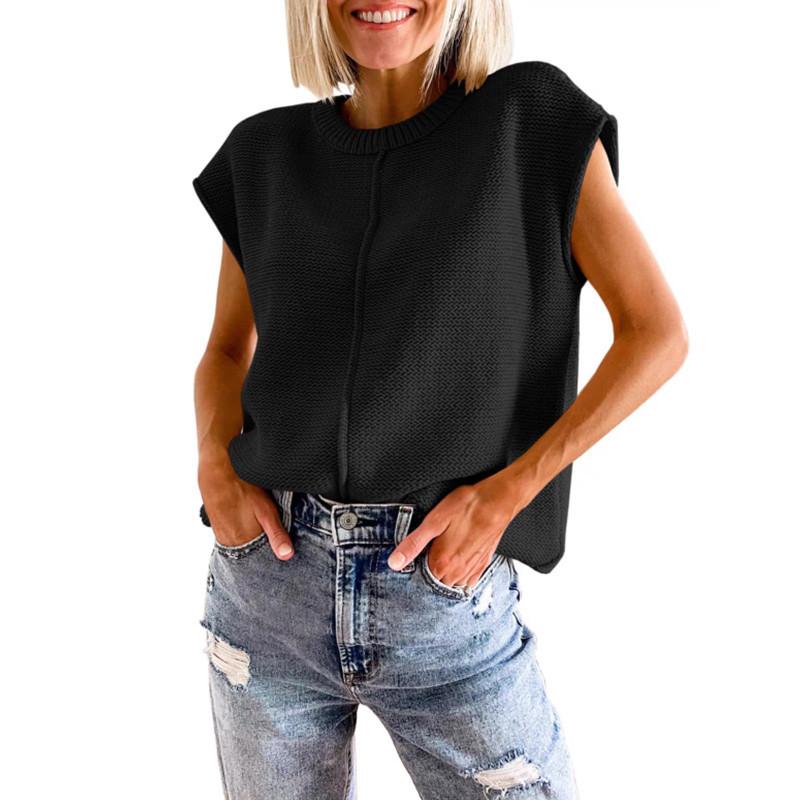 Camiseta informal de punto con cuello redondo y aguja gruesa para mujer, Amazon, verano 2024, ropa transfronteriza europea y americana