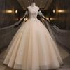 2025 Nuevo Vestido Largo de Color Gasa para Mujer Estudio Fotográfico Nupcial Banquete Anfitrión Vestido de Noche Solo Examen de Arte Traje de Actuación Falda Abullonada