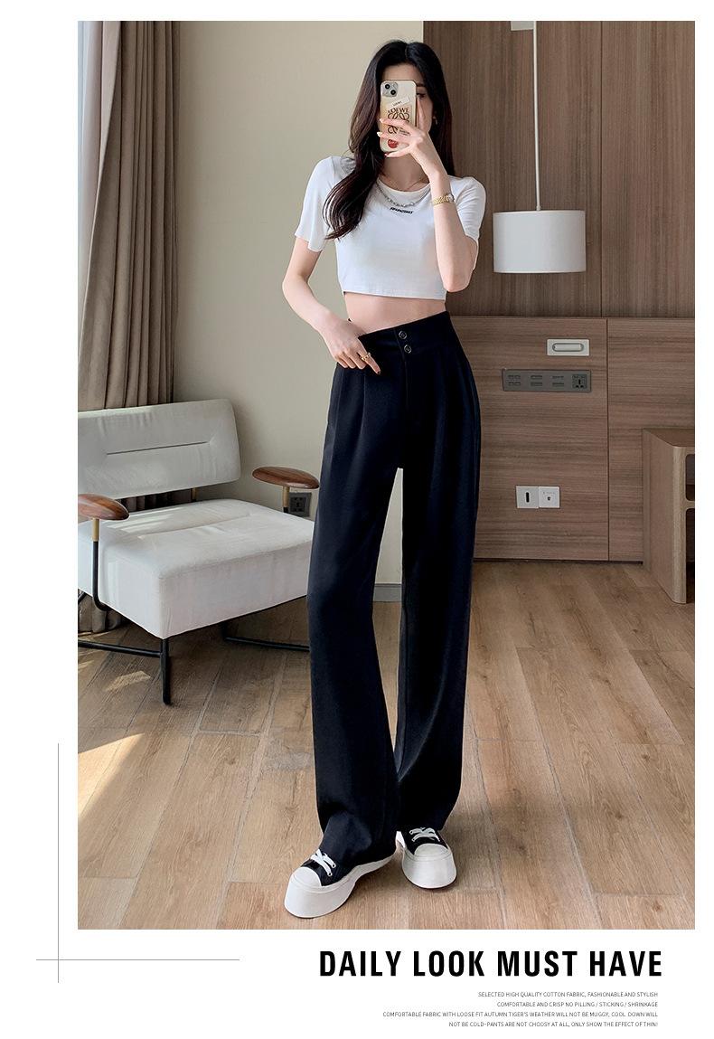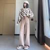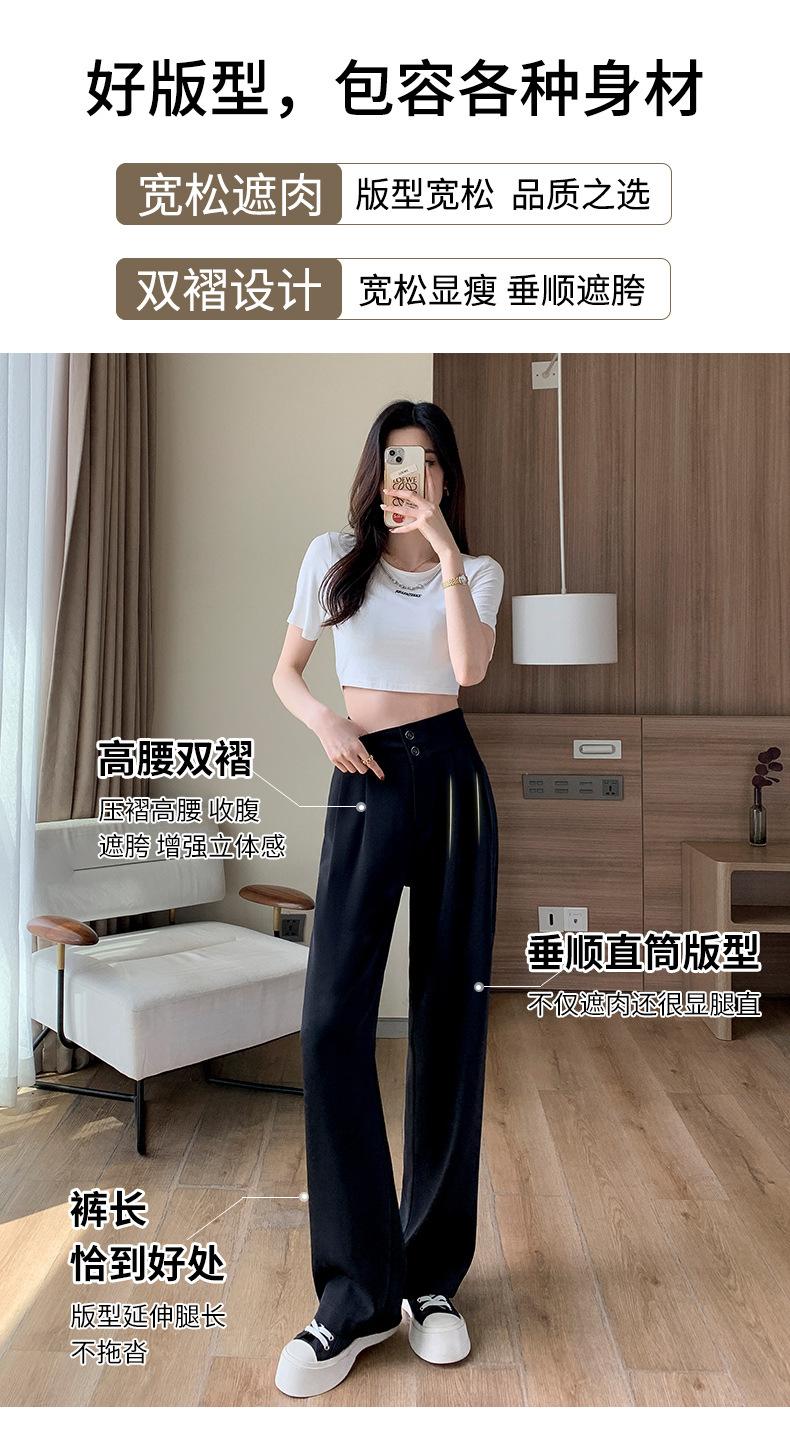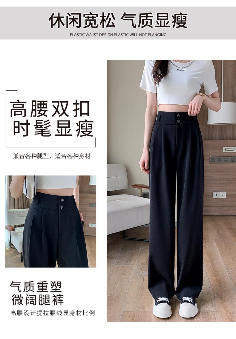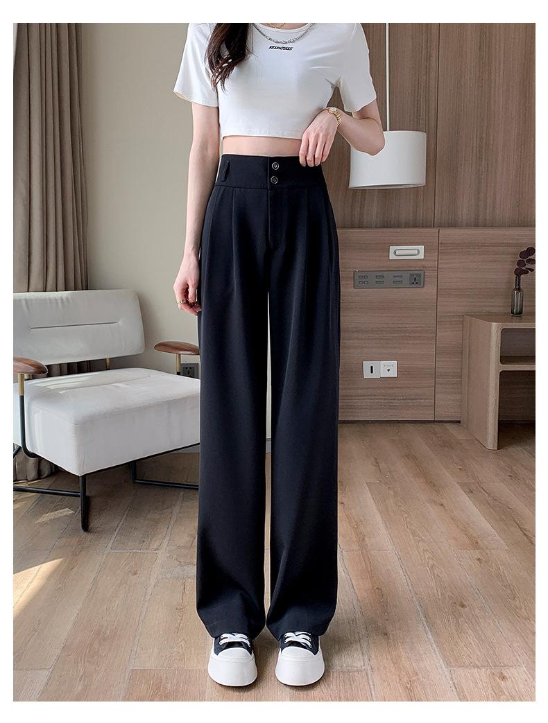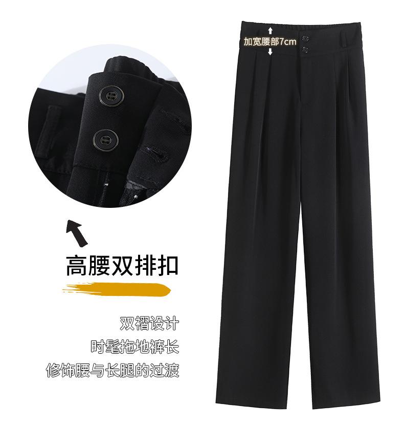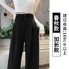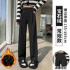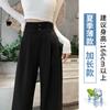 Traje Pantalones de Pierna Ancha para Mujer Otoño e Invierno 2025 Nuevo Terciopelo Cintura Alta Slim Drapeado Pantalones de Traje Negro Pantalones Rectos