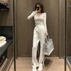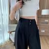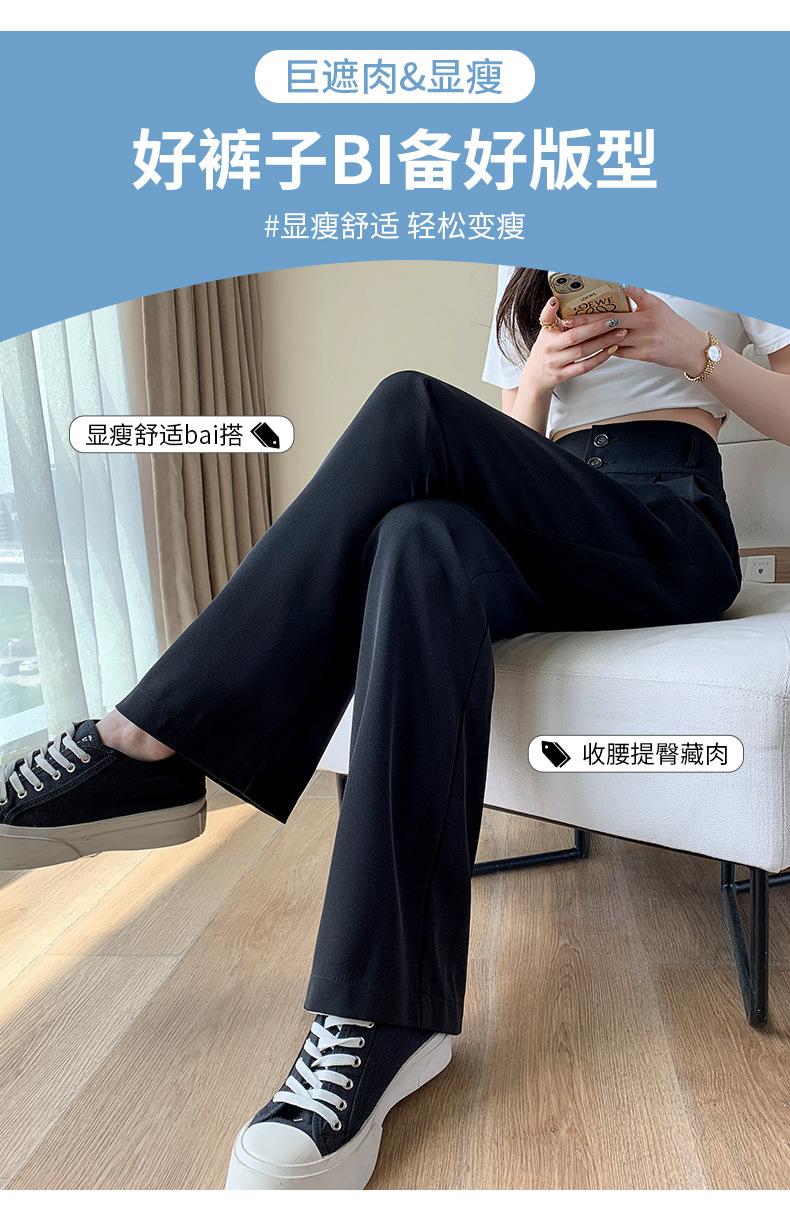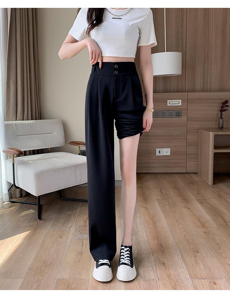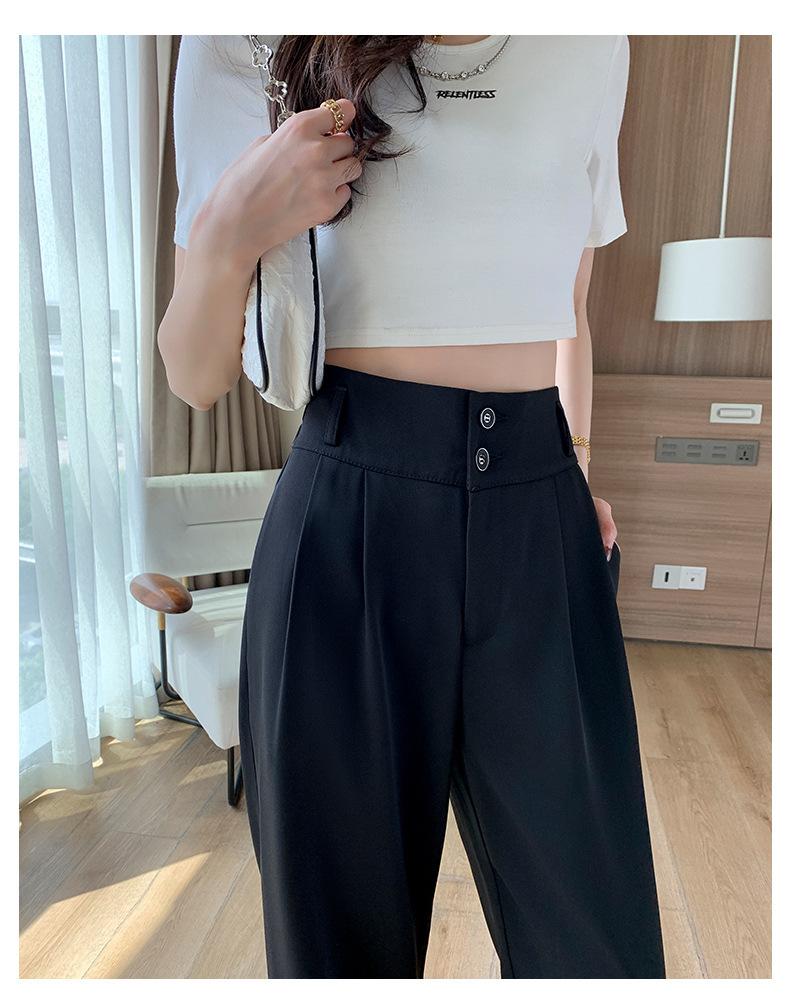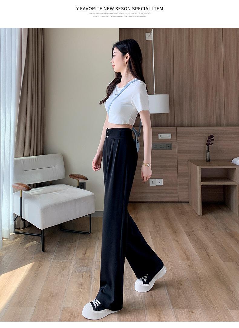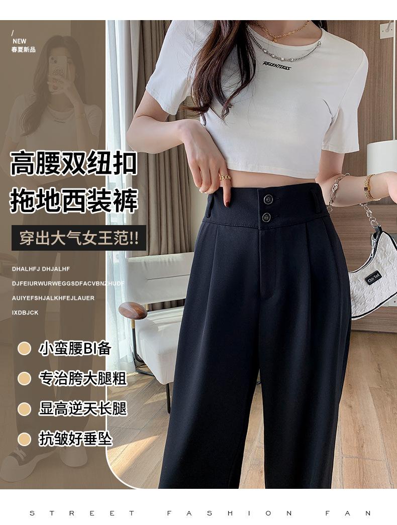 Traje Pantalones de Pierna Ancha para Mujer Otoño e Invierno 2025 Nuevo Terciopelo Cintura Alta Slim Drapeado Pantalones de Traje Negro Pantalones Rectos