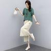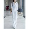 Traje blanco de una sola pieza de algodón y lino, pantalón ancho de pierna, para mujer, estilo occidental, retro, informal, conjunto de dos piezas.