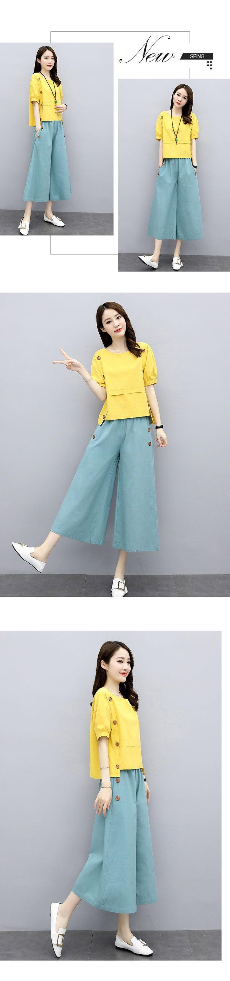 Blue Top Rice White Pants, Green Top Rice White Pants, Blue Pants Yellow Top, One-piece blue top, One-piece gr...