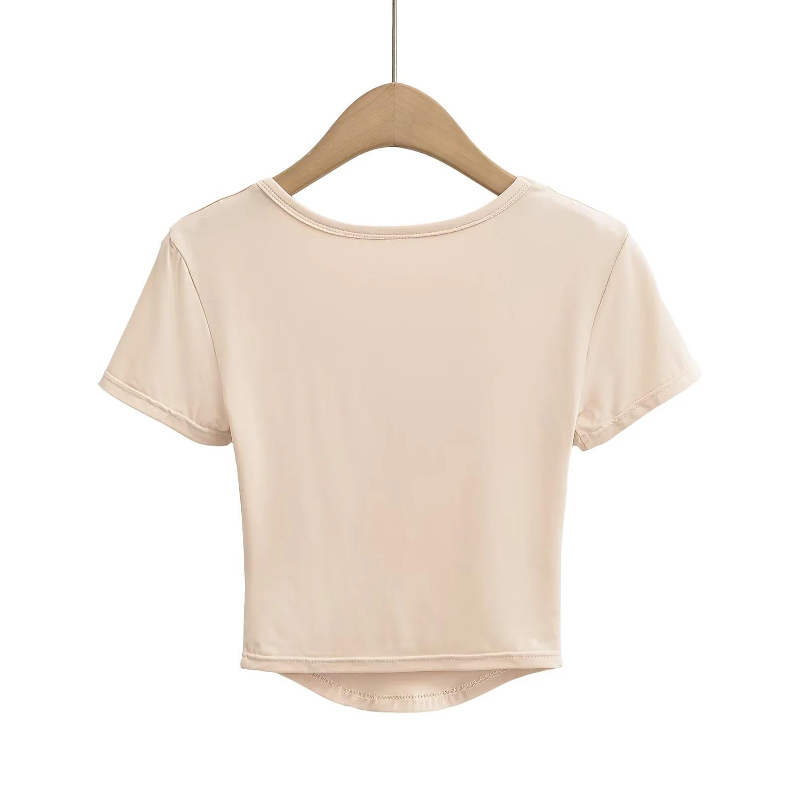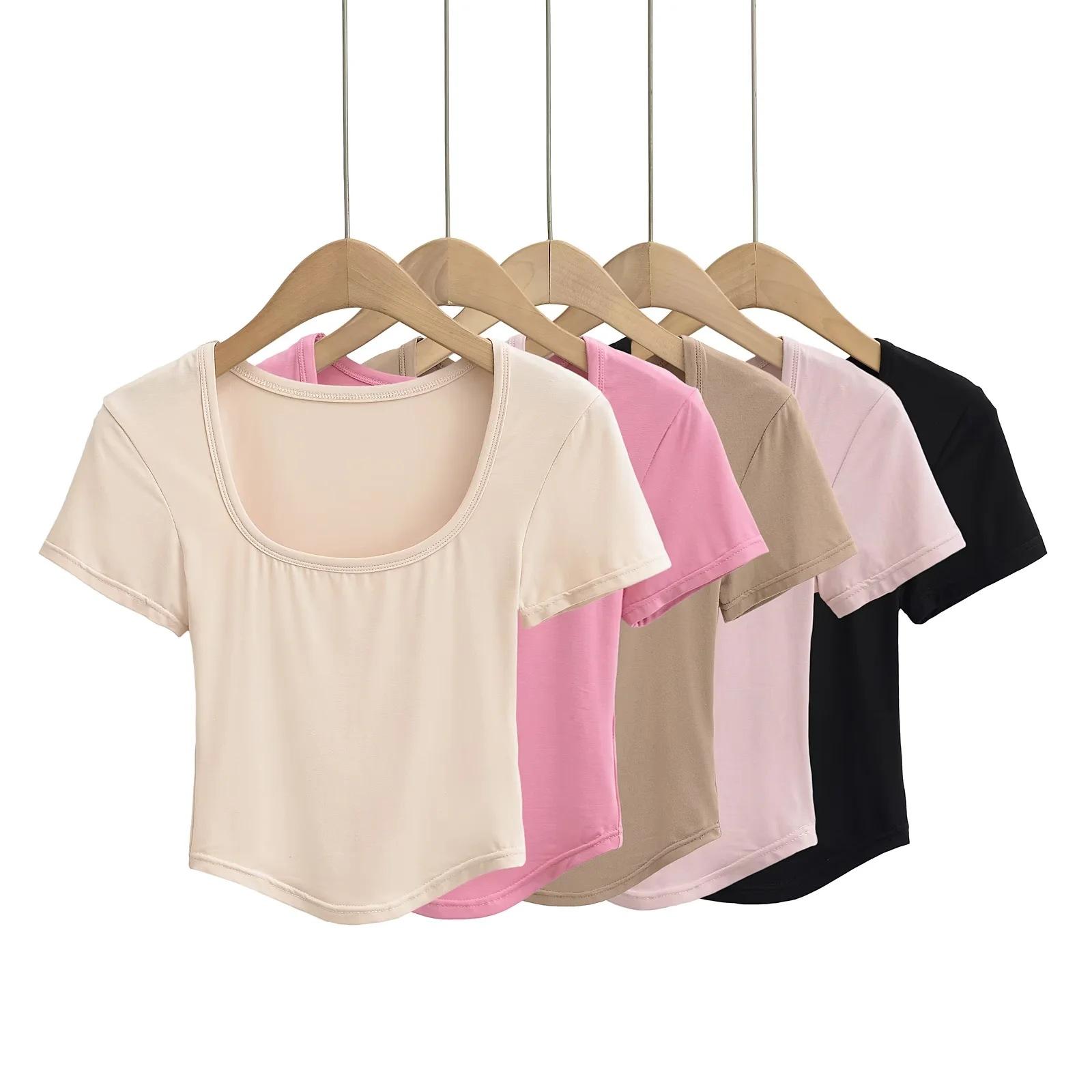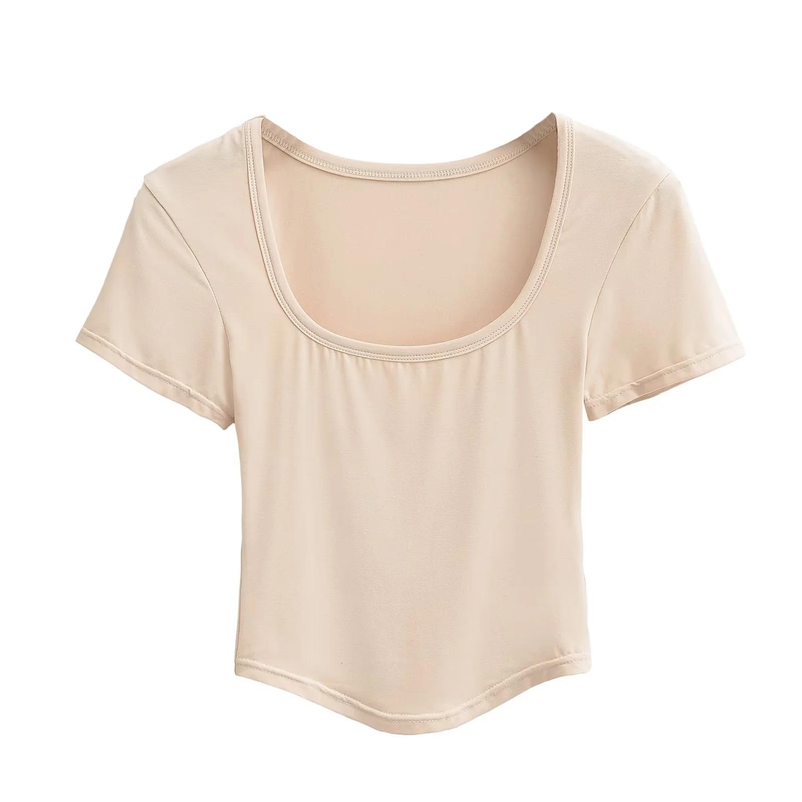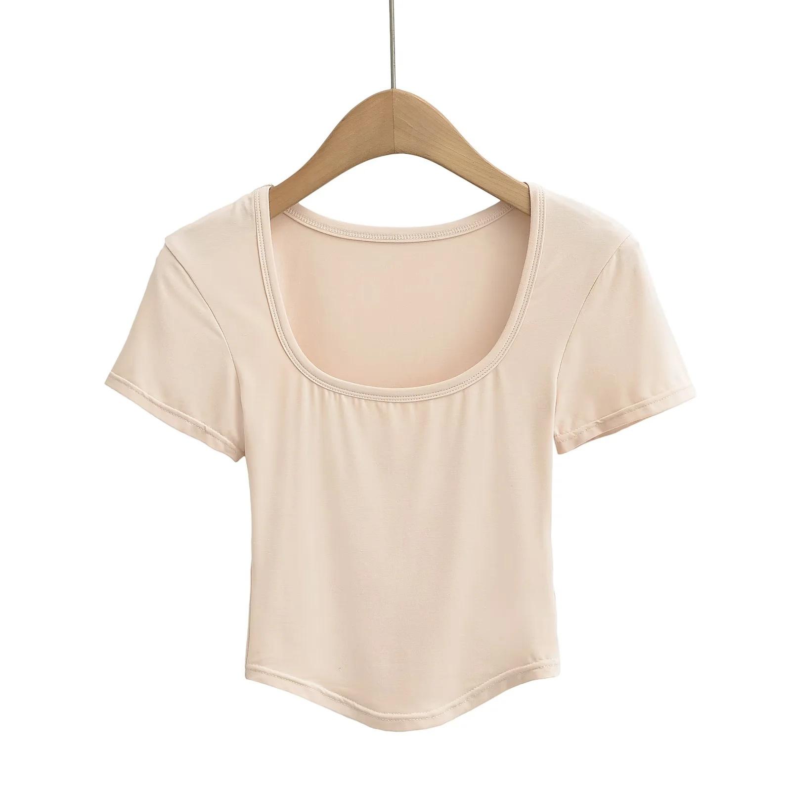 Camiseta de Manga Corta con Cuello U Grande de Algodón Hielo Porcelana con Sensación de Máscara para Piel de Leche para Mujer Verano Adelgazante Base Estilo Deseo Puro Top Interior