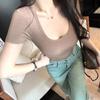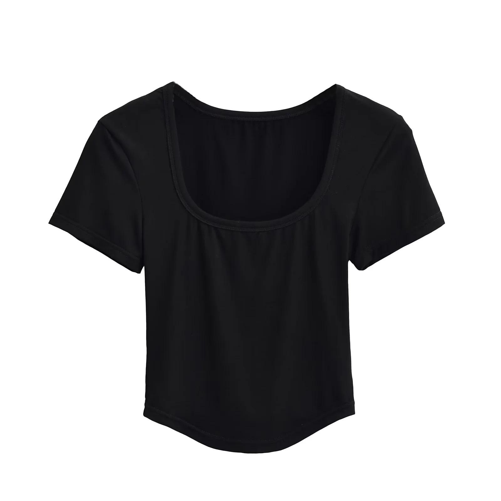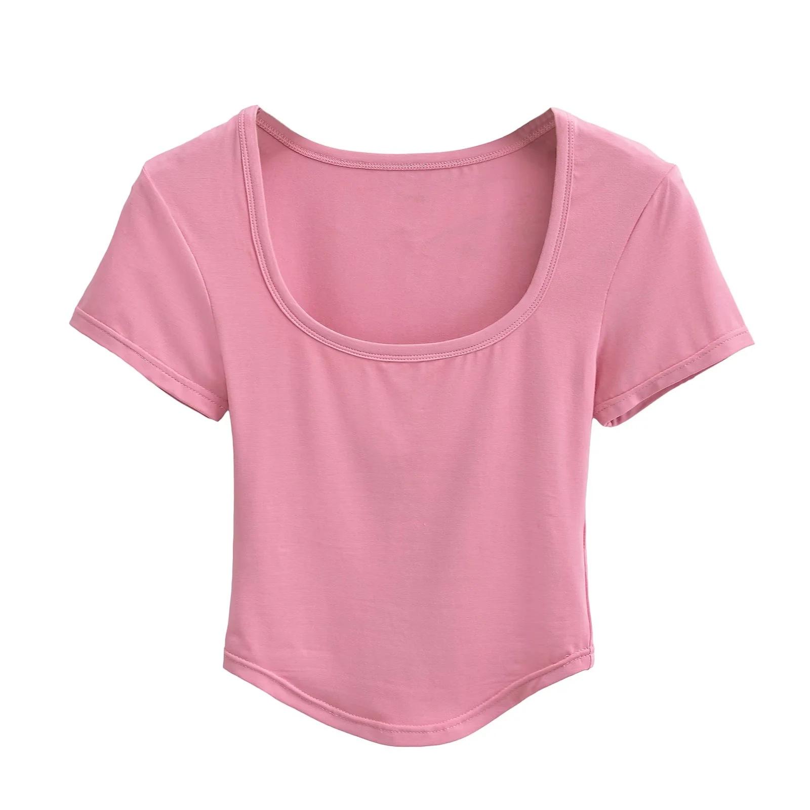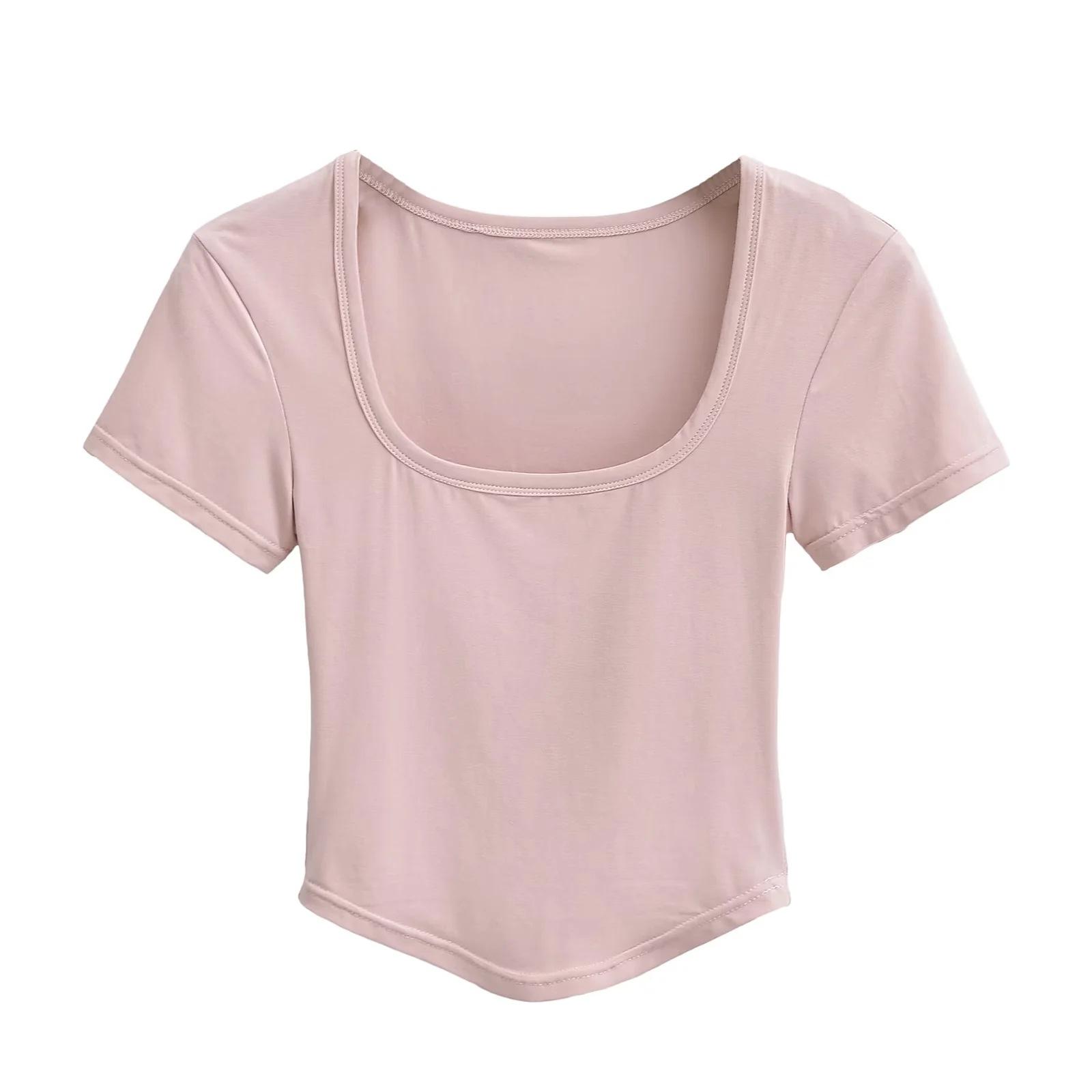 Camiseta de Manga Corta con Cuello U Grande de Algodón Hielo Porcelana con Sensación de Máscara para Piel de Leche para Mujer Verano Adelgazante Base Estilo Deseo Puro Top Interior