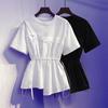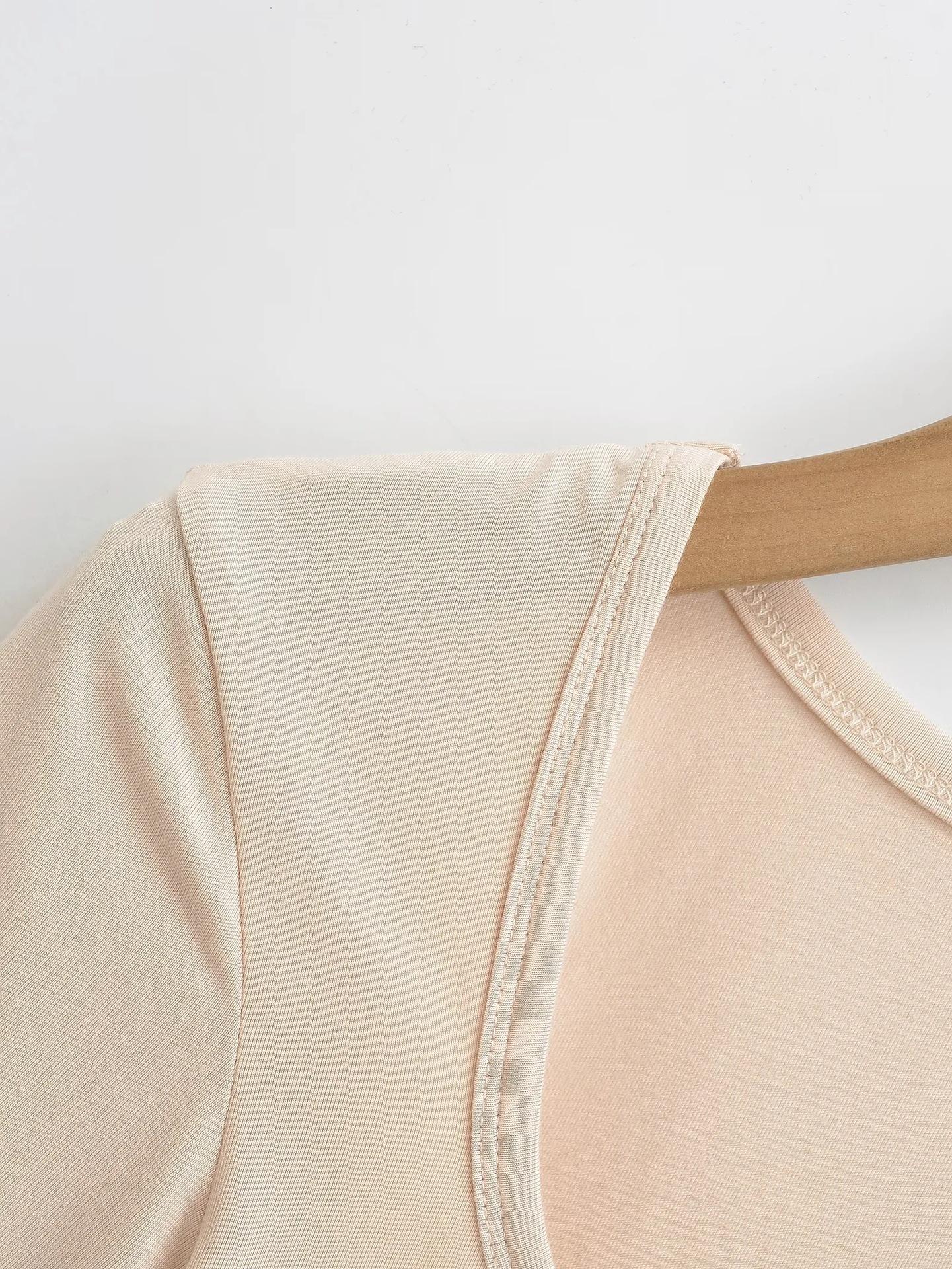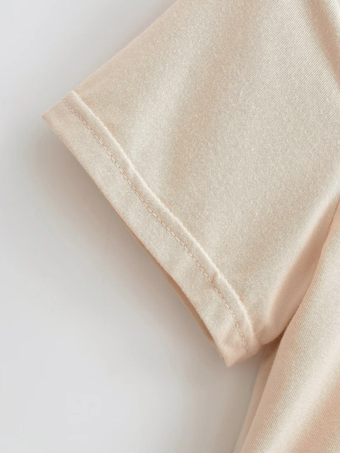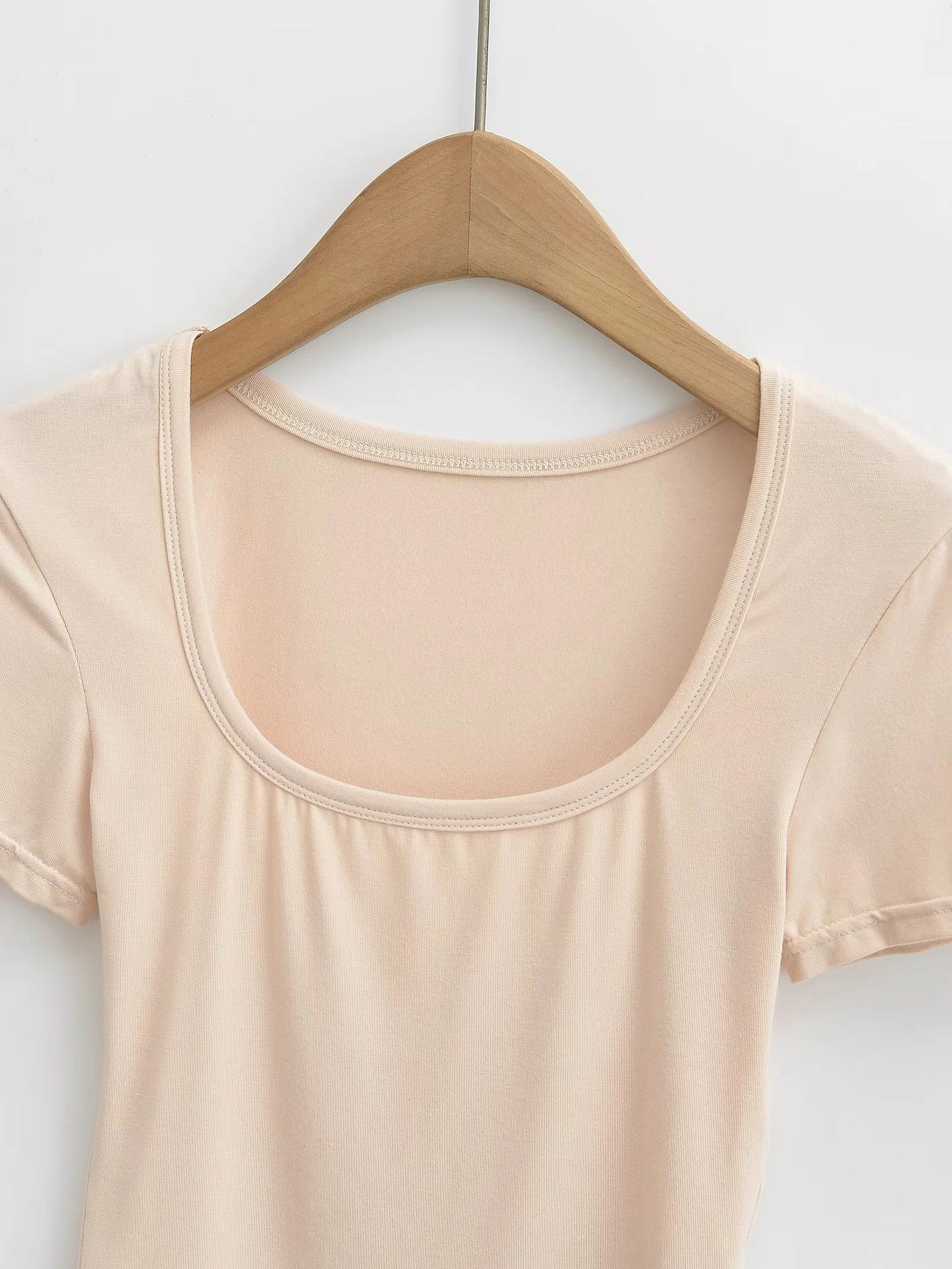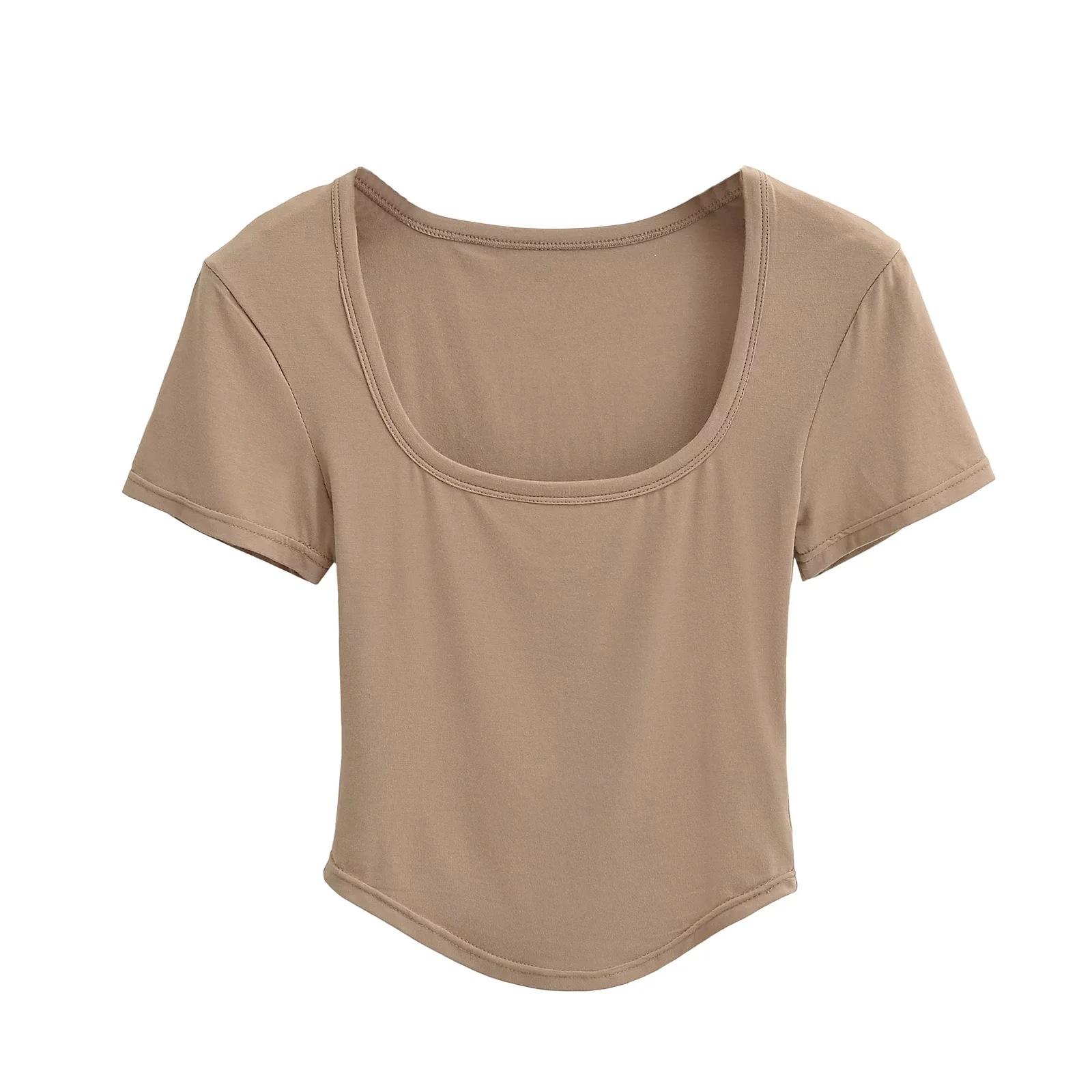 Camiseta de Manga Corta con Cuello U Grande de Algodón Hielo Porcelana con Sensación de Máscara para Piel de Leche para Mujer Verano Adelgazante Base Estilo Deseo Puro Top Interior